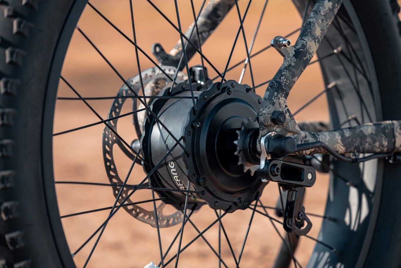The Megatron is a bike to feast your eyes on! This bike is featuring components never offered before. Dual batteries technology totaling 34AH of battery, Dual 1000w hub motors with ON DEMAND ALL WHEEL DRIVE. The ability to change from front wheel, rear wheel or all-wheel drive on the go with up to 80 miles of range. You better just get one ordered today before inventory runs out. The Megatron is setting the standard for the new Ultimate Hunting ebike from Rambo!