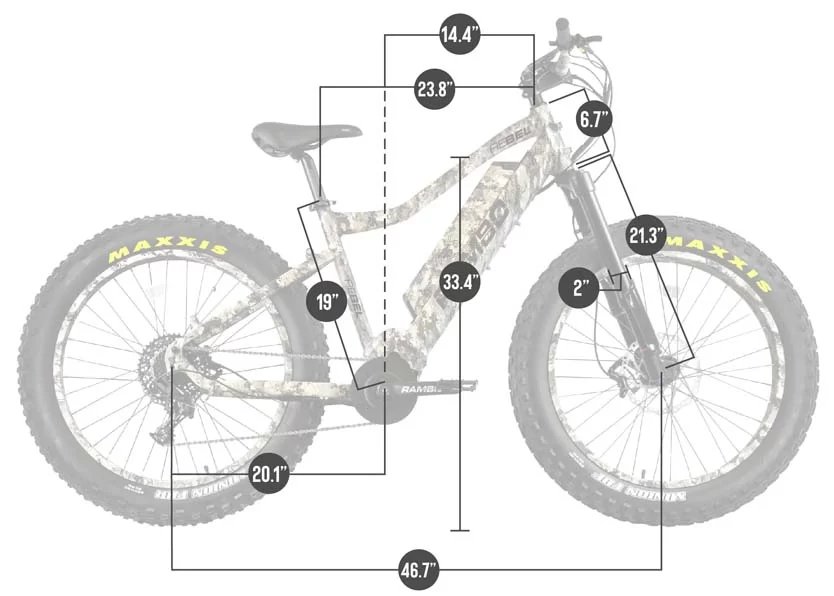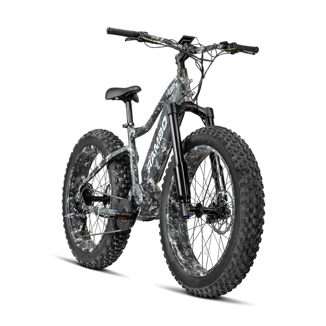 The Rambo Rebel 1000W Xtreme Performance electric fat tire bike is for the Extreme Rider that will only settle for the best. Big game hunting the backwoods in steep grade conditions, trail riding in rough terrain, or cruising down the beach the 1000 XPC has the job covered with high end GT Air suspension, a 1000W extreme performance motor, and all the high-end bike components to match. No costs were spared to build the most extreme off-road fat bike. The frame is TrueTimber Viper Western Camo for both concealment and looks. The Rambo Rebel 1000W True Timber Viper Western Camo Xtreme Performance features a custom-built frame to encase and heighten the motor for increased ground clearance and protection. The Rambo Rebel 1000W TrueTimber Viper Western Camo Xtreme Performance electric fat tire bike won’t disappoint!
