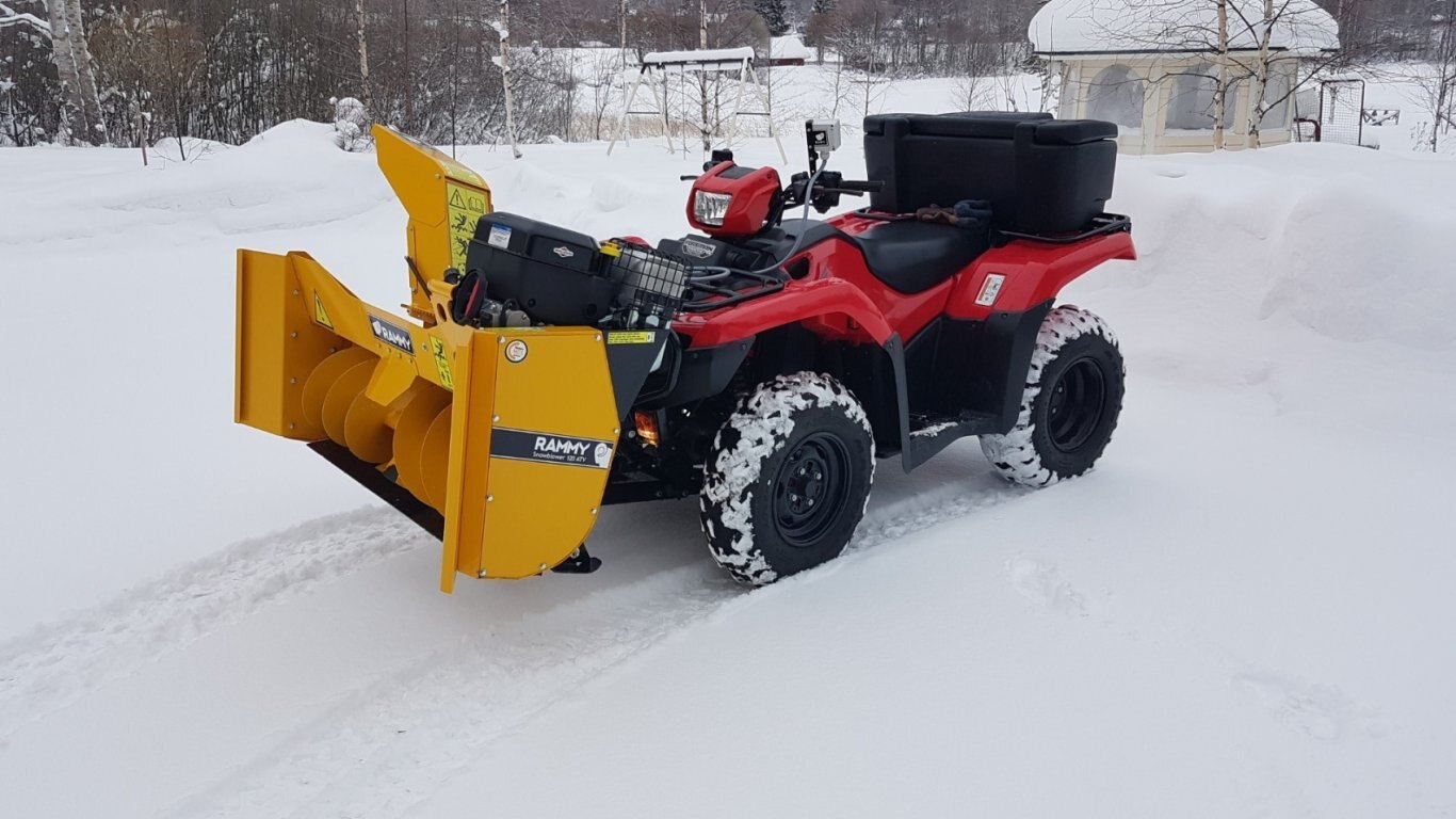 With the adjustable frame, this snowblower is suitable for almost all 4x4 ATV-s. If the CENTER MOUNTING KIT is on the bottom of your ATV, Rammy can be used with existing fasteners. If you need these (not included in the standard delivery), we have CENTER MOUNTING KITS.