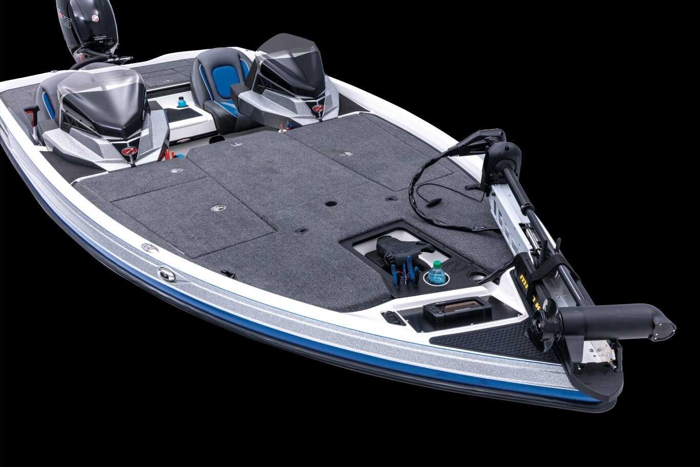 In the 18-foot class, the Ranger® Z518 stands alone in terms of all-out performance, economy and features. We’ve maximized inner storage space up front with a pair of 8-foot rod boxes, a gelcoat-lined, insulated in-deck cooler and large starboard gear box. The oversize casting deck and 97-inch beam betray the boat’s size and offer a stable and silent platform. A foam-filled core and strategically placed pultruded fiberglass material deliver unshakable solidity and a one-piece feel throughout. The console carries a full complement of precision gauges, the electronics of your choice and wears matte black accents. Integrated LED navigation lights, a recessed trolling motor pedal and SRS Soft-Ride Seating round out this angler-centric rig that far outperforms its price tag. From daylight to dusk, the Ranger Z518 delivers features and value like none other.