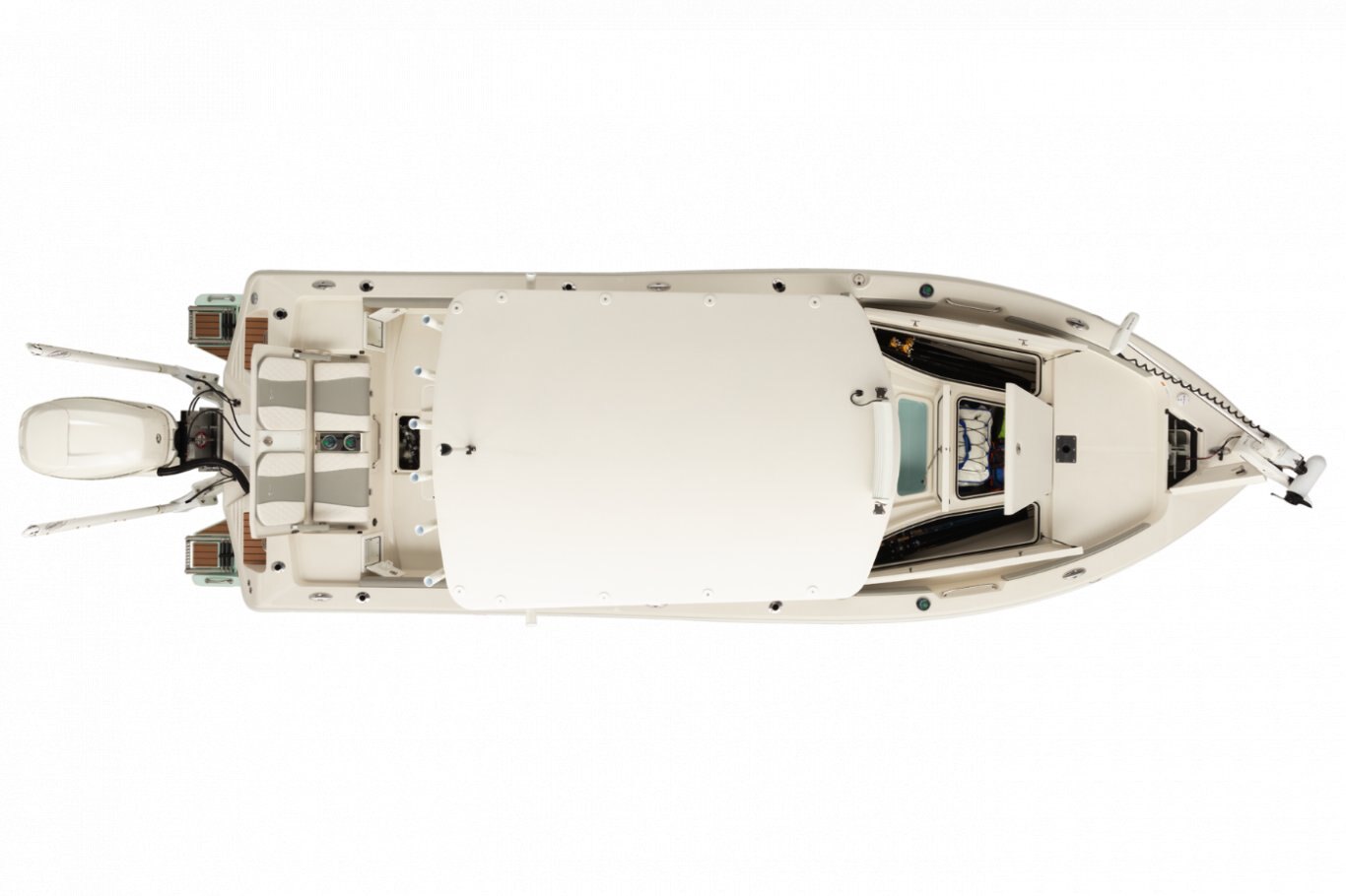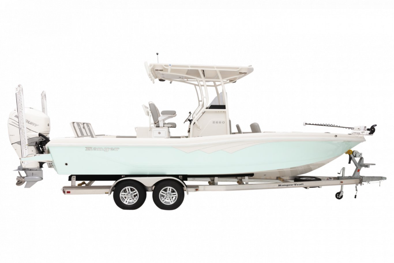 The 2660 Bay Ranger builds on Ranger’s sterling lineup of bay boats with a new hull, expanded capability and an extreme attention to detail to deliver incredible performance and fishability to pursue saltwater species around the globe. Twin rod storages and a massive fish box highlight the angler-centric front deck that is ideal for casting jigs or nets. Live bait rides behind the helm seat and/or in the front deck step for quick access to keep the bite going while rod holders throughout keep your gear handy. A rear swim platform and optional front-deck cushions add versatility to the 2660 for a family-oriented outing, but when it’s time to get after the fish the 400-horsepower rating offers excitement on demand. The Ranger 2660 boasts ample muscle for marlin, makos and mahi.