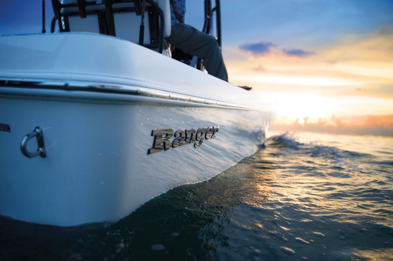 The Ranger® 2360 is designed for maximum confidence and comfort offshore, with stealth and a respectable draft for prowling the flats. At 23' 5" the 2360 carries a 300-horsepower rating and an expertly flared bow to smooth out rough seas. The angler-designed interior boasts a clutter-free layout and clever storage with plenty of room for stand-up fishing or tending to trolling lines. Conveniences are integrated from bow to stern from the rear fold-down jump seats, large center console that can comfortably house a portable toilet to the lower, easier-to-access front casting deck. Within the hull is a massive stringer system with solid, reinforced chines and a world of our signature foam flotation that deliver that famous one-piece feel, along with our patented, stronger-than-steel pultruded fiberglass material. The Ranger 2360 truly is the bay boat, evolved.