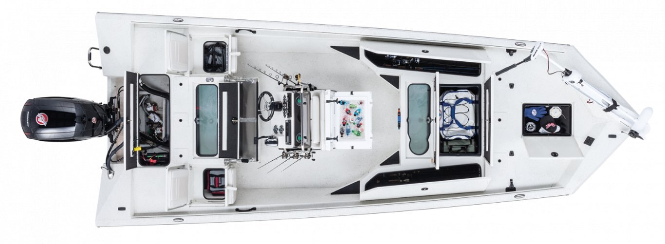 The RB200 packs more muscle in a bigger hull for greater performance, stability and capability to take you further than ever. The pad-bottom hull is designed for a dry ride that planes in a hurry, even in the shallows. The all-welded hull delivers strength in chop while precision steering and throttle control give you the ultimate in command. The wide, stable front casting deck delivers huge room for multiple anglers, and the interior is perfectly tailored for taking on inshore fisheries or a bass tournament with dual livewells and rod boxes, a huge in-deck storage and storage under the rear jump seats. At the helm, electronics up to 9" may be flush mounted and membrane-style switching delivers convenient simplicity. The ruggedized Ranger Trail® trailer is constructed with all-welded aluminum for the utmost in corrosion-resistant strength. Diamond plate fenders offer a step up and protection from road debris. A new camo version is more than just a paint scheme, this special rig features blacked-out badging, matte black closures and console railing, along with an all-black steering wheel for maximum concealment. No matter where your quarry swims, the enhanced capability of the RB200 is designed to Dominate Inshore and Nearshore.