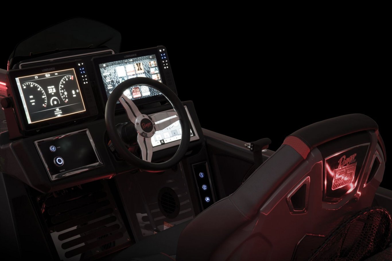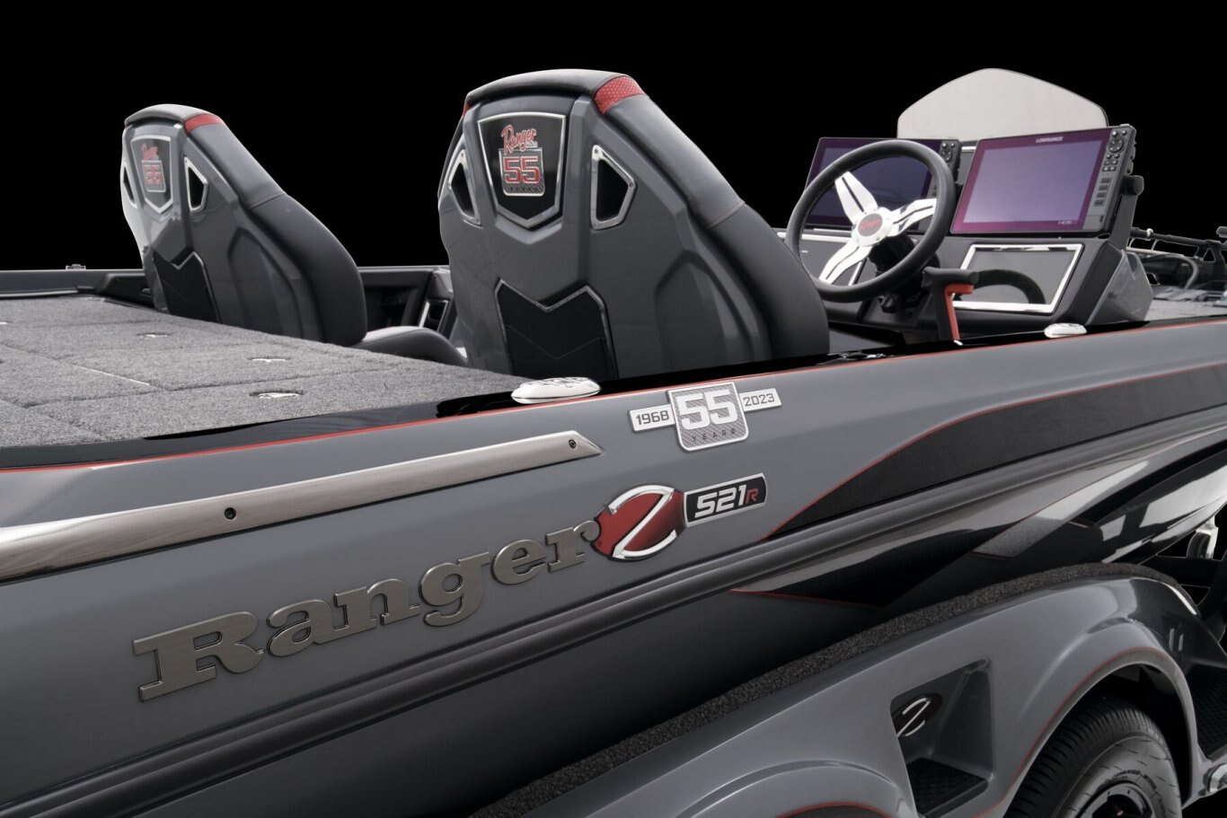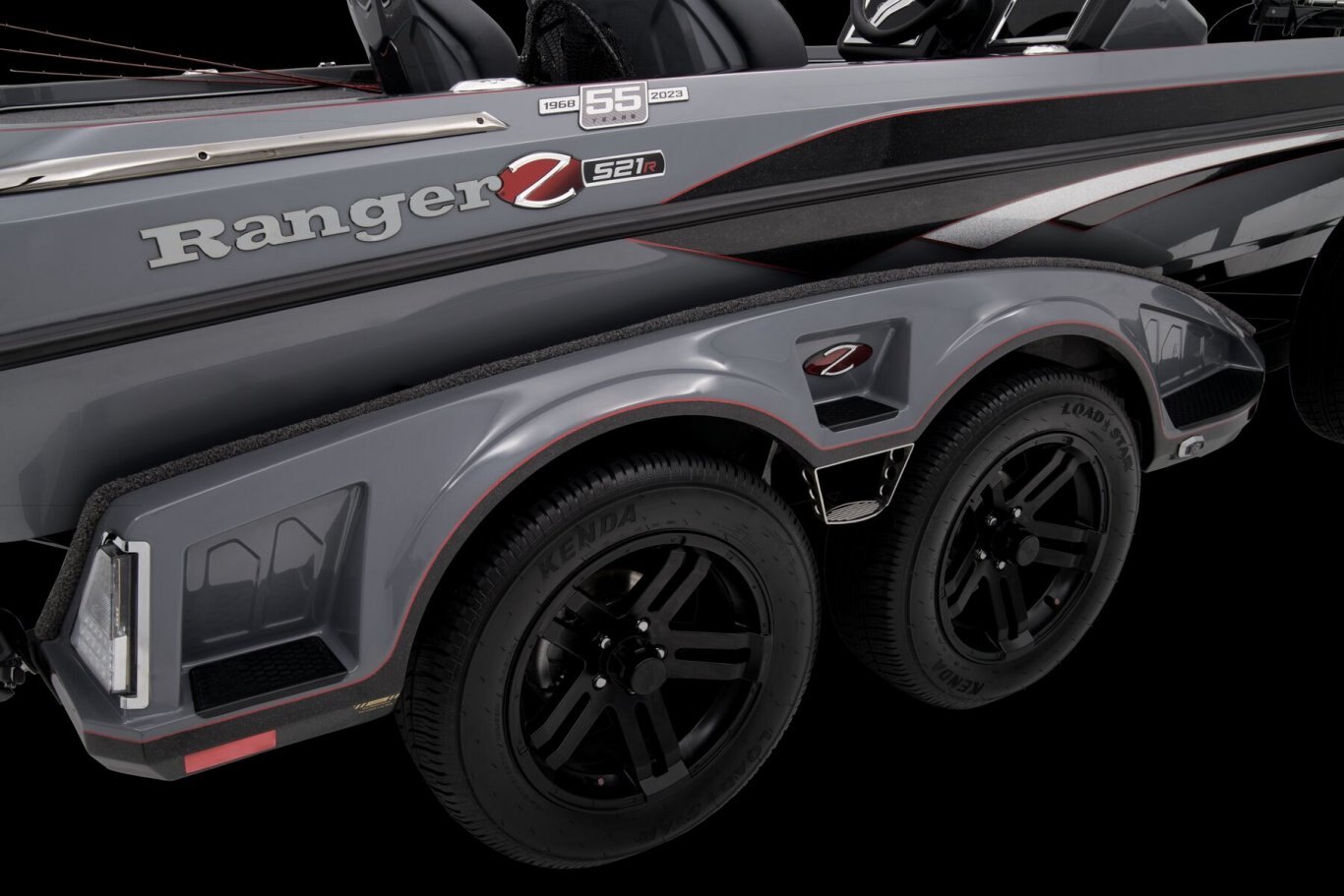 The 55th Anniversary Limited Edition Z521R and Z520R Z-Comanche boats feature the complete Ranger Cup Equipped package elevated with a one-off color scheme inside and out, commemorative 55th badging throughout, RGB carpet trim lights, custom black chrome accents, and a premium heated driver’s seat with shock-absorbing air bladders in the bottom and seat back. The trailer features custom-matched fenders, 17” black Challenger wheels, and matching smoked taillights for a complete package that’ll turn heads for another 55 years.