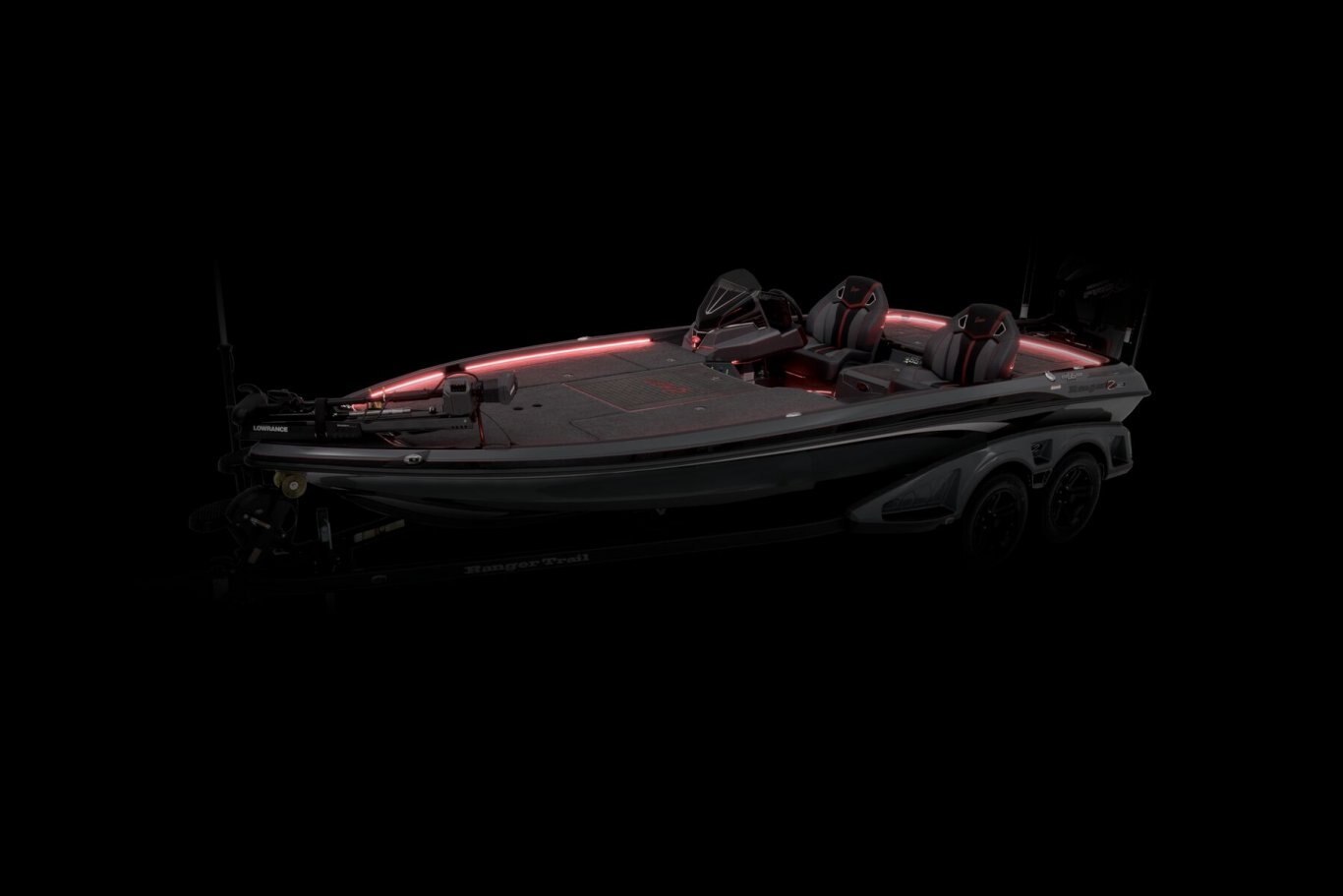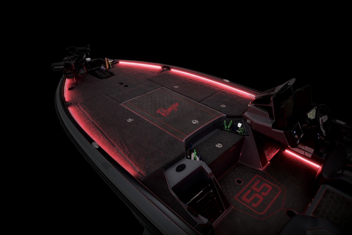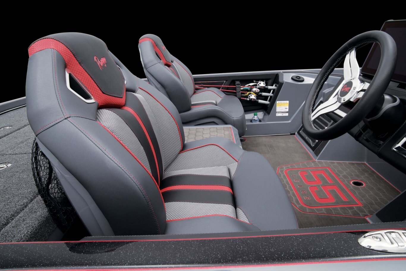 The 55th Anniversary Limited Edition Z521R and Z520R Z-Comanche boats feature the complete Ranger Cup Equipped package elevated with a one-off color scheme inside and out, commemorative 55th badging throughout, RGB carpet trim lights, custom black chrome accents, and a premium heated driver’s seat with shock-absorbing air bladders in the bottom and seat back. The trailer features custom-matched fenders, 17” black Challenger wheels, and matching smoked taillights for a complete package that’ll turn heads for another 55 years.
