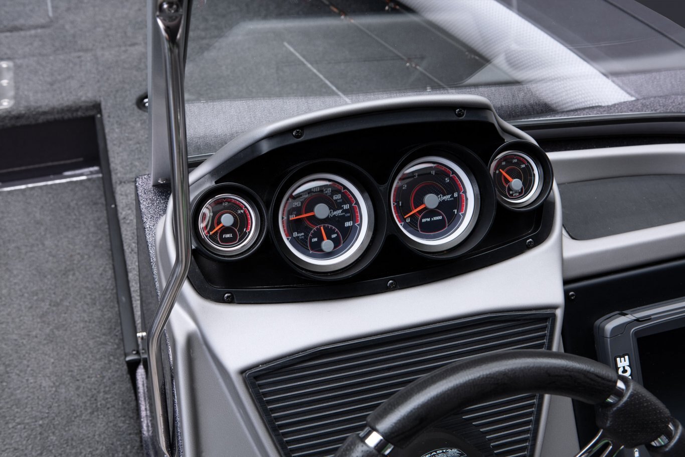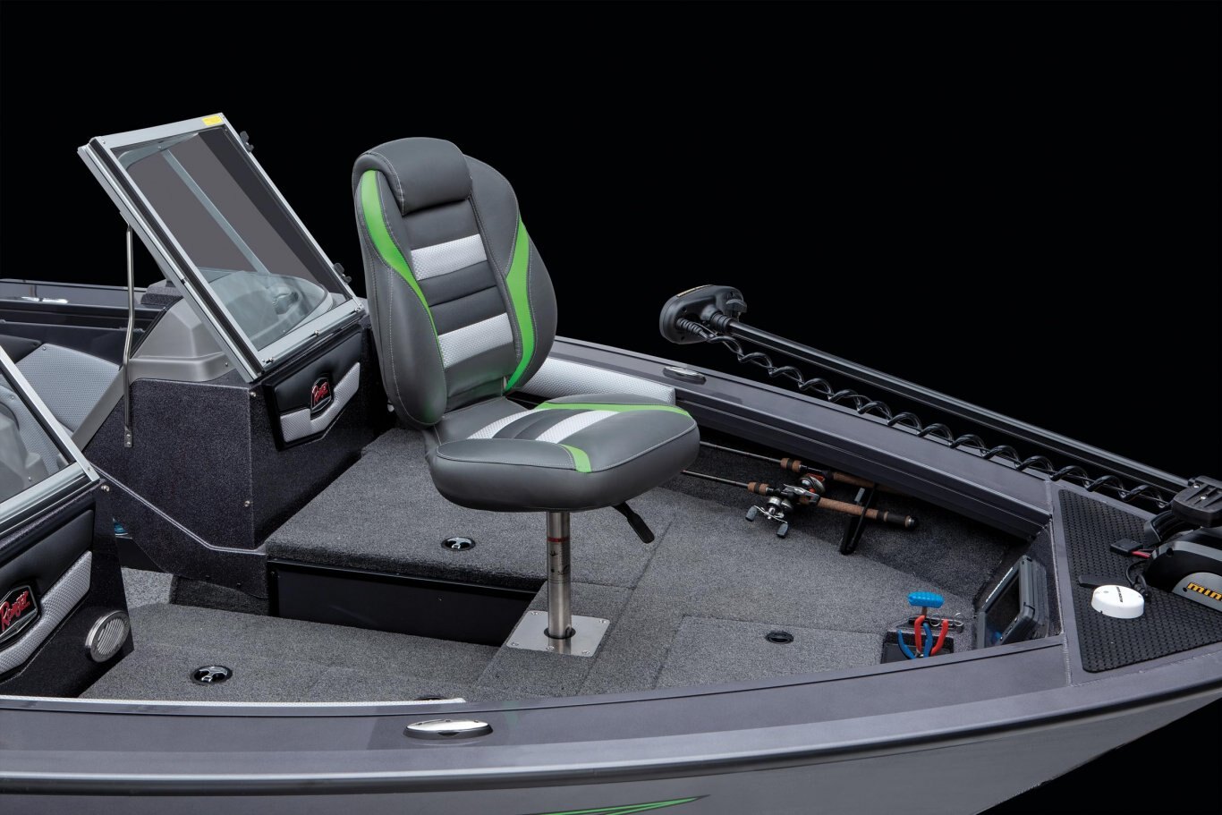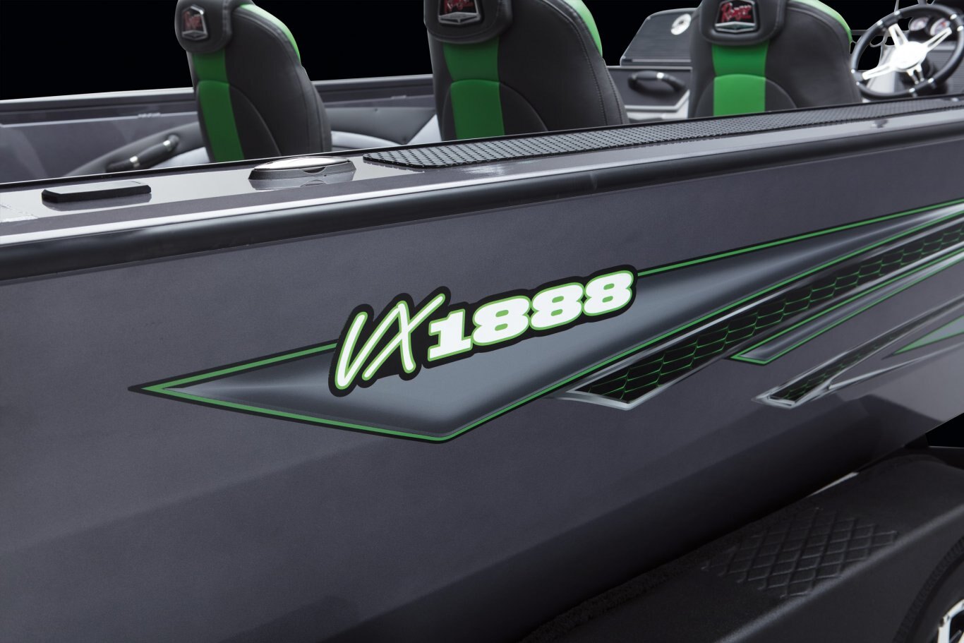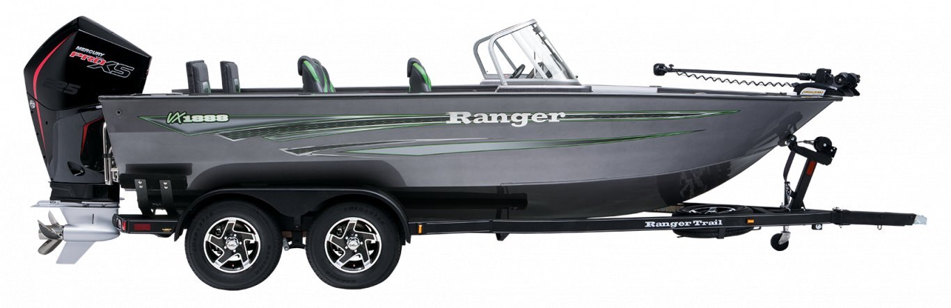 Our flagship aluminum Deep V redefines the category with trendsetting features, construction, and performance. The VX1888WT borrows design cues from Ranger’s fiberglass Reata® fish-n-play series of proven winners with families and tournament-savvy anglers alike. Huge electronics, clever storages and a wealth of premium seating deliver comfort and class for any activity. Buoyed by Ranger’s all-welded, foam-filled and wood-free construction with .125” aluminum, the VX1888WT is a solid platform for whatever the day holds. Non-skid cockpit flooring, a Bluetooth stereo, with USB and 12V outlets highlight the interior while a 7’6” center rod locker, standard Minn Kota® trolling motor and Lowrance® electronics get you on the fish in a hurry. When the action heats up, reach into the insulated in-deck cooler and relax on the front deck extension and optional deck pads. All of these features and more culminate to make the VX1888WT The New Big Water Standard.