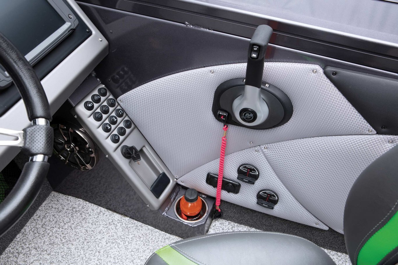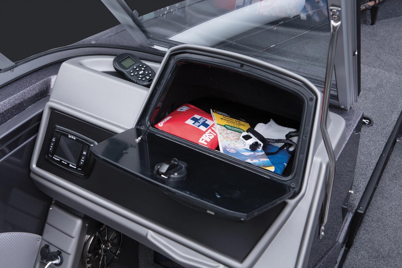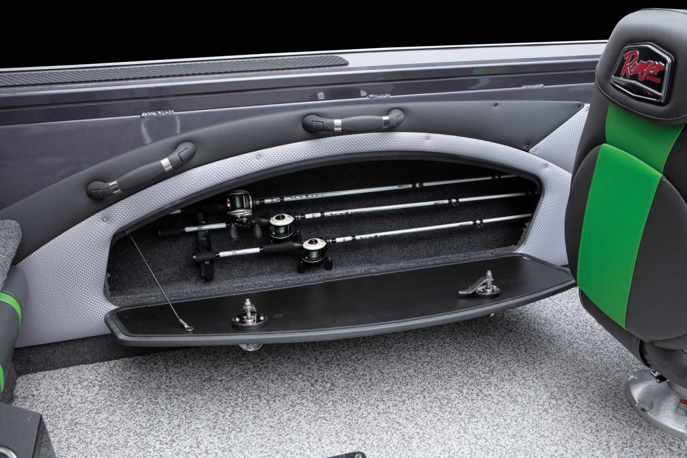 Our flagship aluminum Deep V redefines the category with trendsetting features, construction, and performance. The VX1888WT borrows design cues from Ranger’s fiberglass Reata® fish-n-play series of proven winners with families and tournament-savvy anglers alike. Huge electronics, clever storages and a wealth of premium seating deliver comfort and class for any activity. Buoyed by Ranger’s all-welded, foam-filled and wood-free construction with .125” aluminum, the VX1888WT is a solid platform for whatever the day holds. Non-skid cockpit flooring, a Bluetooth stereo, with USB and 12V outlets highlight the interior while a 7’6” center rod locker, standard Minn Kota® trolling motor and Lowrance® electronics get you on the fish in a hurry. When the action heats up, reach into the insulated in-deck cooler and relax on the front deck extension and optional deck pads. All of these features and more culminate to make the VX1888WT The New Big Water Standard.