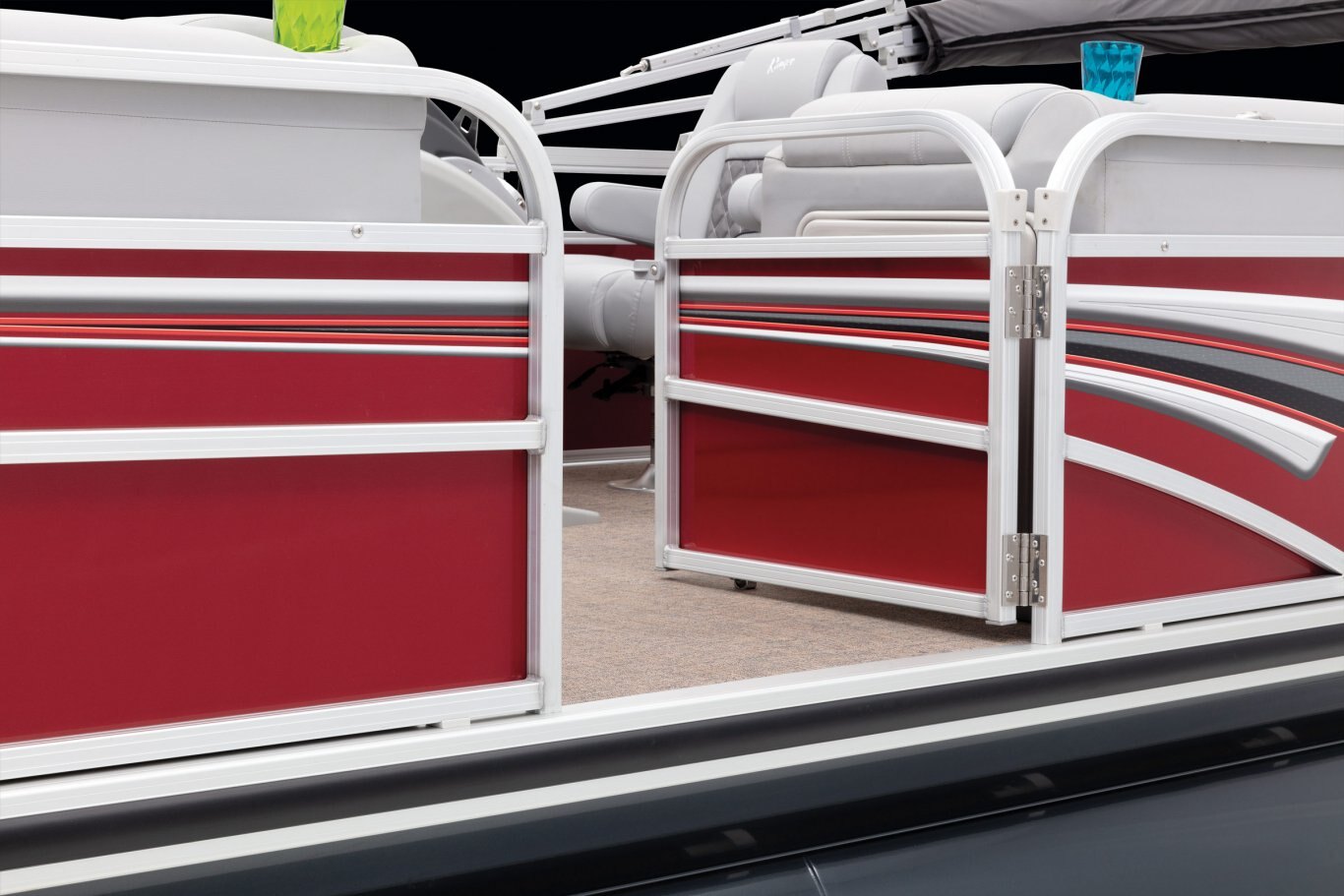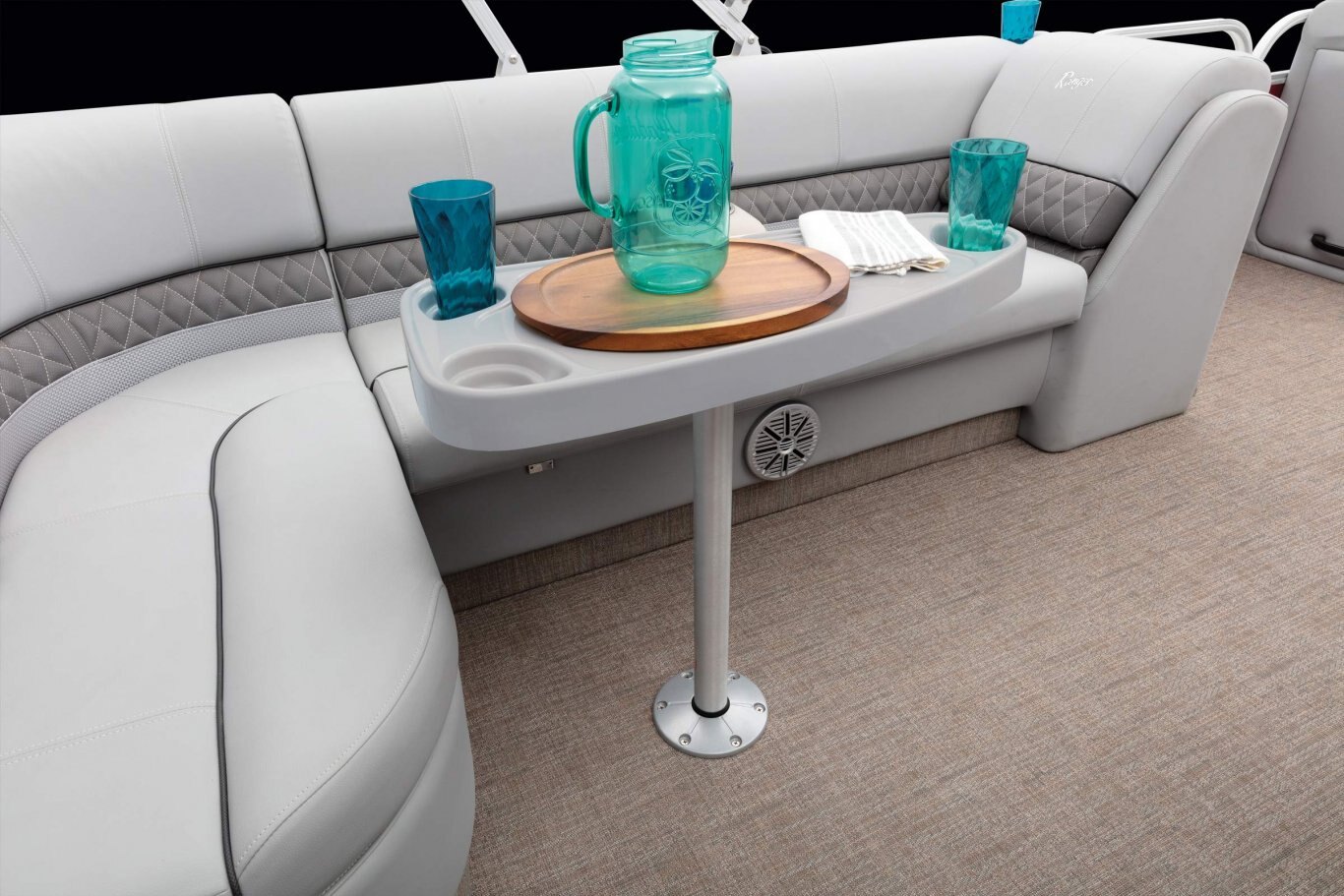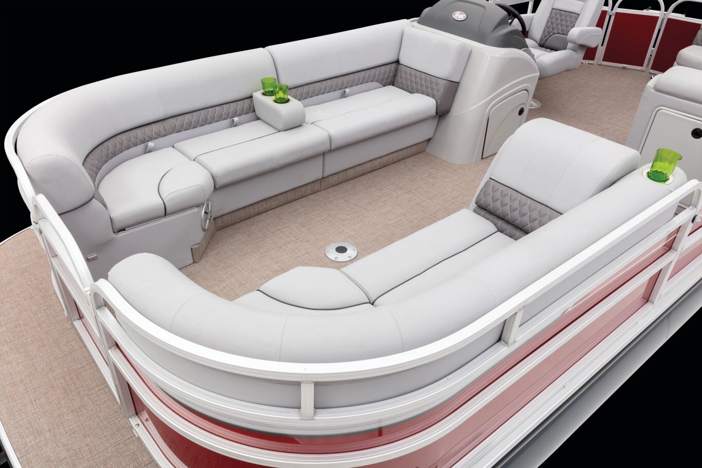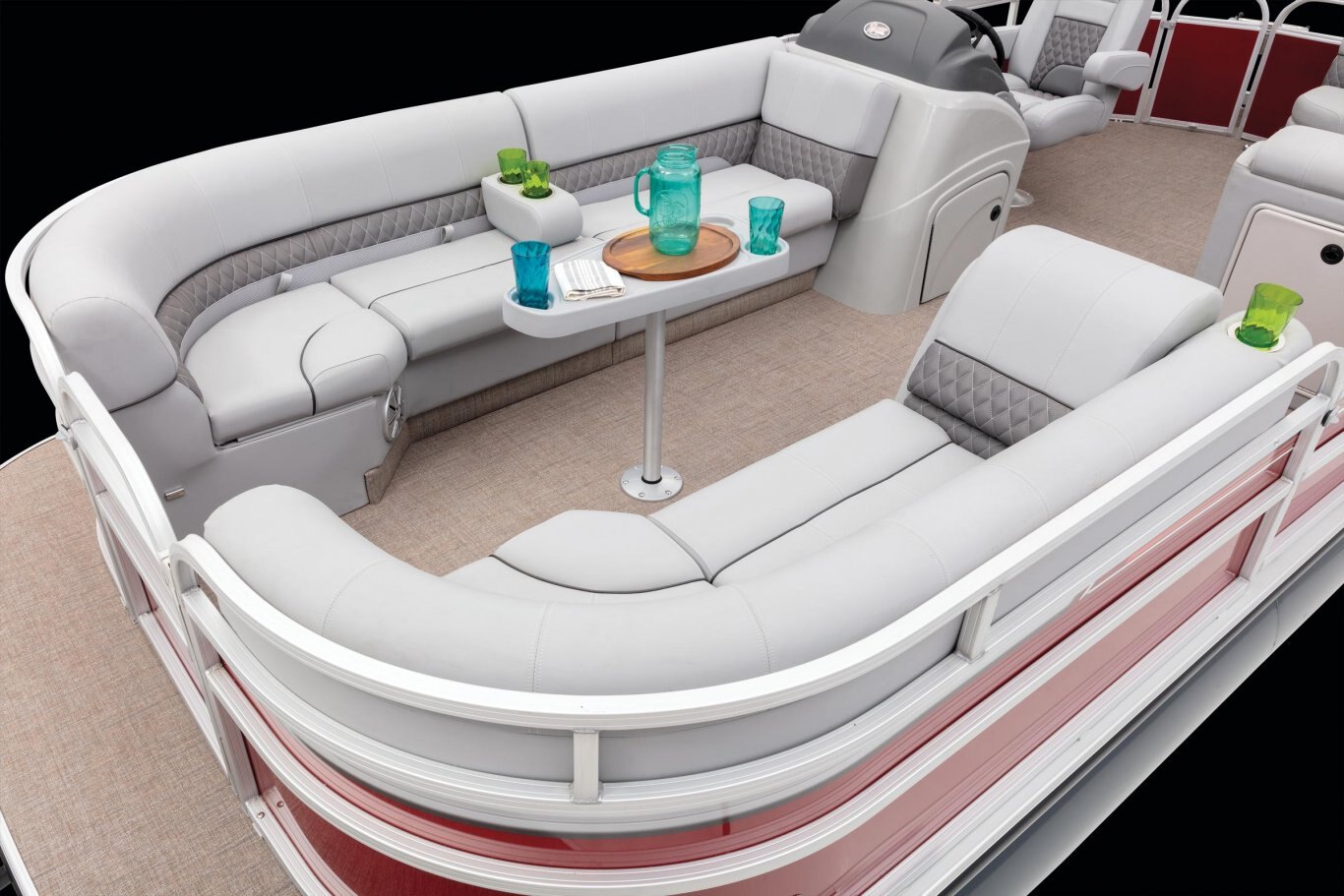 Smooth, solid power, refined luxury and maximum convenience define the Ranger® Reata® 223C. With three powder-coated pontoons, hand-crafted seating and an 11-foot Bimini top, this pontoon is ready to move you in comfort and style. A full-width rear swim platform with boarding ladder are adjacent to the PowerPod™ motor extension that delivers enhanced performance and a quieter ride. Within the redesigned gates is luxury from top to bottom, from the soft-touch woven flooring to the extra-plush lounges and overstuffed captain’s chair. Storage beneath every seat and under the console easily hold a day’s worth of gear while a 200-horsepower rating ramps up excitement on demand. With so much capability, the Ranger 223C delivers high performance, even at 0 MPH.