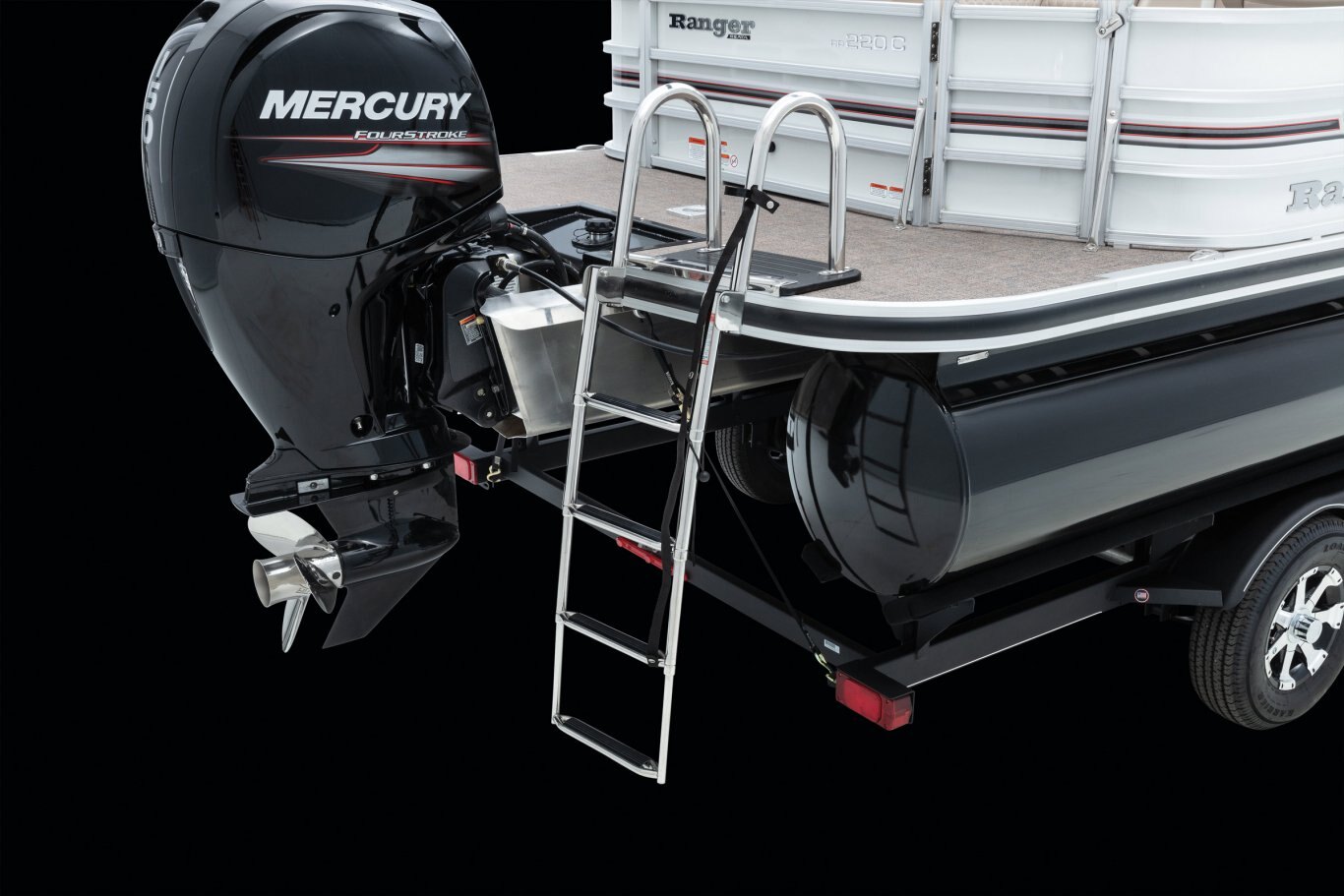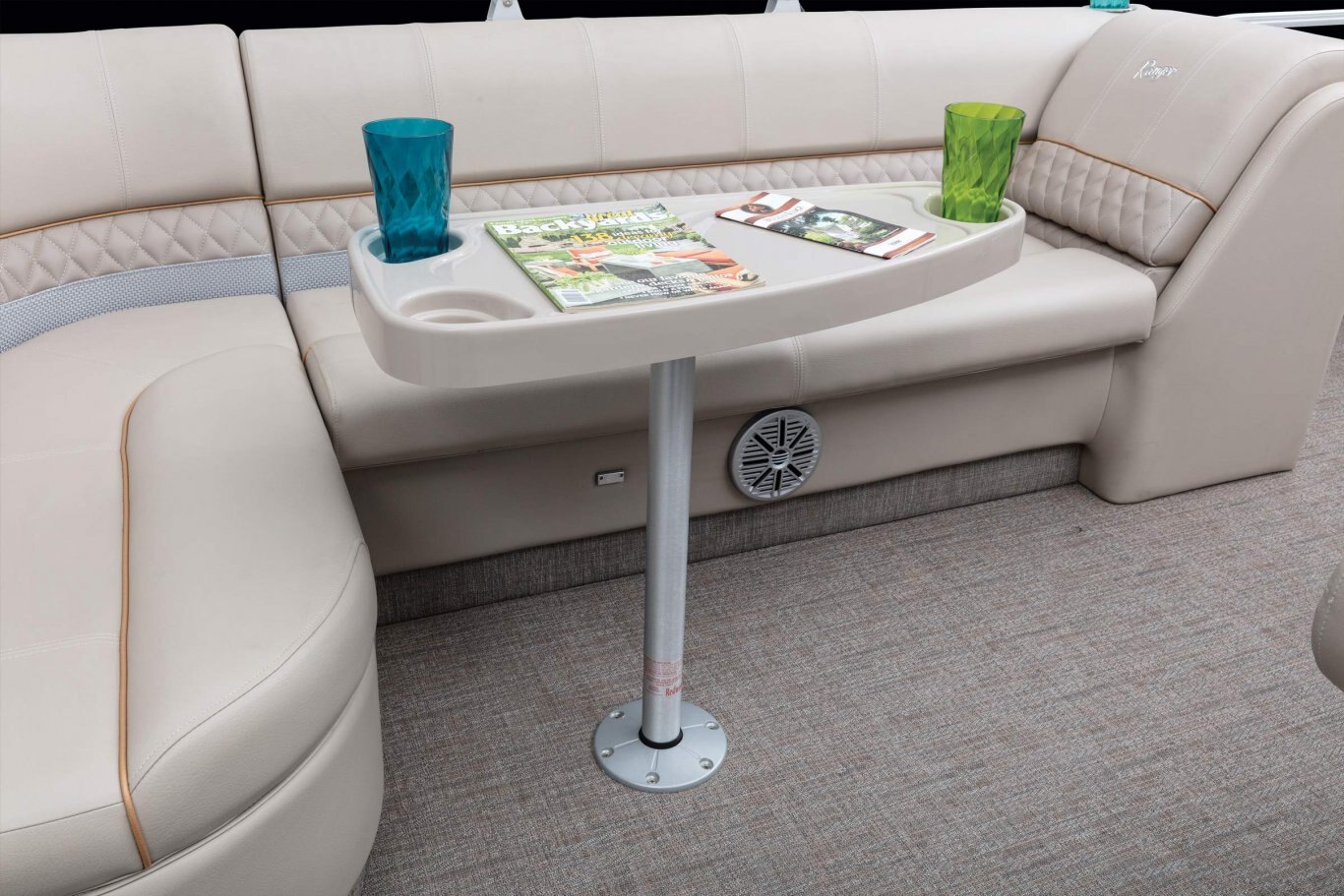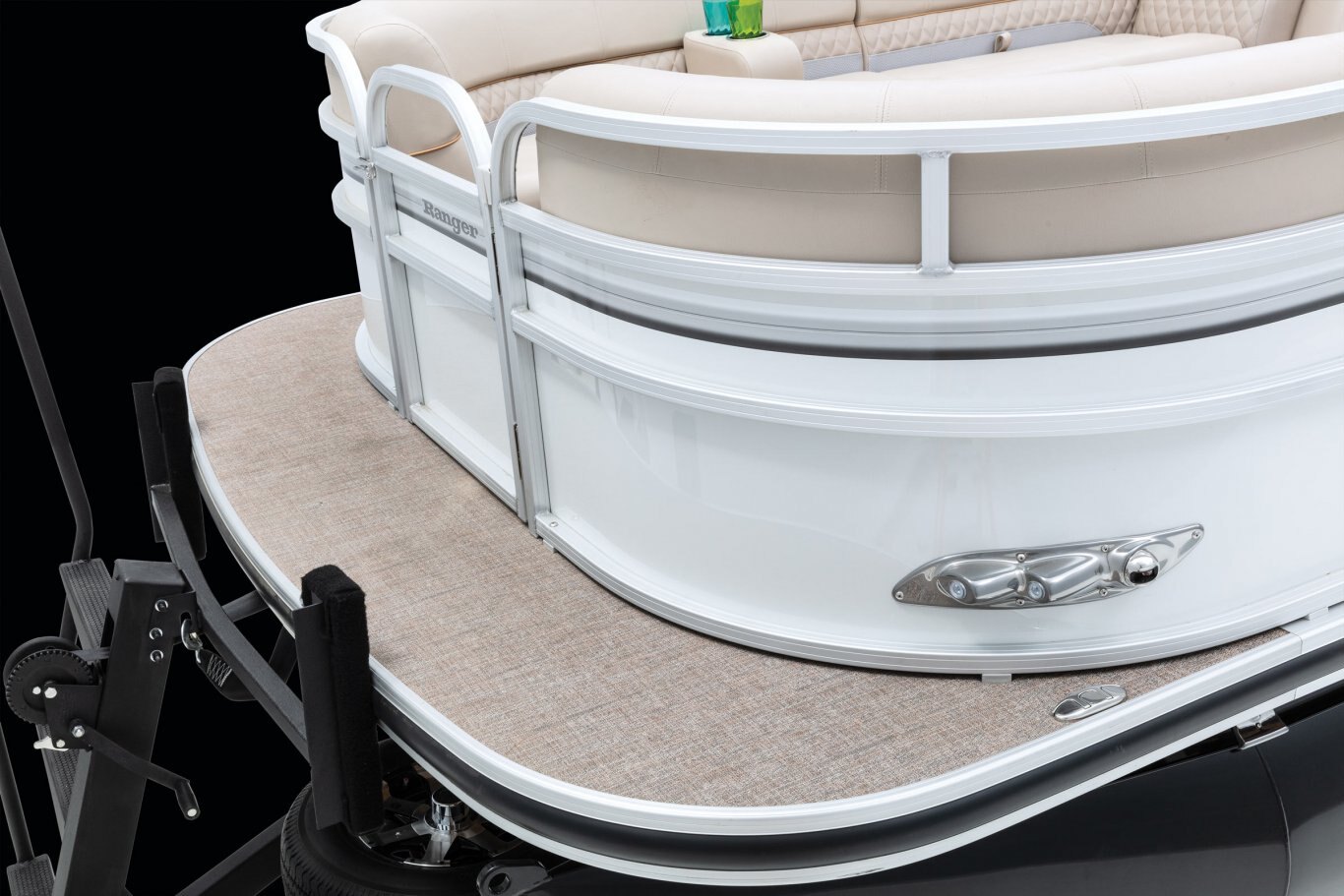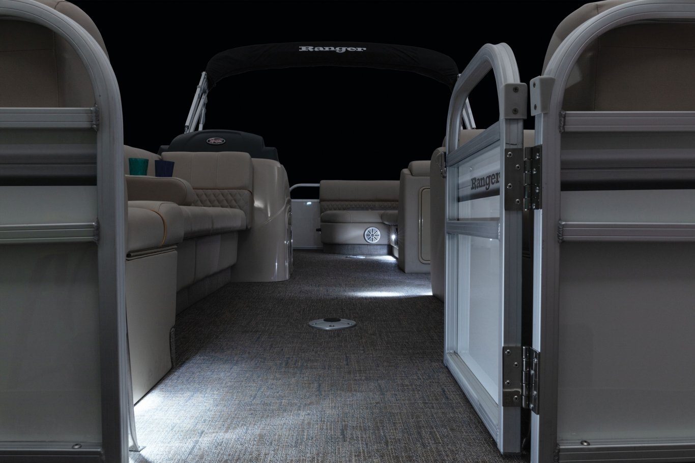 With a deck big enough for any undertaking, the Ranger® Reata® 220C is an easy-to-maneuver platform that gives up nothing in capacity while boasting a full complement of high-end touches inside and out. Chrome bezels surround LED navigation and docking lights on the redesigned fencing. Rounded gates with stainless steel hardware provide entry to the plush deck, highlighted by an updated helm seat and fully featured console complete with no-feedback steering and an array of gauges. A matching 11-foot Bimini top keeps things cool while a wealth of cupholders and an under-console cooler storage keep drinks close at hand. When you need to escape into the outdoors, the 220C deliver all kinds of capability for any and everything.