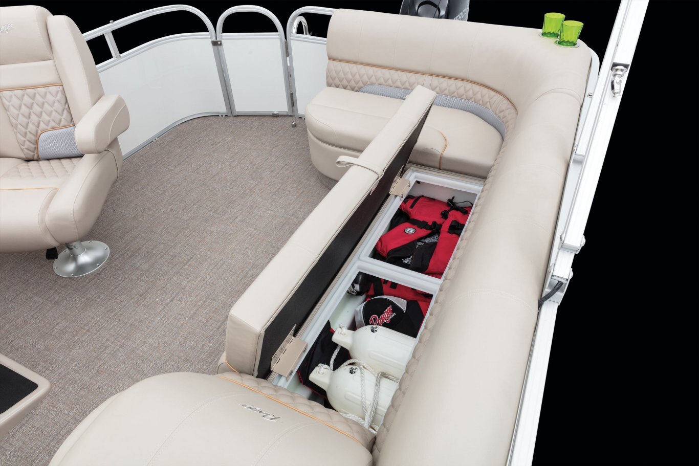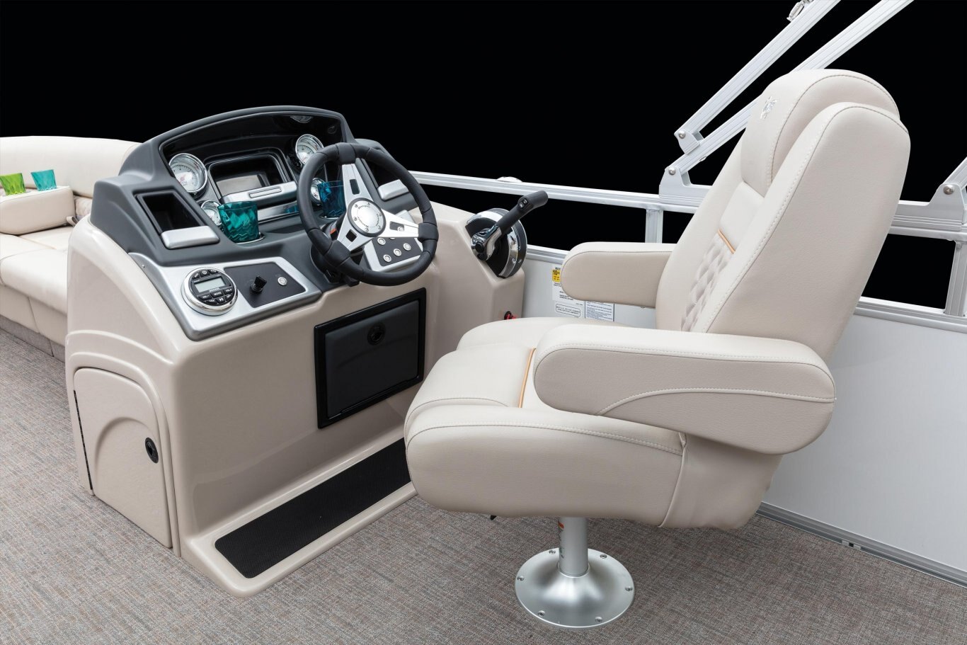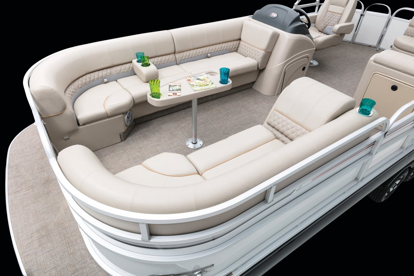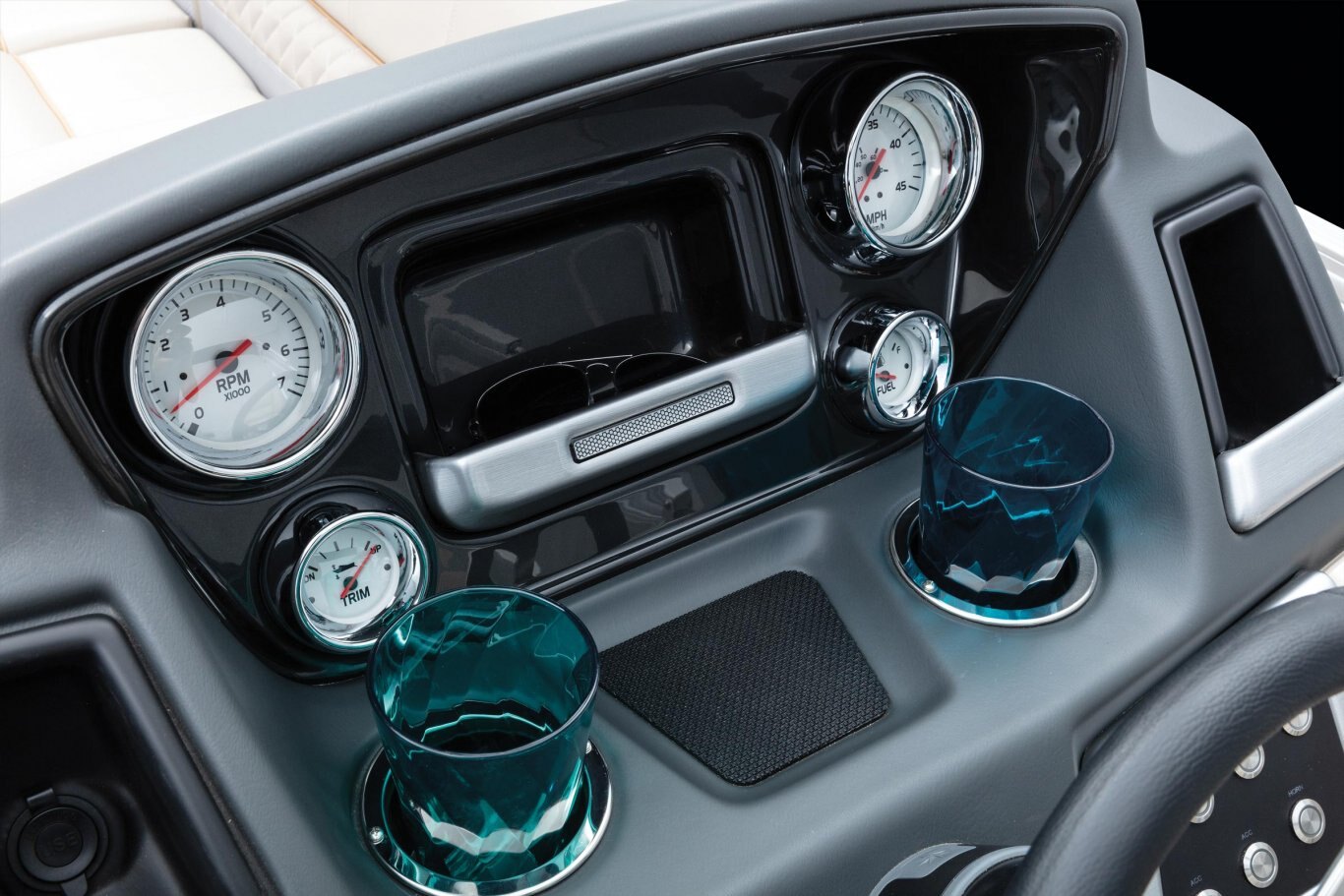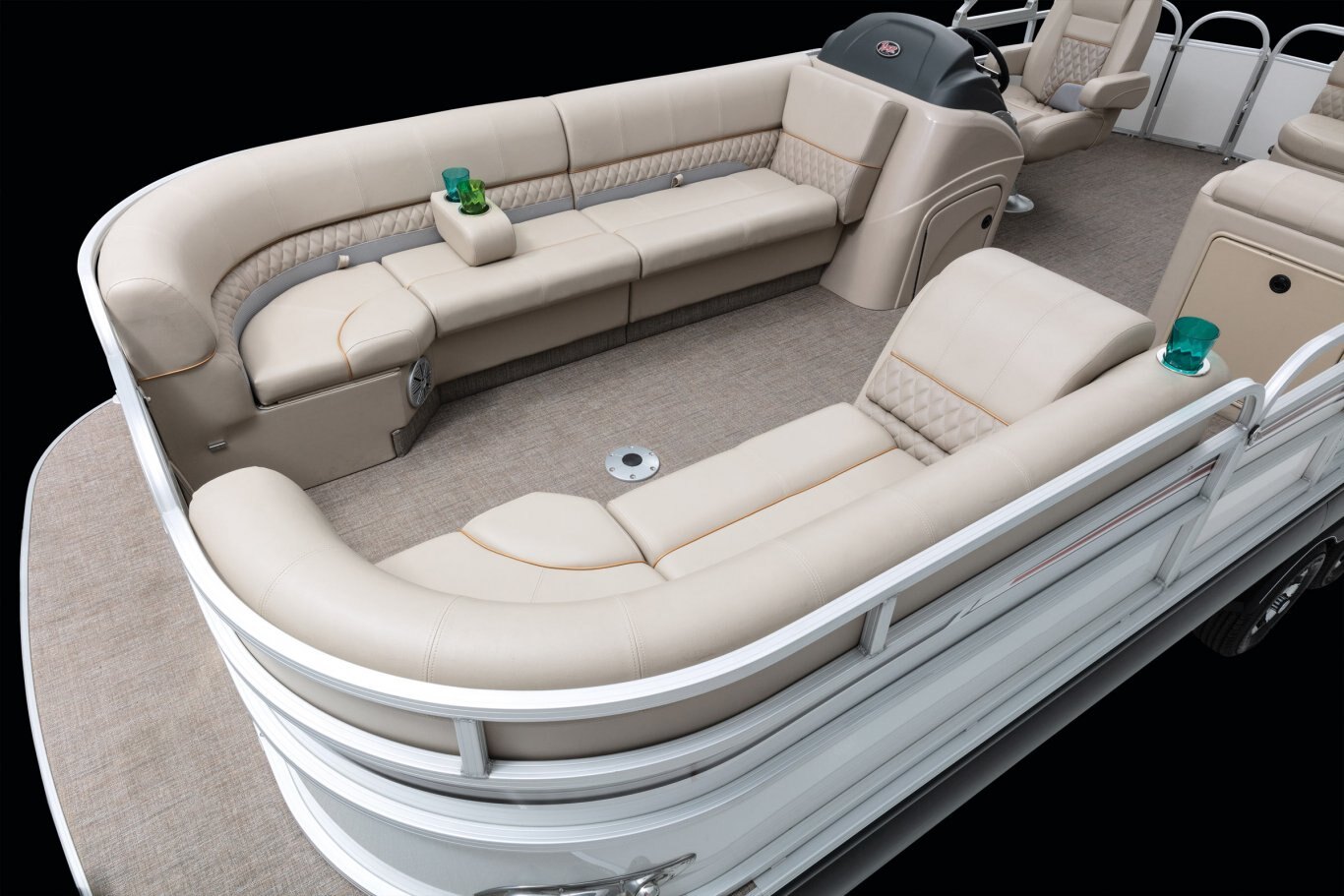 With a deck big enough for any undertaking, the Ranger® Reata® 220C is an easy-to-maneuver platform that gives up nothing in capacity while boasting a full complement of high-end touches inside and out. Chrome bezels surround LED navigation and docking lights on the redesigned fencing. Rounded gates with stainless steel hardware provide entry to the plush deck, highlighted by an updated helm seat and fully featured console complete with no-feedback steering and an array of gauges. A matching 11-foot Bimini top keeps things cool while a wealth of cupholders and an under-console cooler storage keep drinks close at hand. When you need to escape into the outdoors, the 220C deliver all kinds of capability for any and everything.