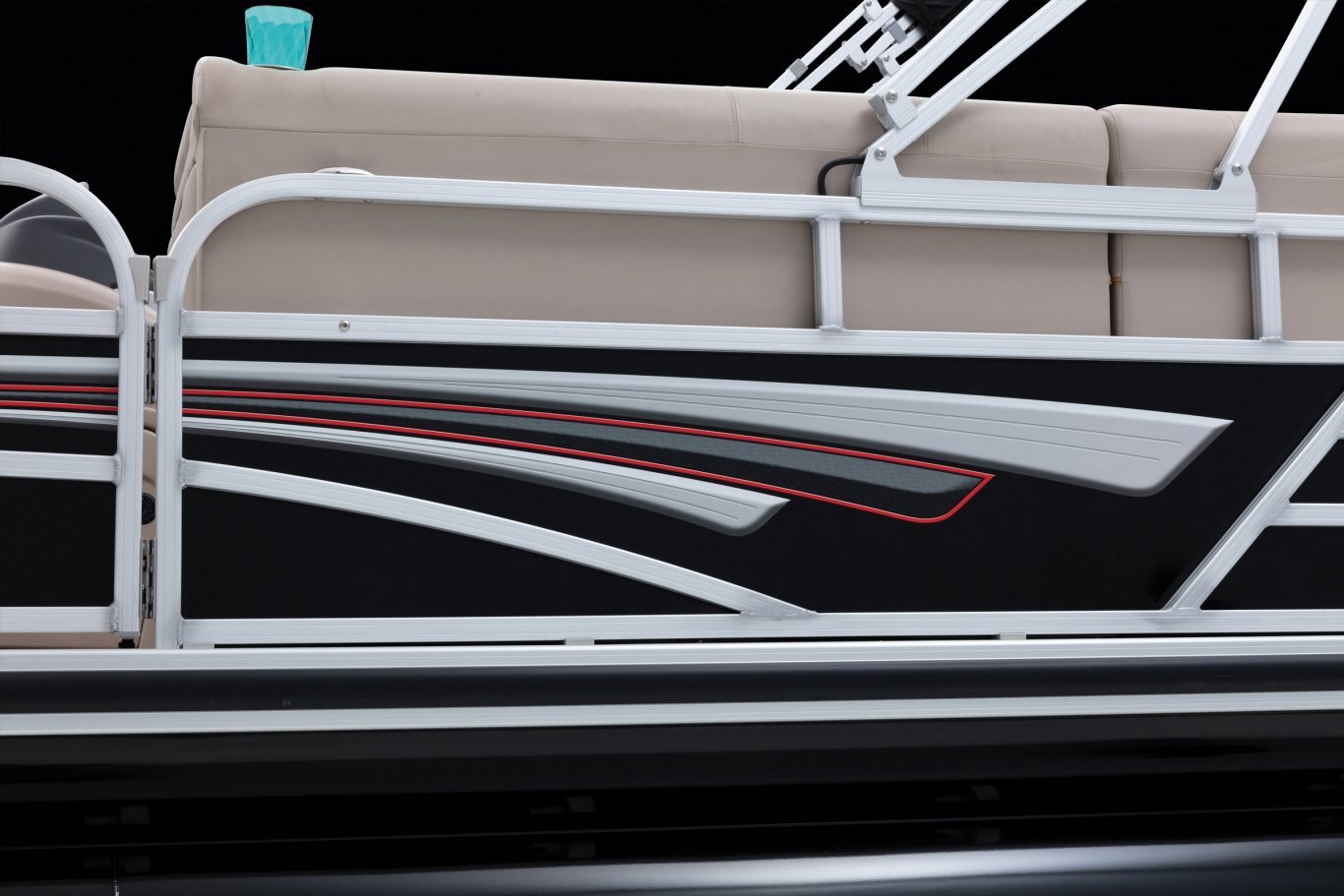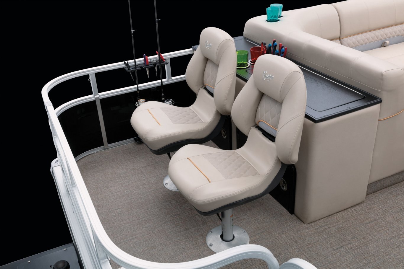 The biggest Fish & Cruise crossover boasts elegance and an attitude that’s not afraid to get fishy. Ample power and fishing options complement a large, spacious layout to deliver comfort and convenience to everyone on board. Soft and durable seating define both the lounges and fishing seats, while the fiberglass console houses electronics, gauges, a molded-in footrest and storage beneath. Our PowerPod™ gets you moving in a hurry while a trio of powder coated logs and AquaArmor™ undercladding deliver smooth, solid performance. The fencing offers peace of mind and security while a color-keyed Bimini top casts a cool shade when things heat up. Regardless of what you set out to do, the 223 FC catches a limit of fun every time.