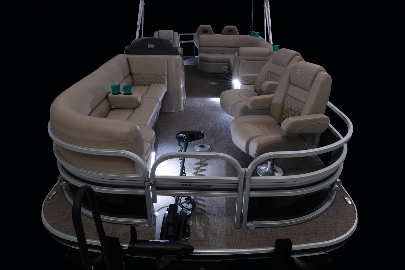 • Easy-to-deploy color-coordinated 10' (3.048 m) bimini top w/ LED lighting, storage pockets, matching protective boot w/ logo & power up & down feature