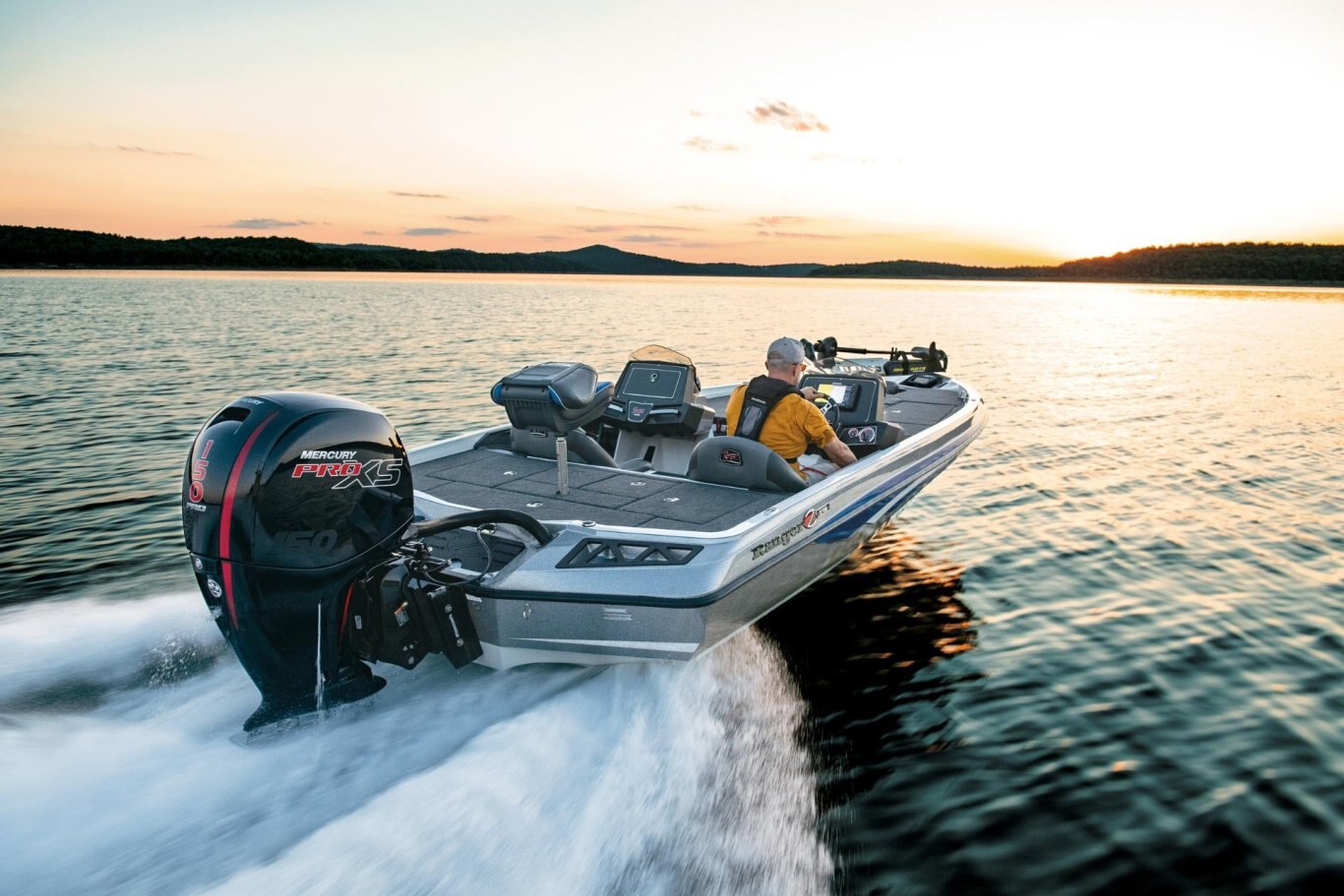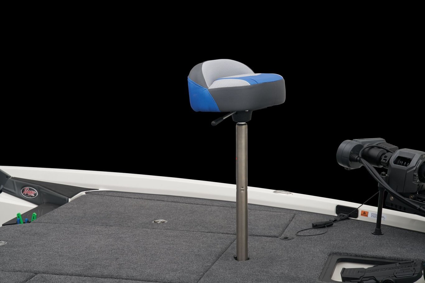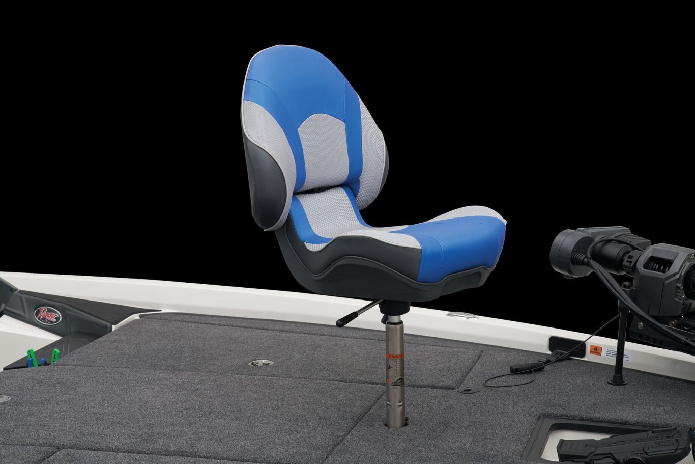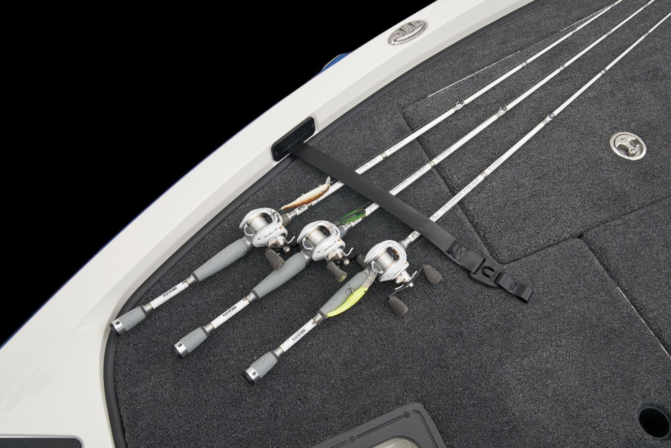 ELECTRONICS Multi-function custom gauge package: speedometer, tachometer, fuel, trim, water pressure, temp, volt Keyed ignition and premium analog switching Digital 6-function keypad at bow Heavy Duty 6-gauge trolling motor wiring harness w/ 60A breaker Master Power on/off battery disconnect switch NOCO™ GB40 jump starter w/ on-board USB charging LED storage compartment lighting & LED courtesy & livewell lighting Integrated LED bow navigation lights & removable LED anchor light 12V DC power receptacle with USB