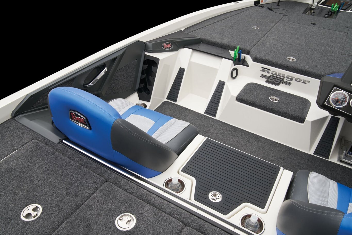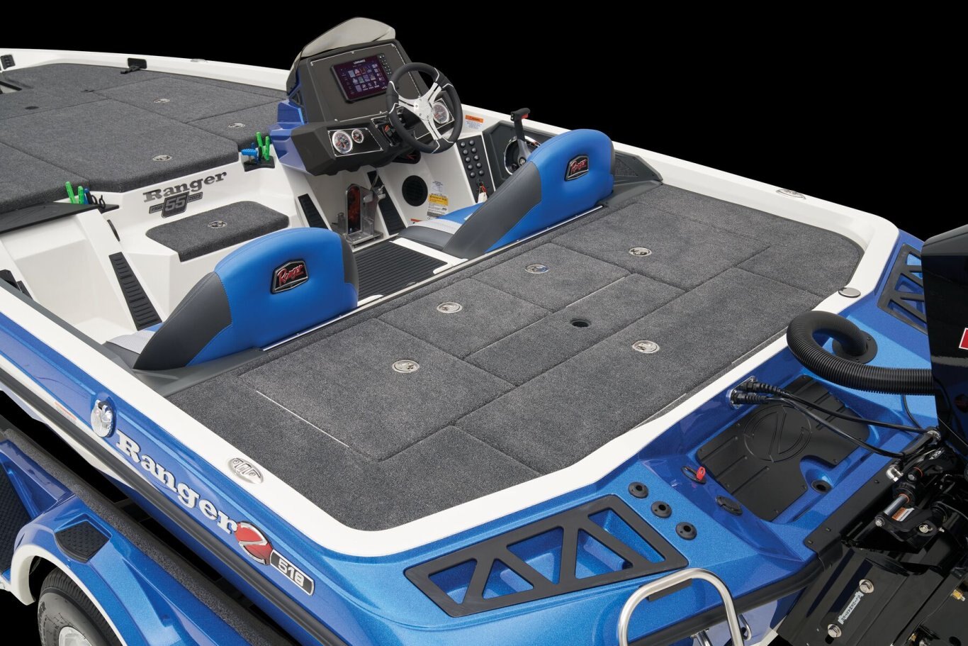 CUSTOM DETAILS Power Ventilation Rod Storage™ Integrated center-storage rod & tackle management system Insulated step-up cooler Ranger® tournament measuring board integrated at front deck step Runnin' rod rack w/ retractable strap Remote drain plug Stainless steel compression lid locks Tool holders at bow and front deck step