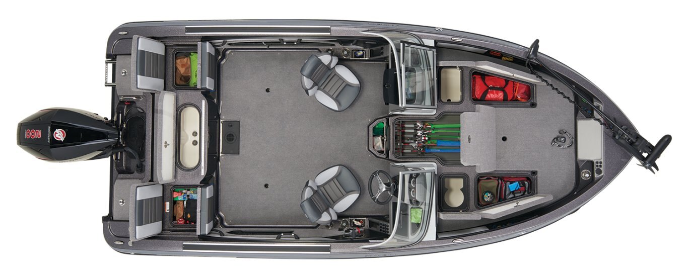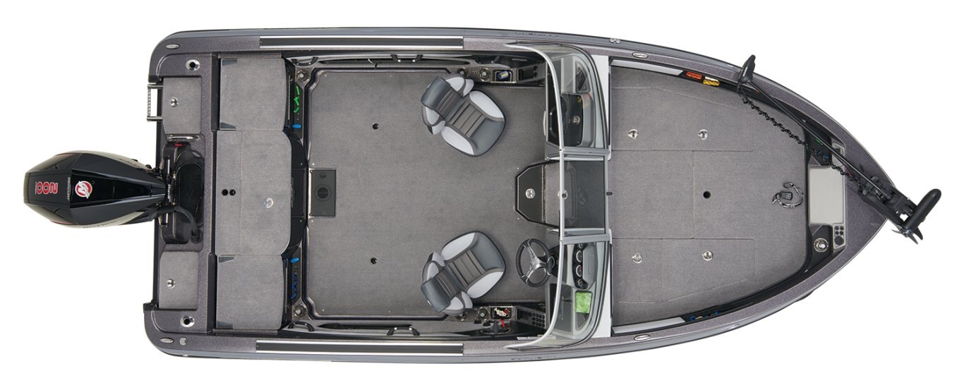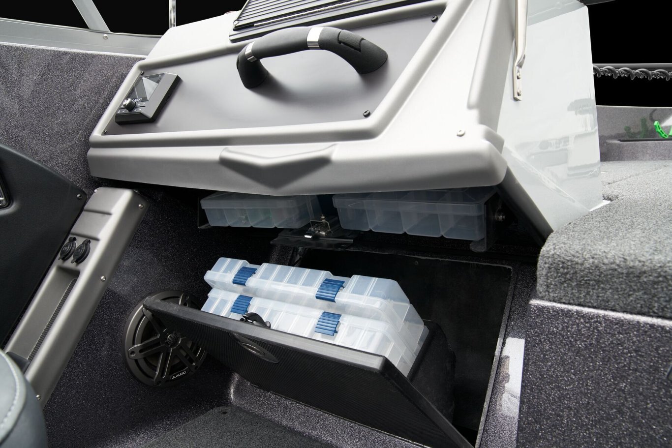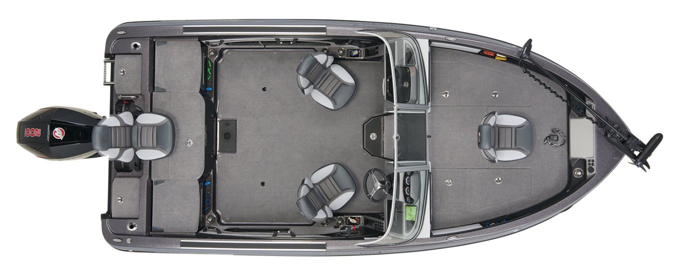 Inside you’ll find a wide-open cockpit that can be perfectly tailored to be a hardcore fishing machine or a smooth, easy-riding family fun vessel ready for tubing, skiing, and the like. A full complement of gear of any stripe conceals within the 1880’s clever storages from bow to stern. Integrated tool and drink holders, hand-built seats, stainless-steel cleats, and hardware add class and convenience to this capable performer.