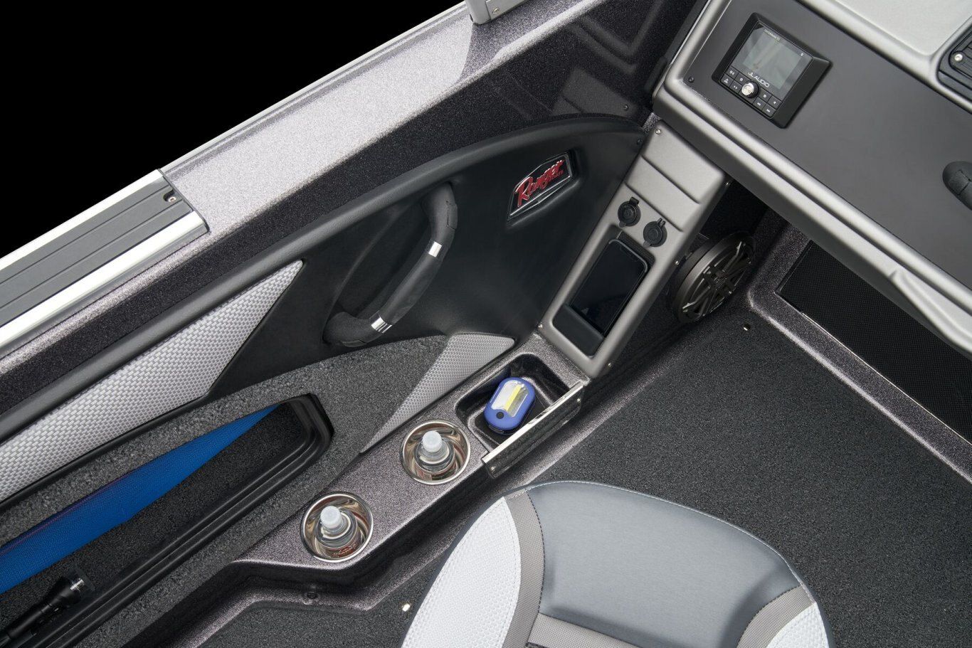 • Bow workstation with flush-mounted electronics, tool and drink holder and push-button switching