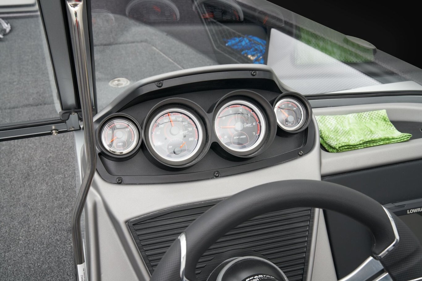 • Console panel w/ switches & gauges (speed, tach, fuel, trim, water pressure)