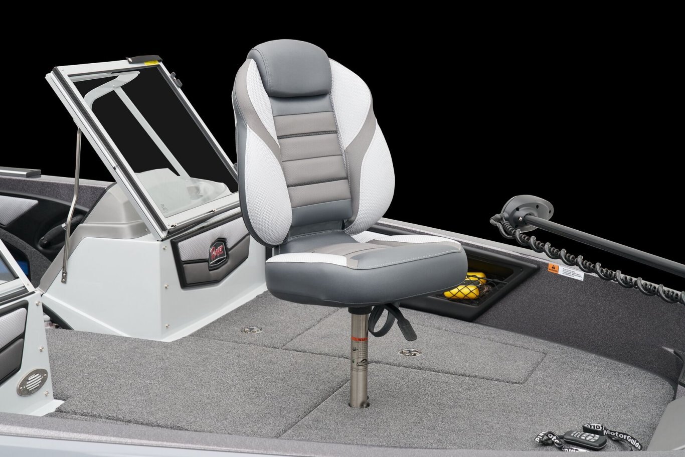 • Custom-fitted premium marine upholstery - (4) Soft Ride Seating (SRS) fold-downs w/ (2) bell pedestal with adjustable slide and (2) 15" non-adjustable posts