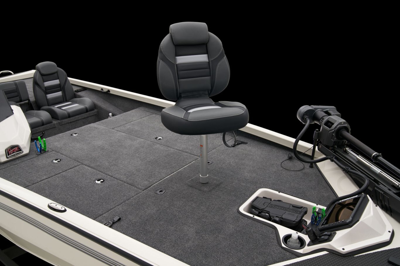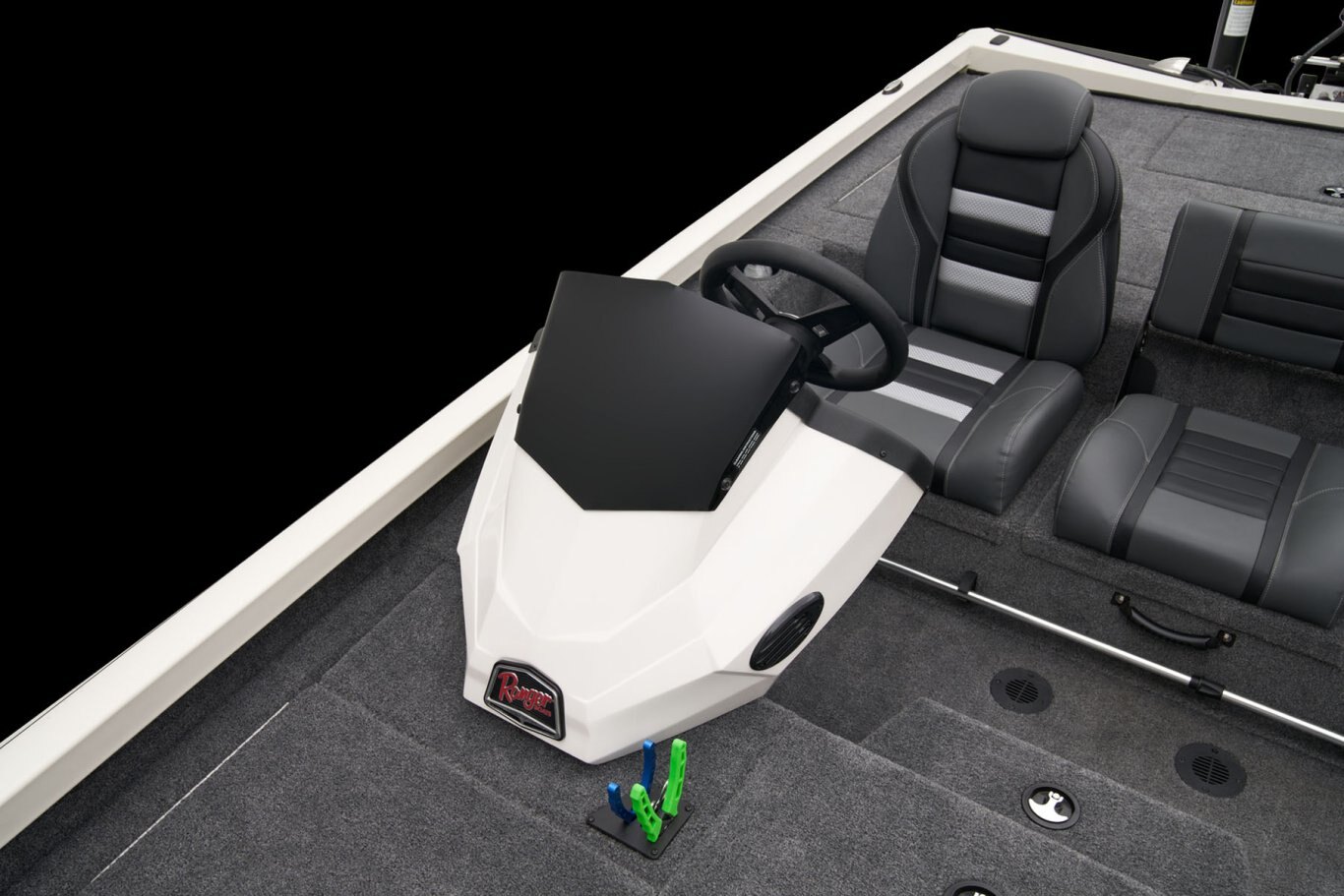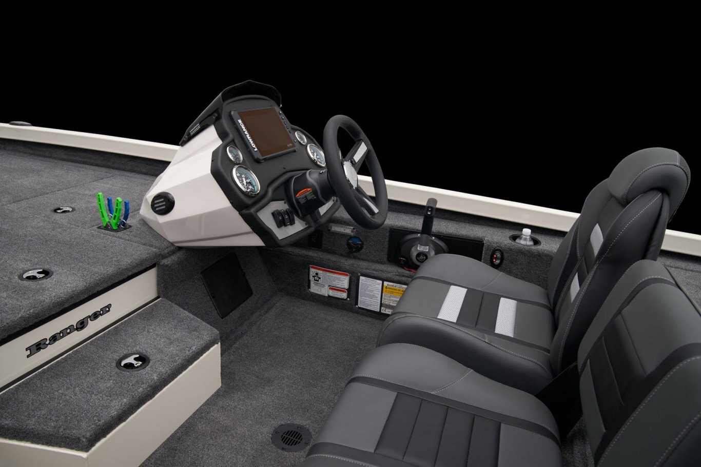 Ranger’s flagship aluminum bass boat stands as the high-water mark for all-around performance, comfort and capability. A monster front casting deck delivers ample space for multiple rods without them getting underfoot. Our wider design also keeps more of the hull in the water while on the trolling motor and is less prone to be affected by wind and wave action for frustration-free fishing. It also provides superior stability and  storage via two rod boxes, an insulated cooler, and an oversized tackle storage. With an advanced pad-bottom hull, performance-enhancing integrated engine setback, 150-horsepower rating and a big-league layout, you’ll stand out and fly by in the RT198P. Unparalleled craftsmanship is obvious inside and out from the all-welded, wood-free construction to the updated interior touches and handmade fiberglass consoles that hold class-leading 12-inch electronics. Inside the hull is our signature closed-cell flotation foam that solidifies, strengthens and quiets the design for a solid one-piece feel. Oversized rear storage boxes are tailor-made for tackle trays and the rear deck is centered by a divided, timed and aerated livewell. In the world of aluminum tournament rigs, the Ranger RT198P is the apex predator...Welcome To The Top Of The Food Chain.
