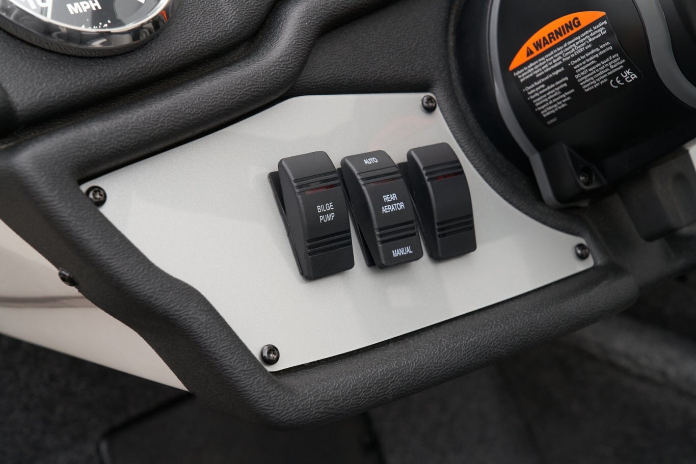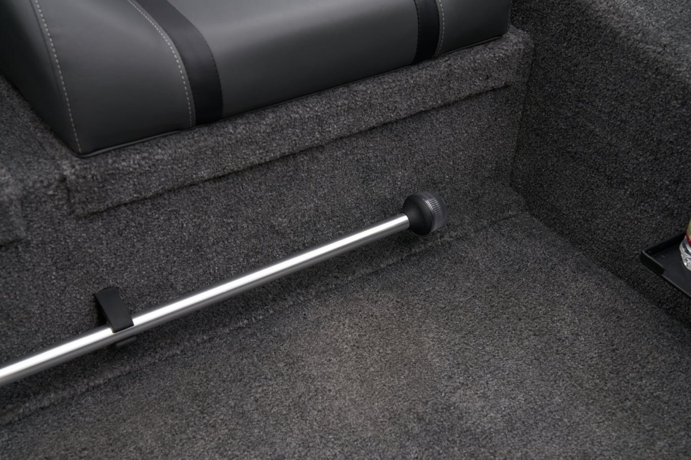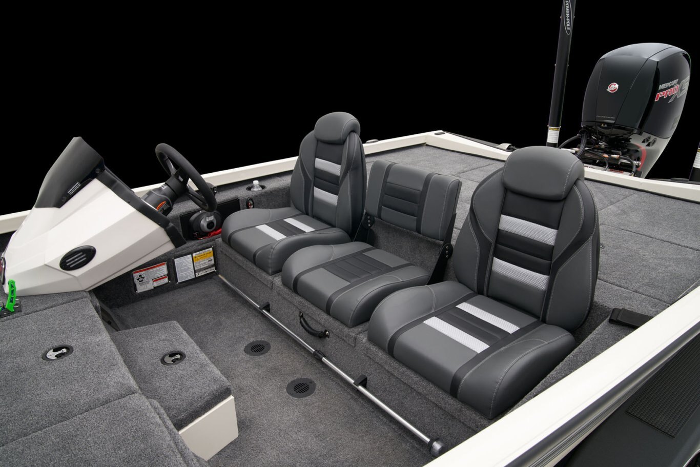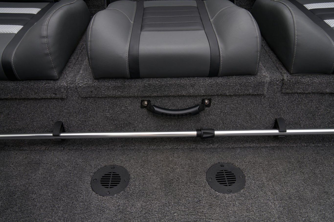 • Custom fitted marine upholstery- driver/passenger bucket seating w/ center fold down & two matching fishing seats