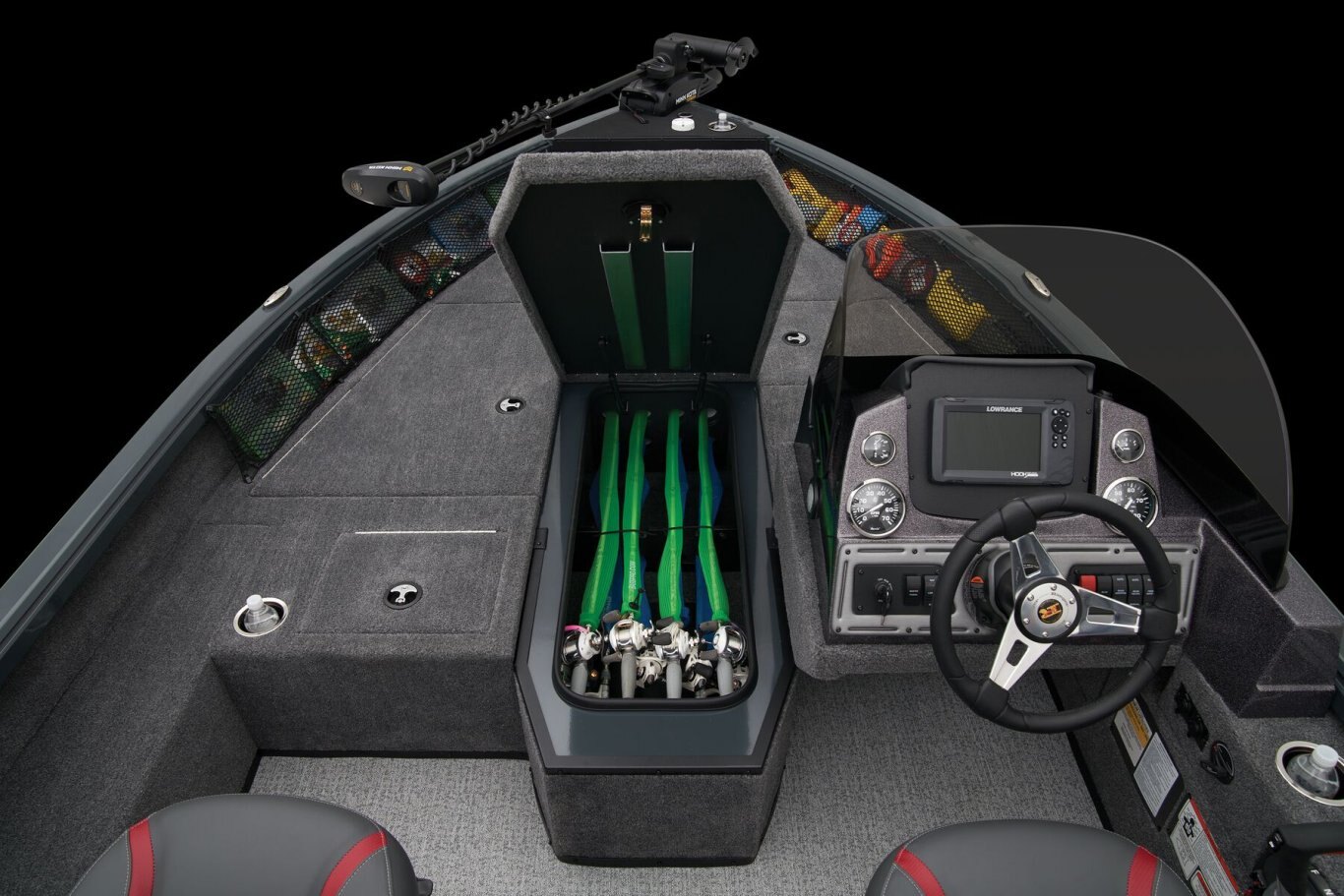 When you’re ready to venture farther and test the limits, the VS1782 SC Angler has everything you need. At 17’ 8”, this big-beamed warrior is equipped to take you, your buddies and all your gear deep into open water. With Ranger® quality and construction underneath you, you’ll be able to focus on finding and fighting fish. The 0.125-inch-thick aluminum hull is filled with foam throughout and combines with the wood-free robotically welded transom to offer an unmatched, solid feel with flotation levels that exceed standards set by the Coast Guard. Rugged vinyl flooring in the cockpit and marine-grade carpet up front are designed to remain functional and attractive for years. The layout of the VS1782 SC Angler was designed with comfort and fishability top of mind. A 12-gallon front baitwell and divided, aerated 29-gallon rear livewell are easily accessible while massive storage throughout ensures that you won’t have to leave anything behind.