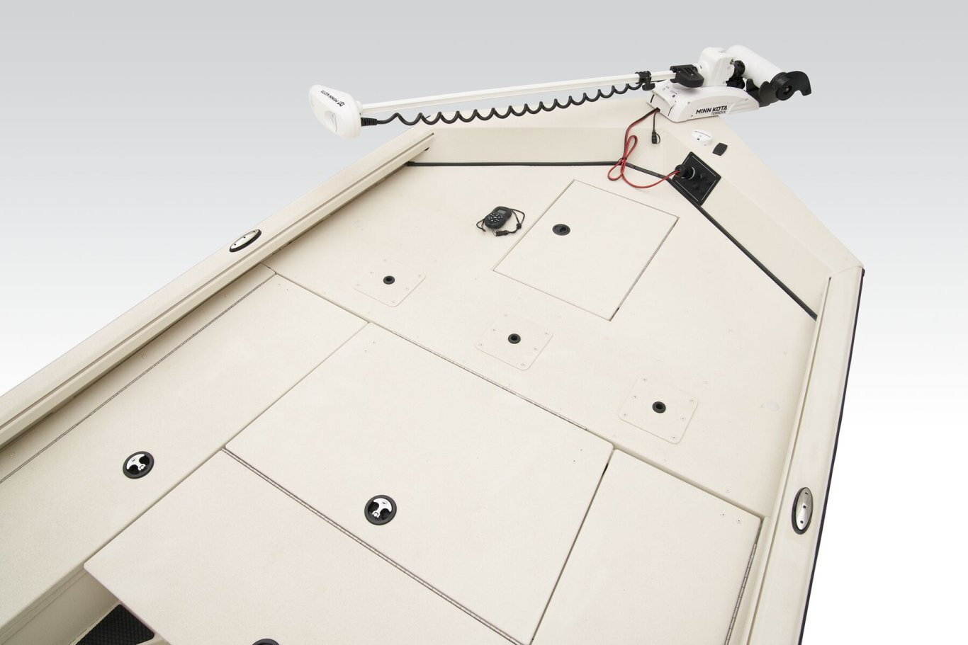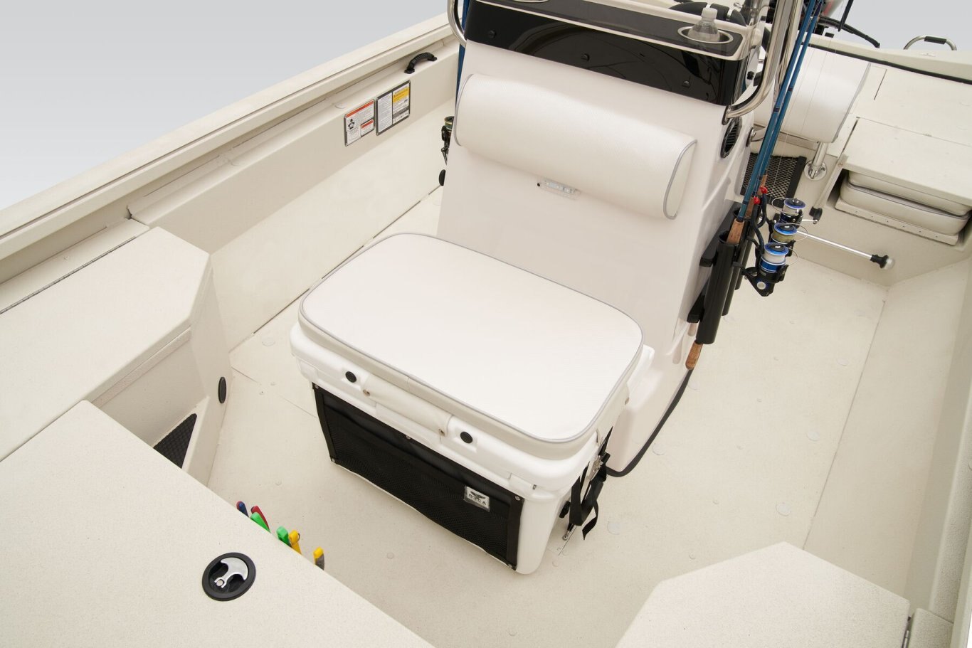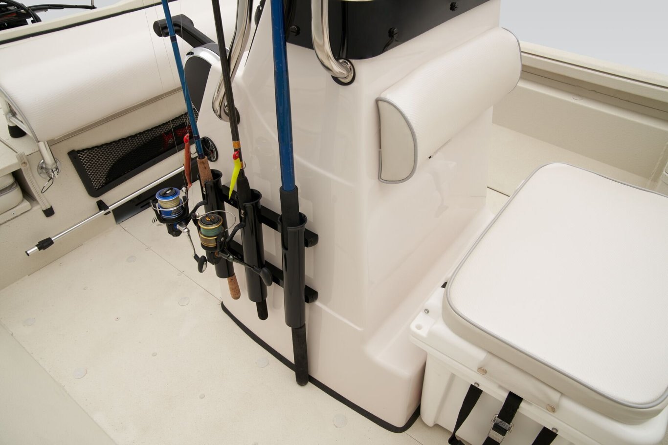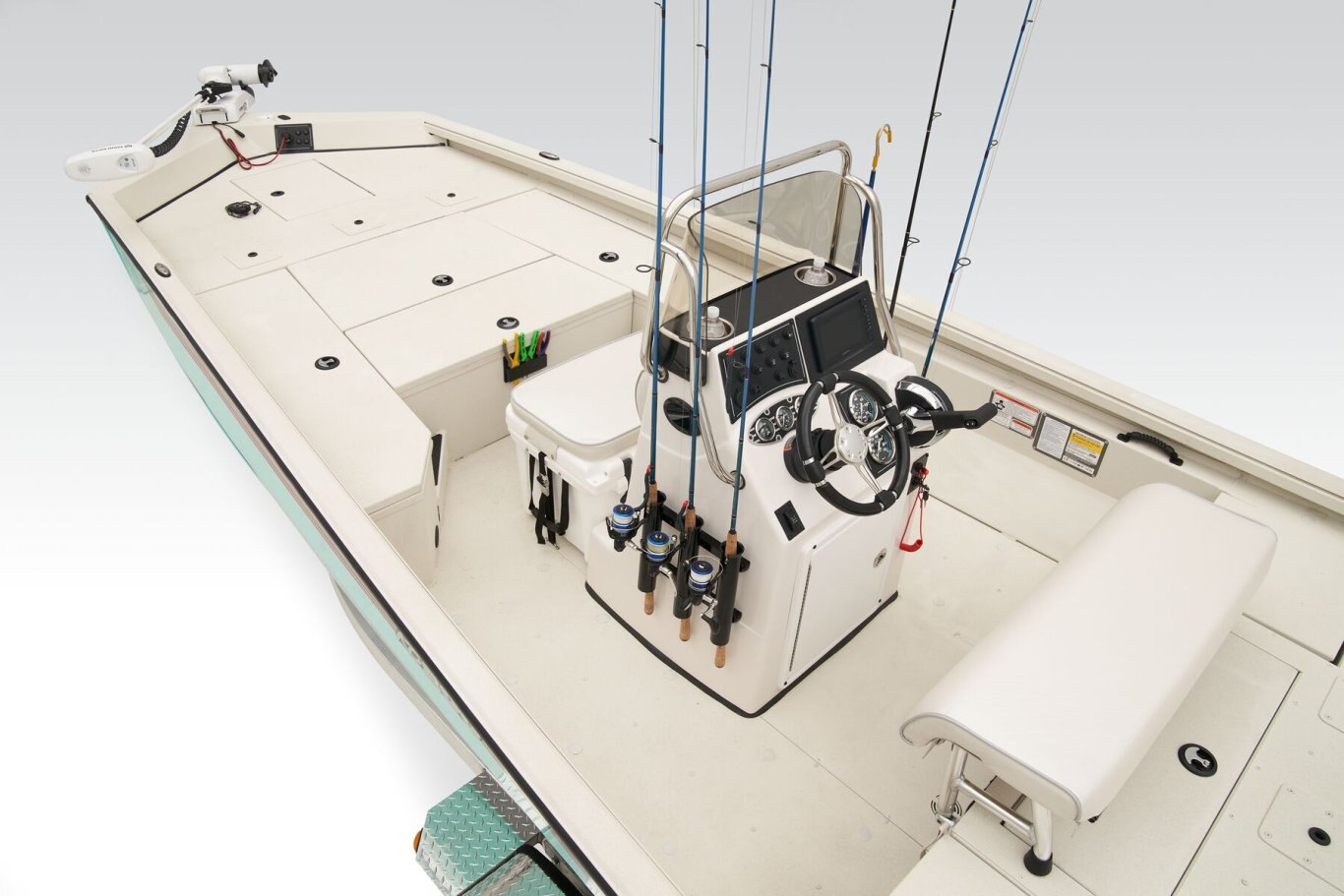 The RB200 packs more muscle in a bigger hull for greater performance, stability and capability to take you further than ever. The pad-bottom hull is designed for a dry ride that planes in a hurry, even in the shallows. The all-welded hull delivers strength in chop while precision steering and throttle control give you the ultimate in command. The wide, stable front casting deck delivers huge room for multiple anglers, and the interior is perfectly tailored for taking on inshore fisheries or a bass tournament with dual livewells and rod boxes, a huge in-deck storage and storage under the rear jump seats. At the helm, electronics up to 9" may be flush mounted and membrane-style switching delivers convenient simplicity. The ruggedized Ranger Trail® trailer is constructed with all-welded aluminum for the utmost in corrosion-resistant strength. Diamond plate fenders offer a step up and protection from road debris. A new camo version is more than just a paint scheme, this special rig features blacked-out badging, matte black closures and console railing, along with an all-black steering wheel for maximum concealment. No matter where your quarry swims, the enhanced capability of the RB200 is designed to Dominate Inshore and Nearshore.