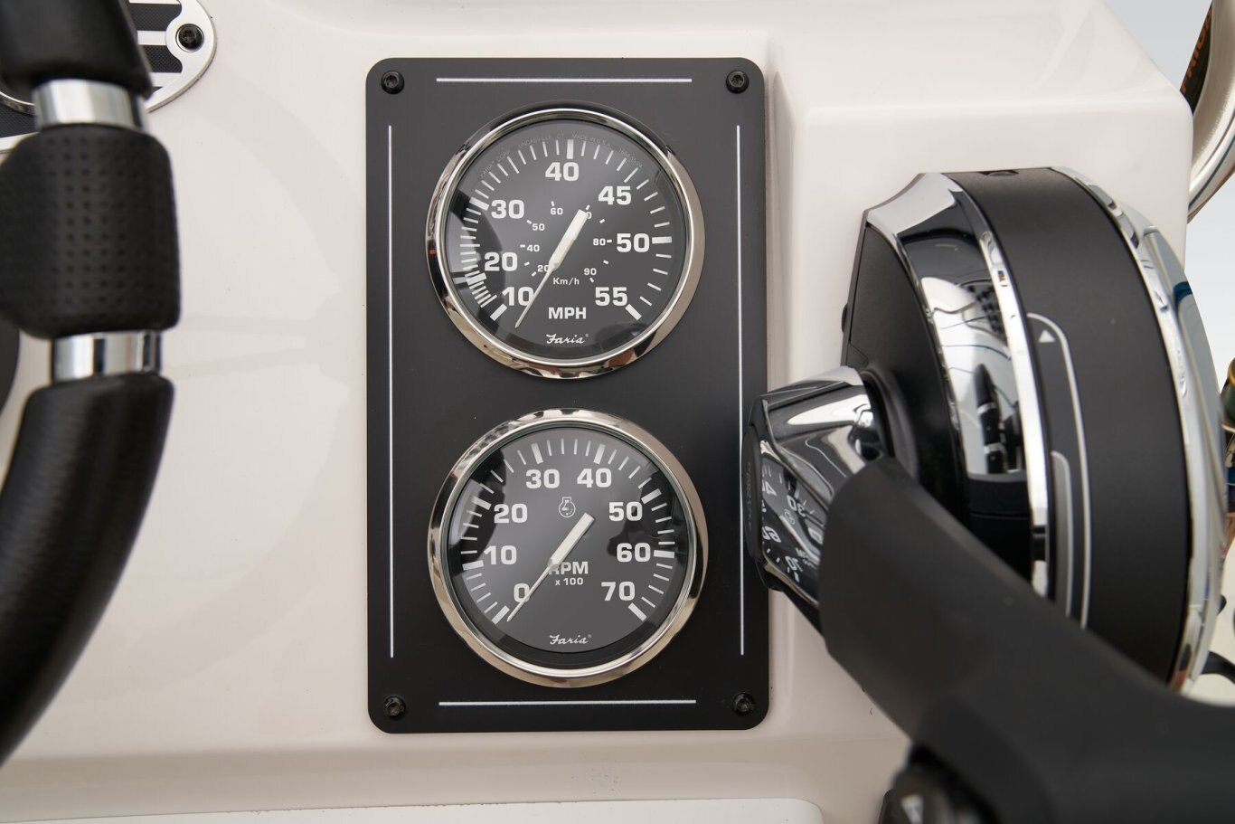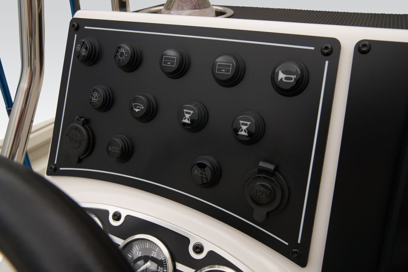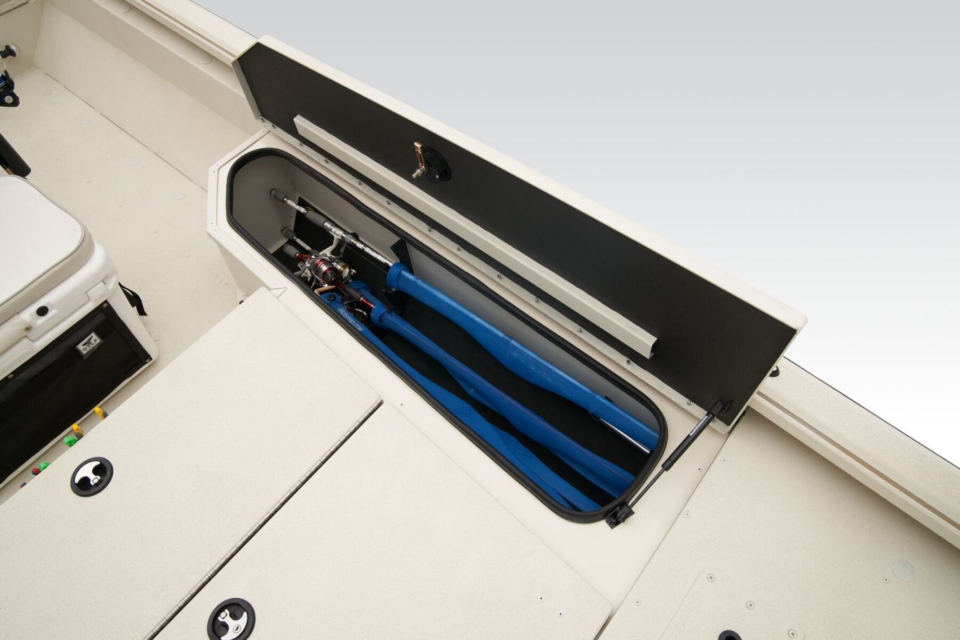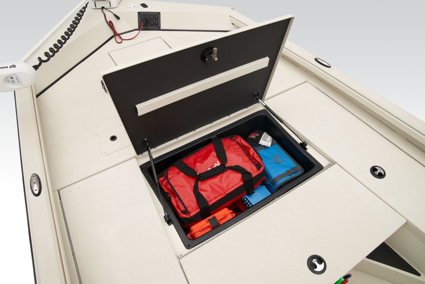 The RB200 packs more muscle in a bigger hull for greater performance, stability and capability to take you further than ever. The pad-bottom hull is designed for a dry ride that planes in a hurry, even in the shallows. The all-welded hull delivers strength in chop while precision steering and throttle control give you the ultimate in command. The wide, stable front casting deck delivers huge room for multiple anglers, and the interior is perfectly tailored for taking on inshore fisheries or a bass tournament with dual livewells and rod boxes, a huge in-deck storage and storage under the rear jump seats. At the helm, electronics up to 9" may be flush mounted and membrane-style switching delivers convenient simplicity. The ruggedized Ranger Trail® trailer is constructed with all-welded aluminum for the utmost in corrosion-resistant strength. Diamond plate fenders offer a step up and protection from road debris. A new camo version is more than just a paint scheme, this special rig features blacked-out badging, matte black closures and console railing, along with an all-black steering wheel for maximum concealment. No matter where your quarry swims, the enhanced capability of the RB200 is designed to Dominate Inshore and Nearshore.