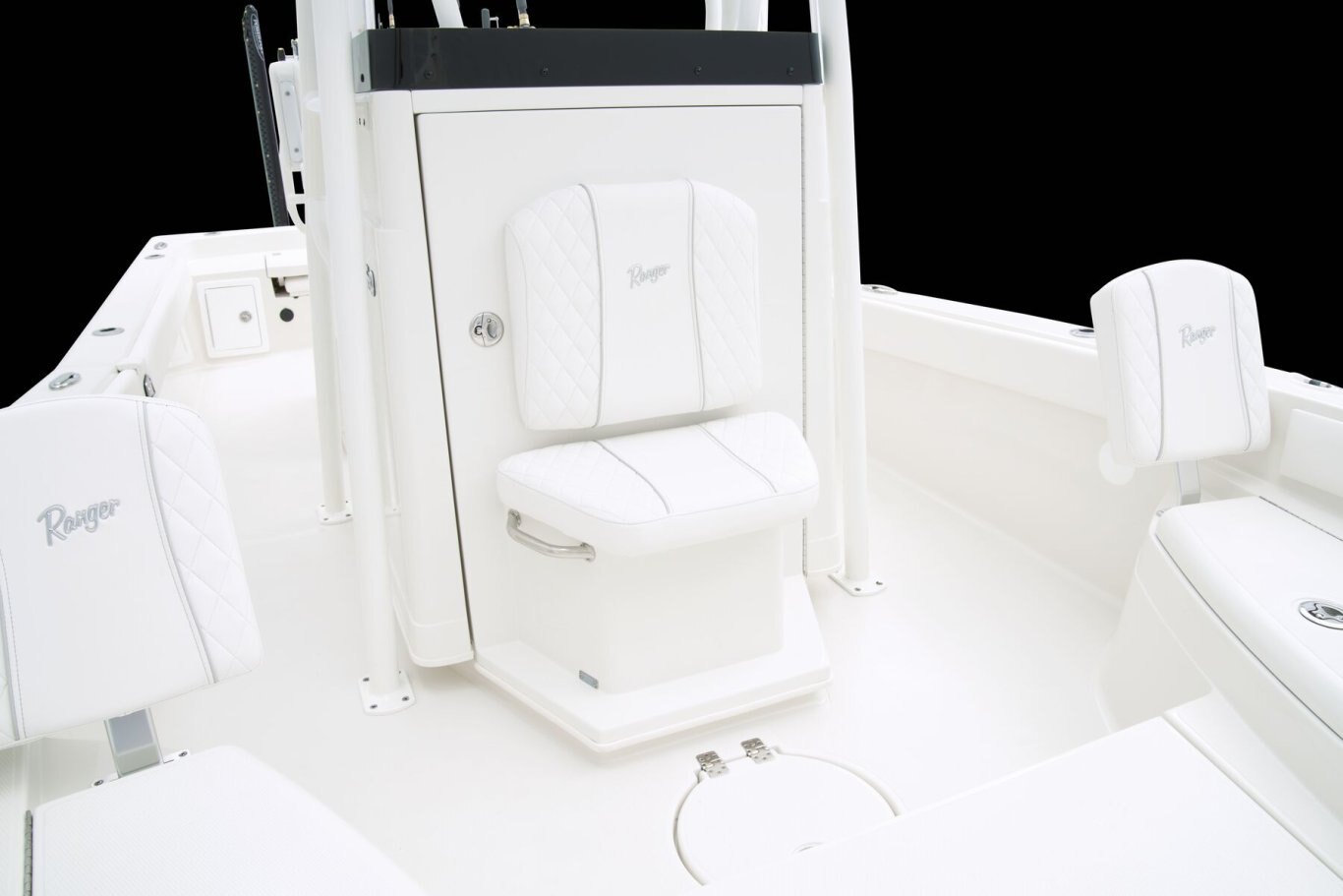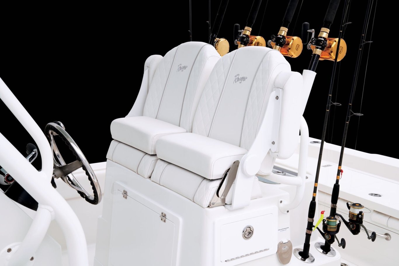 KEY FEATURES Twin jump seats in rear deck 97-gallon fuel capacity Flip-down bolstered cockpit seating for maximum versatility, visibility and comfort Ranger One-Piece Feel Interloc Construction® Fully foam-injected hull for buoyancy, insulation from vibration and rigidity