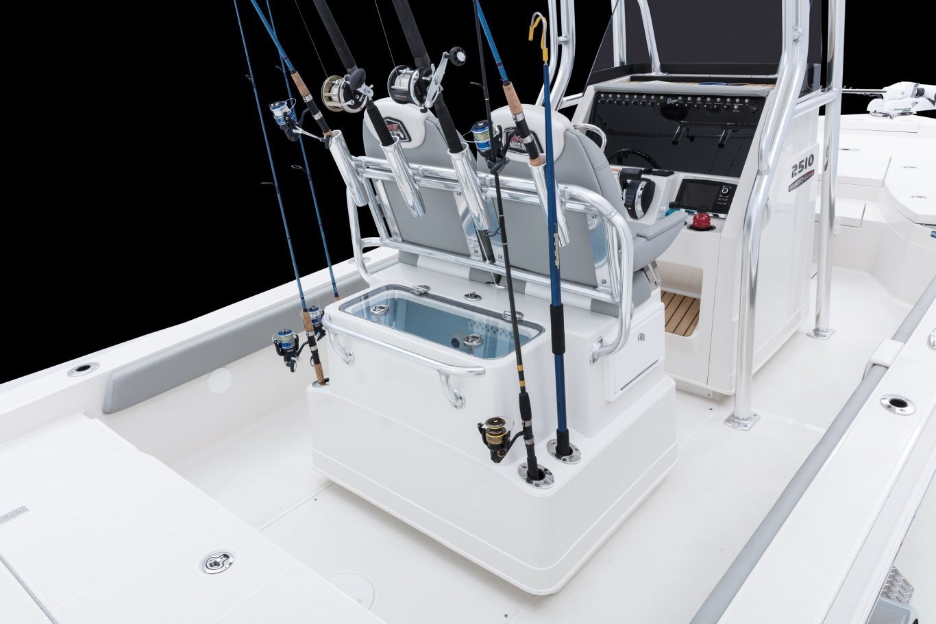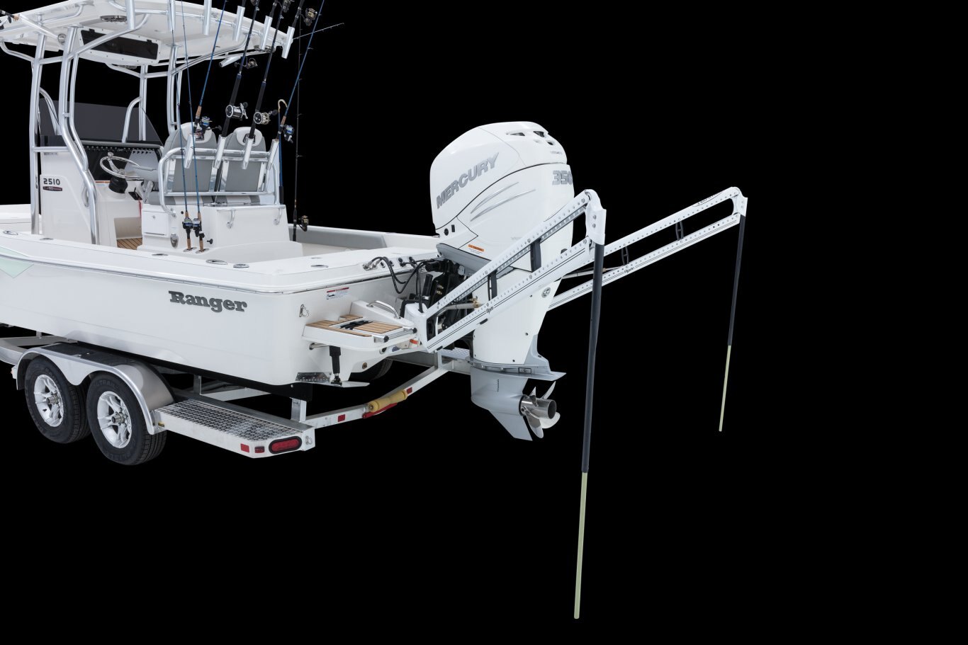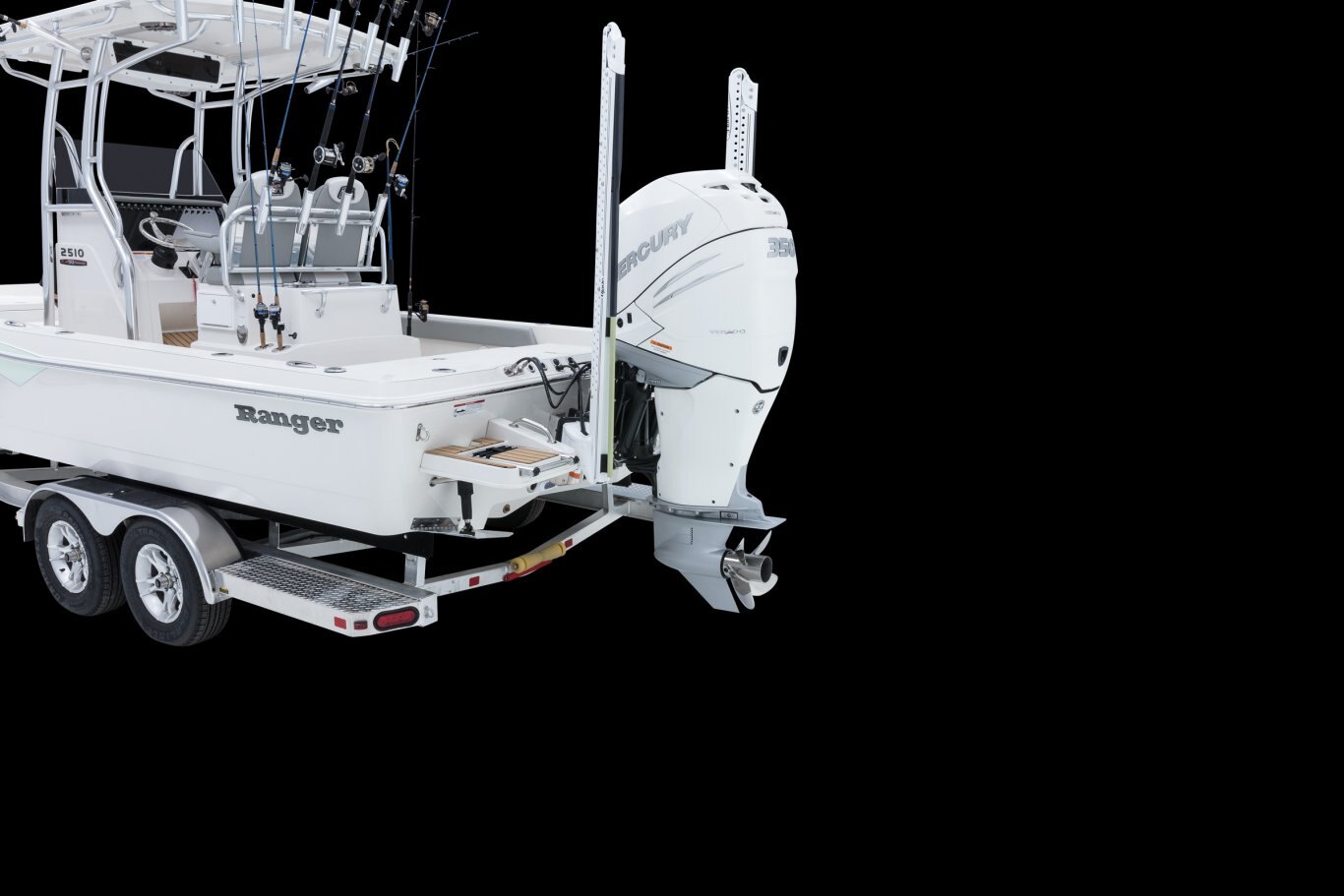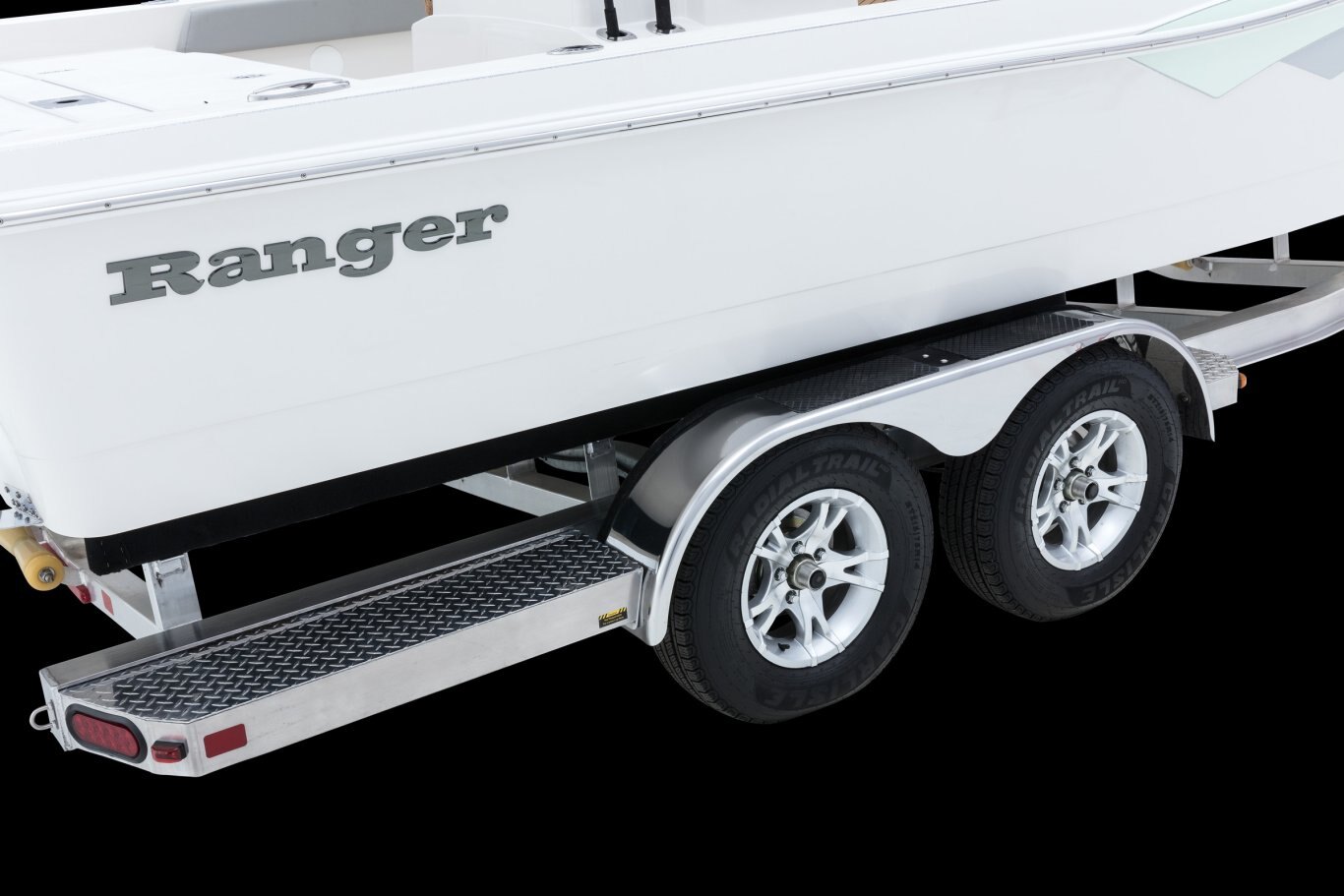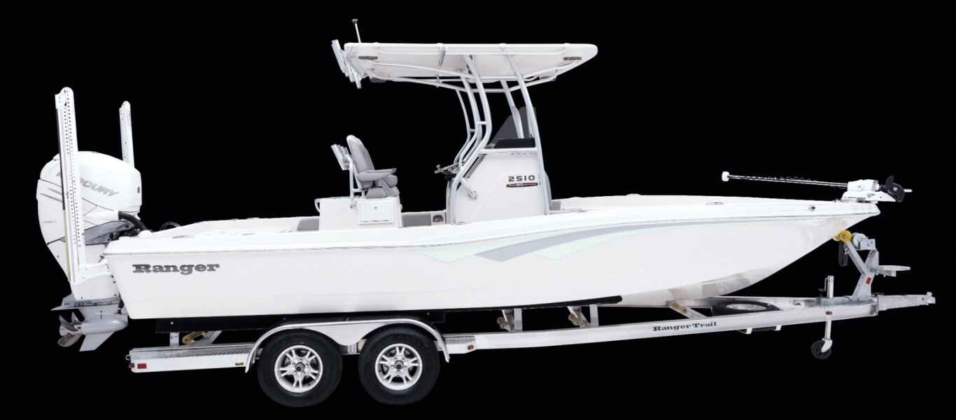 Whether you’re towing teasers over the big blue or taming hero snook in the backcountry, this is your go-to hybrid rig. Famous for its soft ride and recognizable Carolina flare, this platform isn’t just good looks. The 2510 comes standard with a stand-up 40-gallon livewell with 2,200 GPH aeration, a large storage console suitable for a Porta Potti, easy access to pumps, strainers and valves as well as all the comforts the family demands. A big fuel tank and 400-horse rating mean you can go farther, faster with economical performance. A wide-open layout hides storage everywhere, while delivering maximum stability and fishabilty. Standard with every 2510 is a dual-axle, aluminum-framed Ranger Trail® trailer that boasts sealed LED lights, four disc brakes, and a center swing jack for the utmost in security and storage options. When you’re ready to step up your game in a big bay boat, the Ranger 2510 will take you to the next level. |