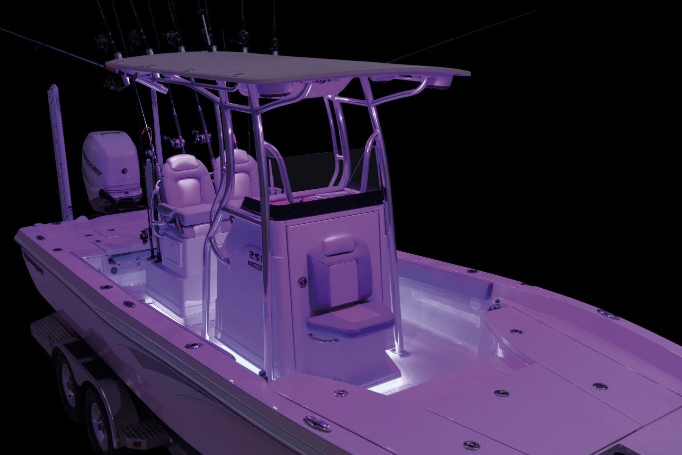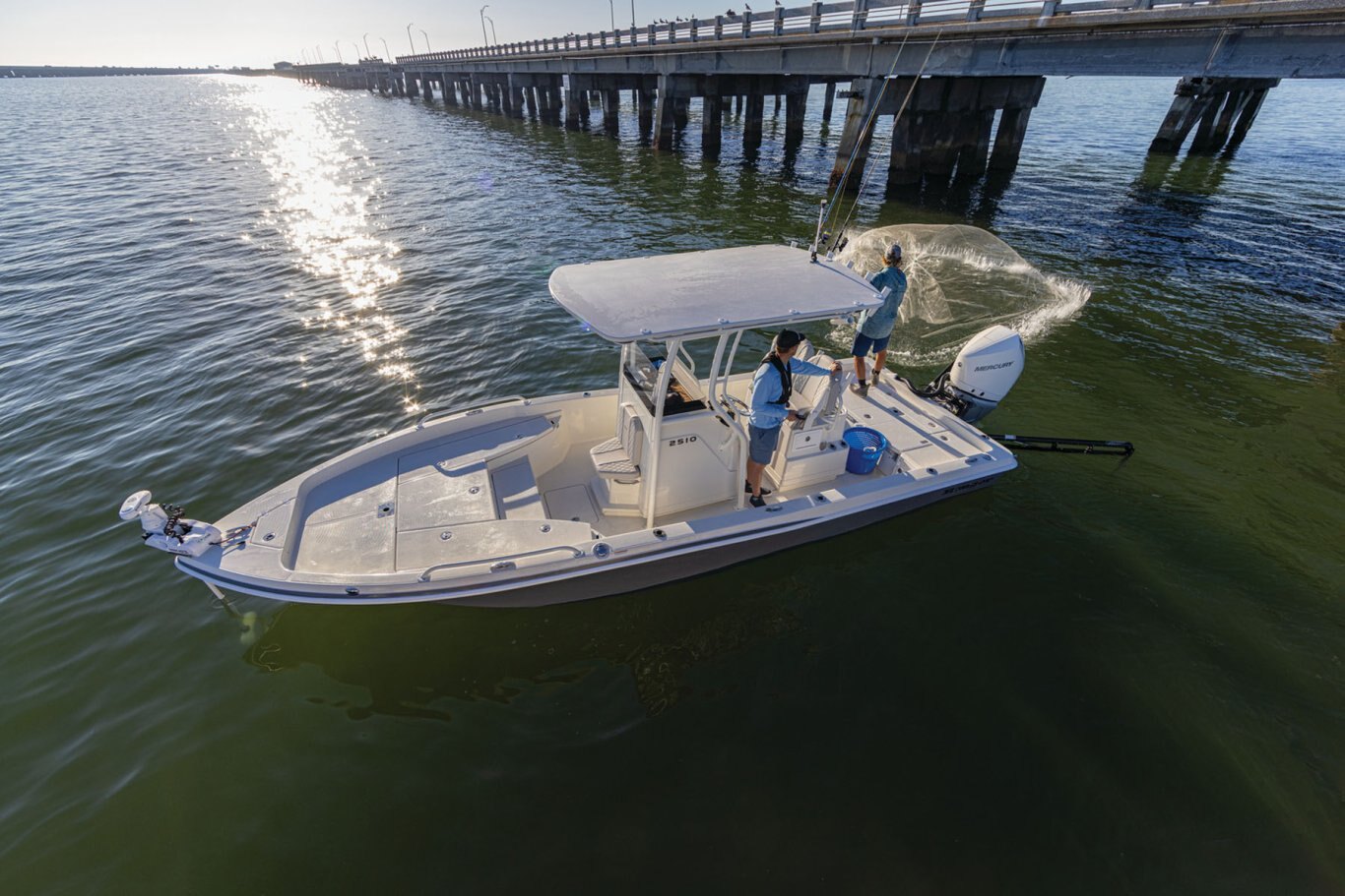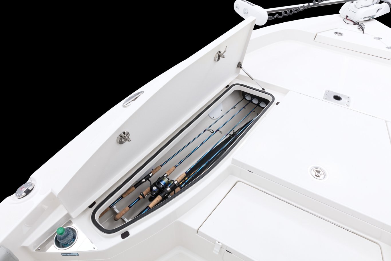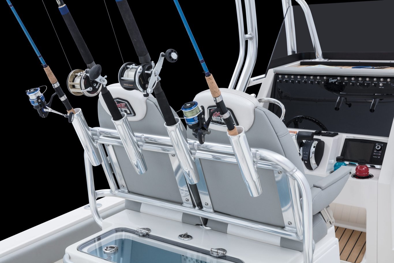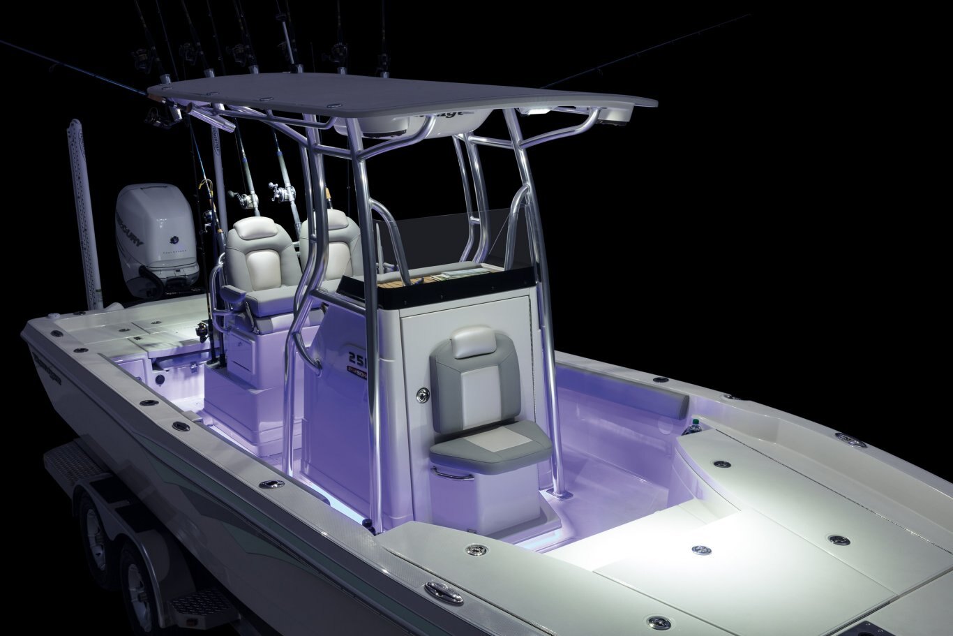 Whether you’re towing teasers over the big blue or taming hero snook in the backcountry, this is your go-to hybrid rig. Famous for its soft ride and recognizable Carolina flare, this platform isn’t just good looks. The 2510 comes standard with a stand-up 40-gallon livewell with 2,200 GPH aeration, a large storage console suitable for a Porta Potti, easy access to pumps, strainers and valves as well as all the comforts the family demands. A big fuel tank and 400-horse rating mean you can go farther, faster with economical performance. A wide-open layout hides storage everywhere, while delivering maximum stability and fishabilty. Standard with every 2510 is a dual-axle, aluminum-framed Ranger Trail® trailer that boasts sealed LED lights, four disc brakes, and a center swing jack for the utmost in security and storage options. When you’re ready to step up your game in a big bay boat, the Ranger 2510 will take you to the next level. |