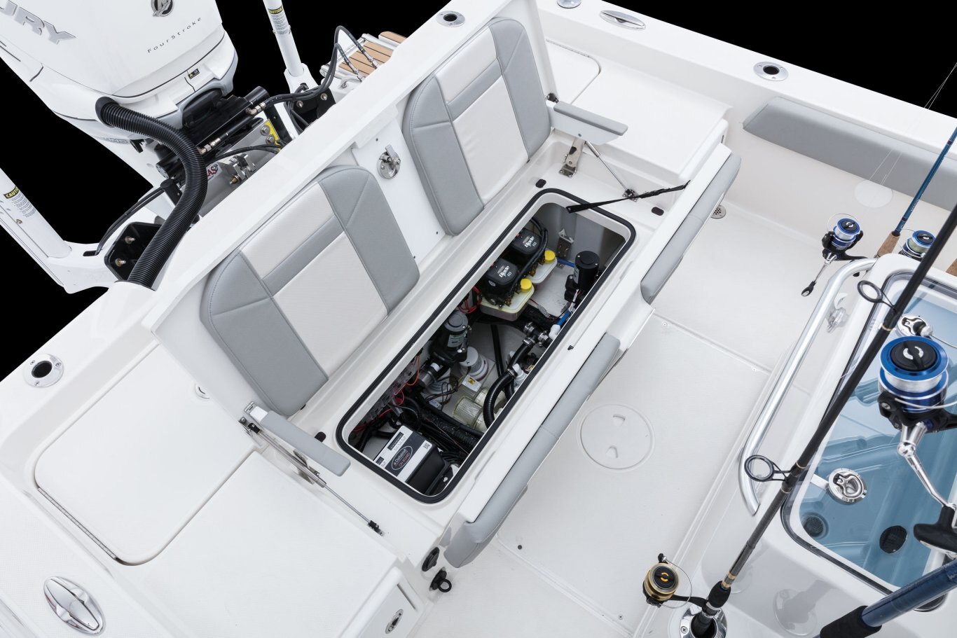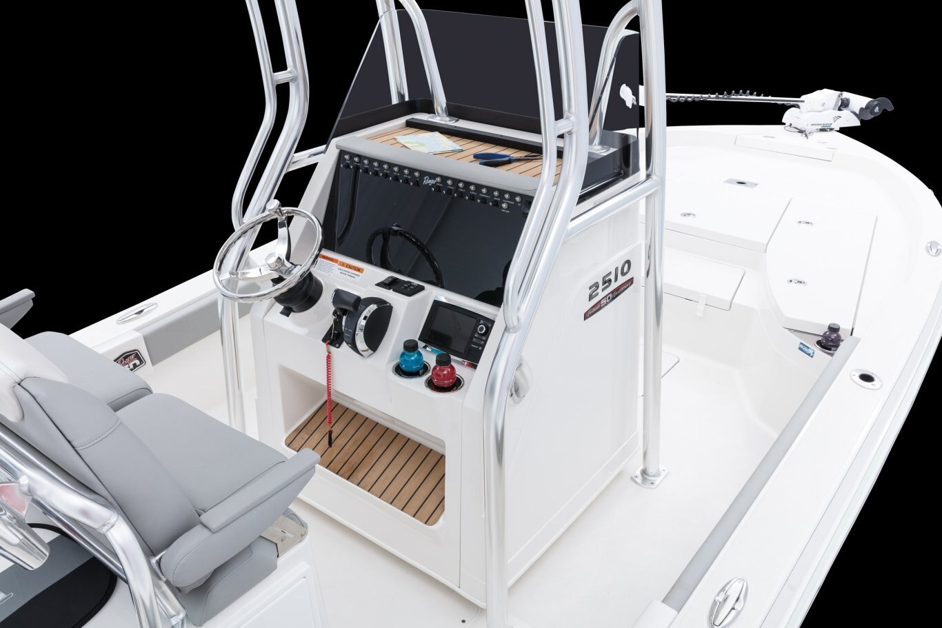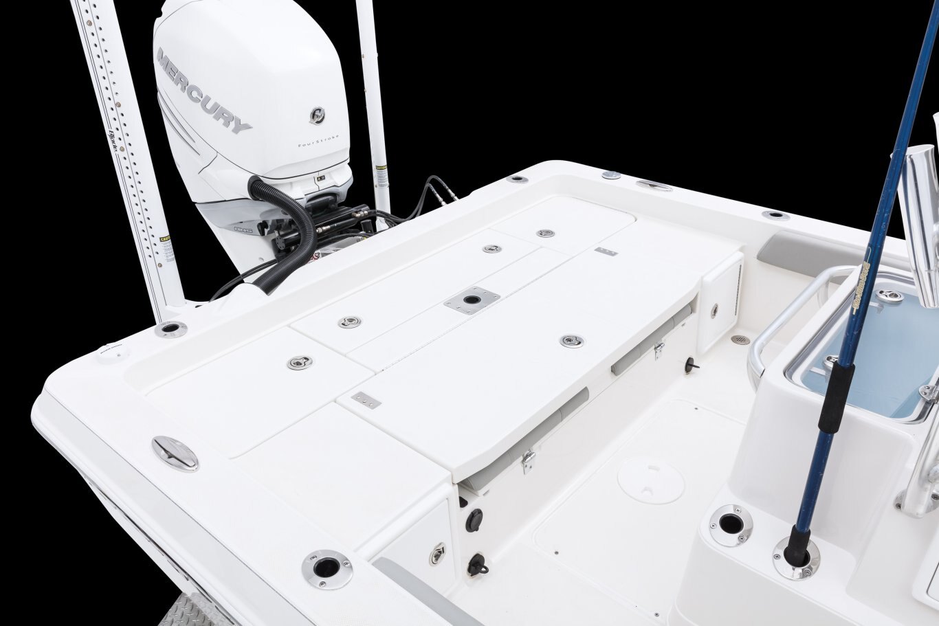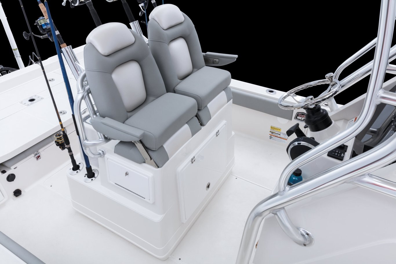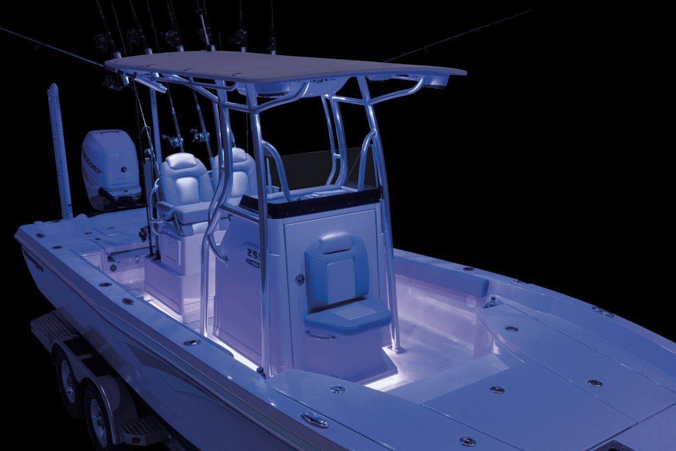Whether you’re towing teasers over the big blue or taming hero snook in the backcountry, this is your go-to hybrid rig. Famous for its soft ride and recognizable Carolina flare, this platform isn’t just good looks. The 2510 comes standard with a stand-up 40-gallon livewell with 2,200 GPH aeration, a large storage console suitable for a Porta Potti, easy access to pumps, strainers and valves as well as all the comforts the family demands. A big fuel tank and 400-horse rating mean you can go farther, faster with economical performance. A wide-open layout hides storage everywhere, while delivering maximum stability and fishabilty. Standard with every 2510 is a dual-axle, aluminum-framed Ranger Trail® trailer that boasts sealed LED lights, four disc brakes, and a center swing jack for the utmost in security and storage options. When you’re ready to step up your game in a big bay boat, the Ranger 2510 will take you to the next level. |