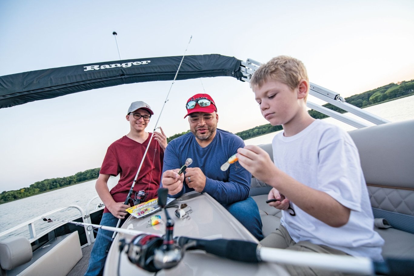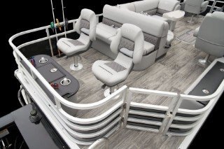 The largest Fish Series Ranger® Reata® pontoon is designed to get you in touch with fish as well as your family. A fish-and-play design and loads of storage let you go toe-to-fin with the species of your preference. A large L-lounge, color-matched Bimini top and supremely padded seats deliver incredible comfort when you’re out to catch some new memories. Fore and aft fishing stations feature rod holders and integrated tool and drink holders while a starboard rod locker holds sticks up to 7 feet, 6 inches in length. The 223 F delivers the space, features and comfort that will leave you looking for a reason to reel ’em in and chill out.