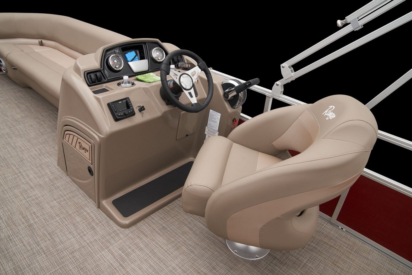 HELM 12V outlet 4:2 ratio no-feedback steering for responsive, easy turning Adjustable helm bucket seat w/ swivel AM/FM Bluetooth®-capable stereo w/ 4 directional speakers Below-console cooler/storage space Built-in footrest w/ non-skid pad Deluxe soft-touch sport steering wheel Drink holders Ergonomically positioned Mercury® binnacle control box w/ trim Illuminated tachometer, trim & fuel gauges Lighted rocker switches Small items tray Sport console shroud