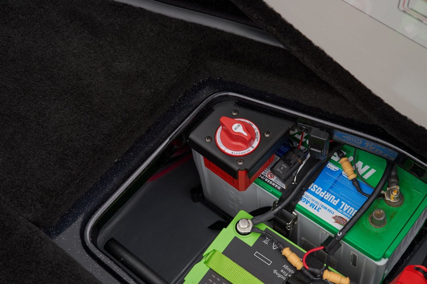 Electronics Built to be Yours™ - Available with a wide array of custom-matched trolling motors, electronics, and accessories Mercury SmartCraft MercMonitor gauge package Push-Button solid-state digital switching Keyed ignition Solid-state digital keypad at bow with push-button trim switches Ranger® Umbilical™ dedicated bow-to-stern 6-gauge electronics wiring harness w/ 30A breaker Heavy Duty 6-gauge trolling motor wiring harness w/ 60A breaker Master Power on/off battery disconnect switch NOCO™ GB40 jump starter w/ on-board USB charging LED storage compartment lighting & LED courtesy & livewell lighting Integrated LED bow navigation lights & removable LED anchor light Lowrance® Elite FS™ 9 w/ Active Imaging™ HD at console