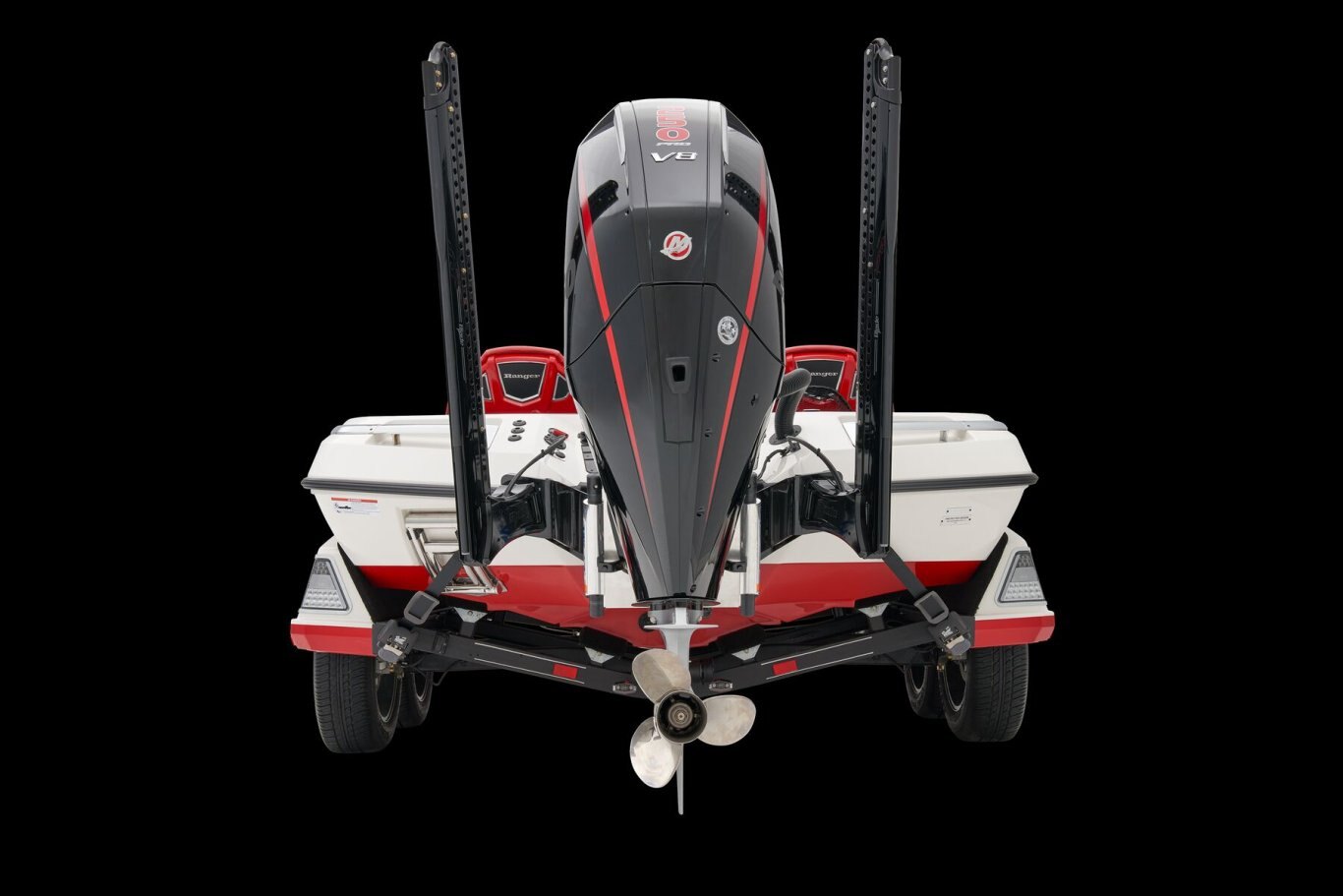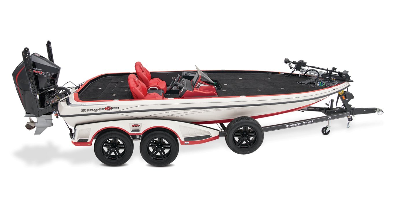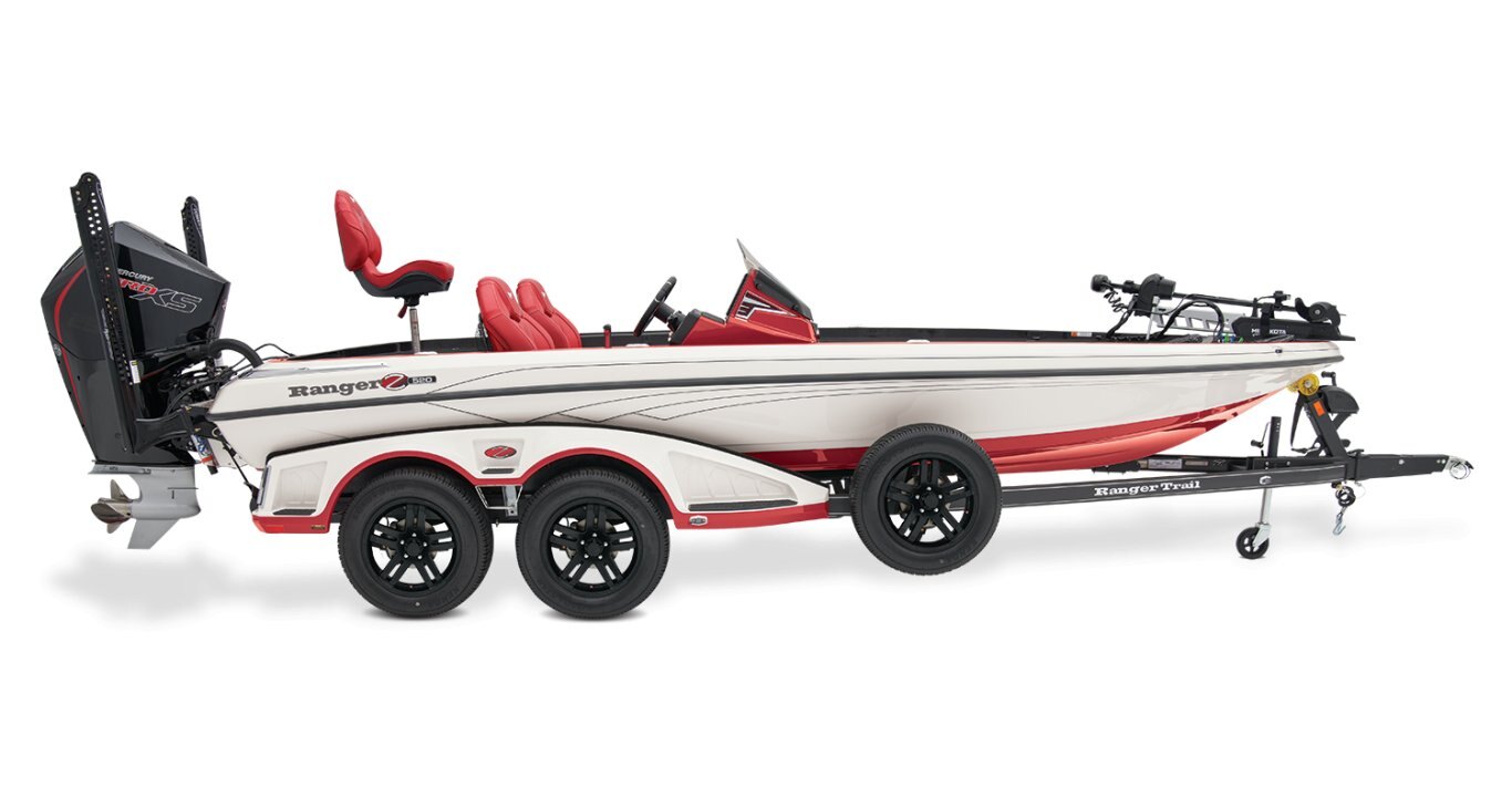 Trailer Features Ranger® Boats Road Armor Equipped® trailer protectant coating Ranger Trail® Vault® Hub lubrication system Fiberglass fenders w/ step pads Hydraulic surge disc brakes Swing-away tongue Integrated center-swing jack finished in black powdercoat Stainless steel ratcheting tie-downs LED lighting LED back-up lights NMMA®/NATM certified