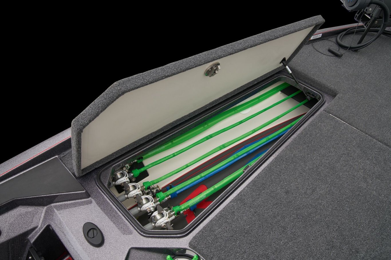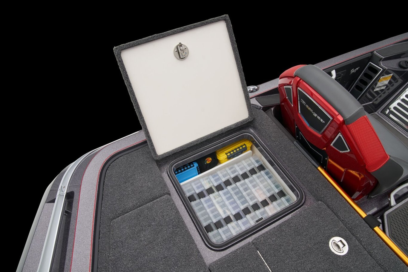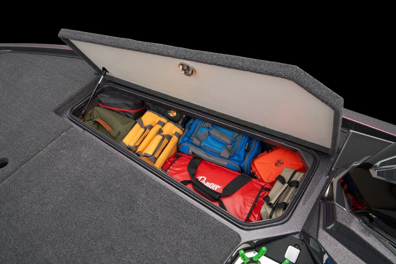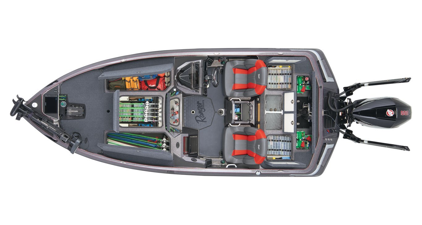 NECK-SNAPPING PERFORMANCE, HEAD-TURNING STYLEAll new for 2025 is the Ranger Z519R, the latest in Ranger’s premium R Series lineup. Brimming with top-tier features, the Z519R has the fishability and all-around performance you’ve come to expect from Ranger with added touches to set you off on the water and at the ramp. Our proprietary Echelon™ rod storage system keeps loads of sticks secure and handy, while reducing hassle when fetching one. A padded front deck is adorned with push-to-close latches that eliminate tripping hazards associated with twist-to-close latches, and color-matched cockpit liner and compartments liners add classy functionality. Analog switching makes for easy adjustments on the fly, and an insulated 40-quart center step cooler holds more than a day’s worth of drinks. The Ranger touchscreen multifunction System Monitor puts engine parameters at your fingertips, while smooth, responsive steering gives effortless control of 225 horses in the Mercury® FourStroke V8. A refined running surface delivers on-rails handling at speed as well as unbeatable edge-to-edge stability on the trolling motor. A vast front deck gives ample space for two, and a world of storage underfoot. The Z519R is the latest in a long line of premium bassin’ rigs that stem from our unwavering Passion for Perfection™. |
