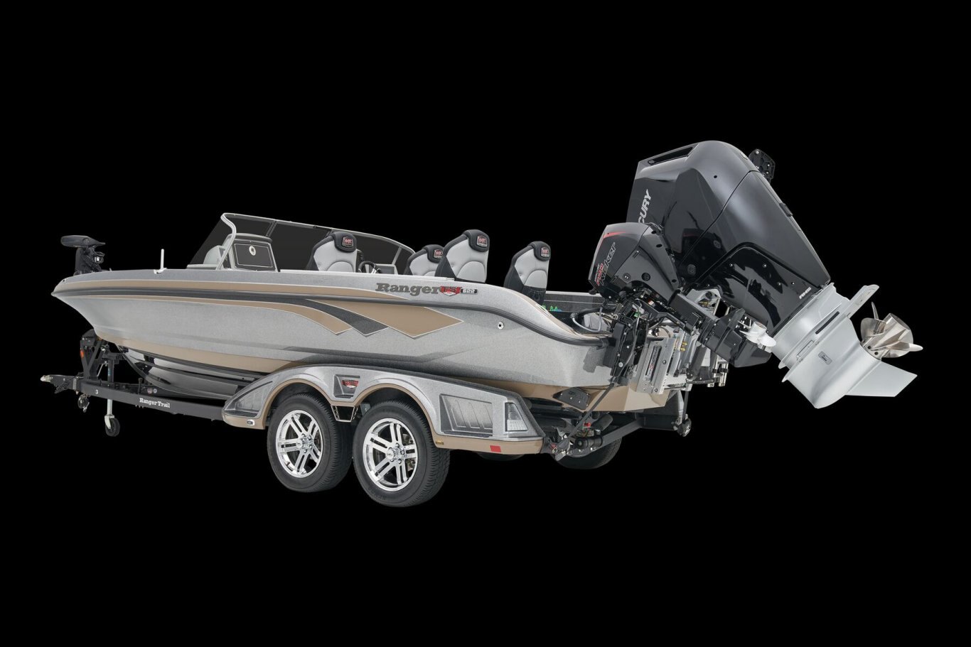 TITAN SIZE, GENIUS BRAINS, HERCULEAN STRENGTHThe 622FS PRO has proven itself as the gold standard of all-out dominating big water machines. Everything about the 622 FS PRO is made with more: More strength, more power, and more capability. The 22’ 10” hull spans larger swells and with up to 400 horses of motivation, it powers through rollers with ease. The monster front deck is the largest we’ve ever featured on a Deep V, and its size continues underneath, where you can stow a cache of rods up to 9’ with a wealth of tackle and gear. The cockpit is equally massive and offers storage for dozens of tackle boxes, more rods, and your winning stringer in the oversized livewell. A standard Ranger RIDE system keeps tabs on your outboard as well as gives you control of every major boat function—all in one 8” touchscreen. The consoles feature a premium stitched finish for a high-class automotive feel that match the brushed aluminum speaker grilles and handles and the shock-absorbing SRS Soft Ride™ seating. In the centerline battery box are three lithium batteries, an access panel to your pump and a four-bank charger. Rounding out the 622FS PRO is a beefy Ranger Trail™ trailer with four hydraulic disc brakes, our timeless Road Armor Equipped™ coating, LED lighting for brilliant safety, and a custom-matched fit that’ll cradle it for years and miles. Get into the burliest big water beast and get more out of your time on the water. |