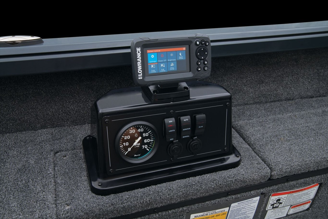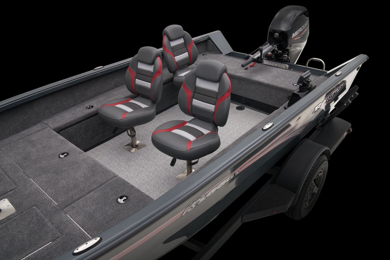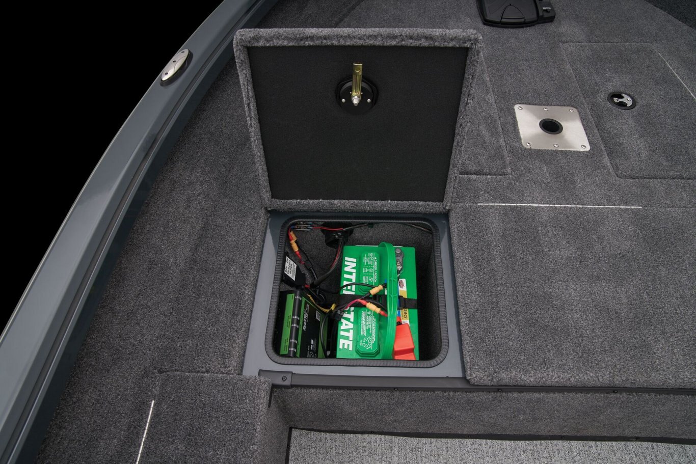 A wide-open cockpit with movable seating gives space for tending trolling lines while the front deck is ideal for casting. The timed and aerated livewell is at the rear of the deck adjacent trolling motor battery storage. Twin lockable 8' 6" rod boxes flank the cockpit, which is highlighted by a fiberglass gauge pod that houses a tach, twin USB ports and a 12V outlet, rocker switching and keyed ignition. Behind the driver's seat is a folding casting deck that hides up to two 6-gallon fuel tanks with the cranking battery. Every element of the VS1665 T combines to make One Thriller of a Tiller. |