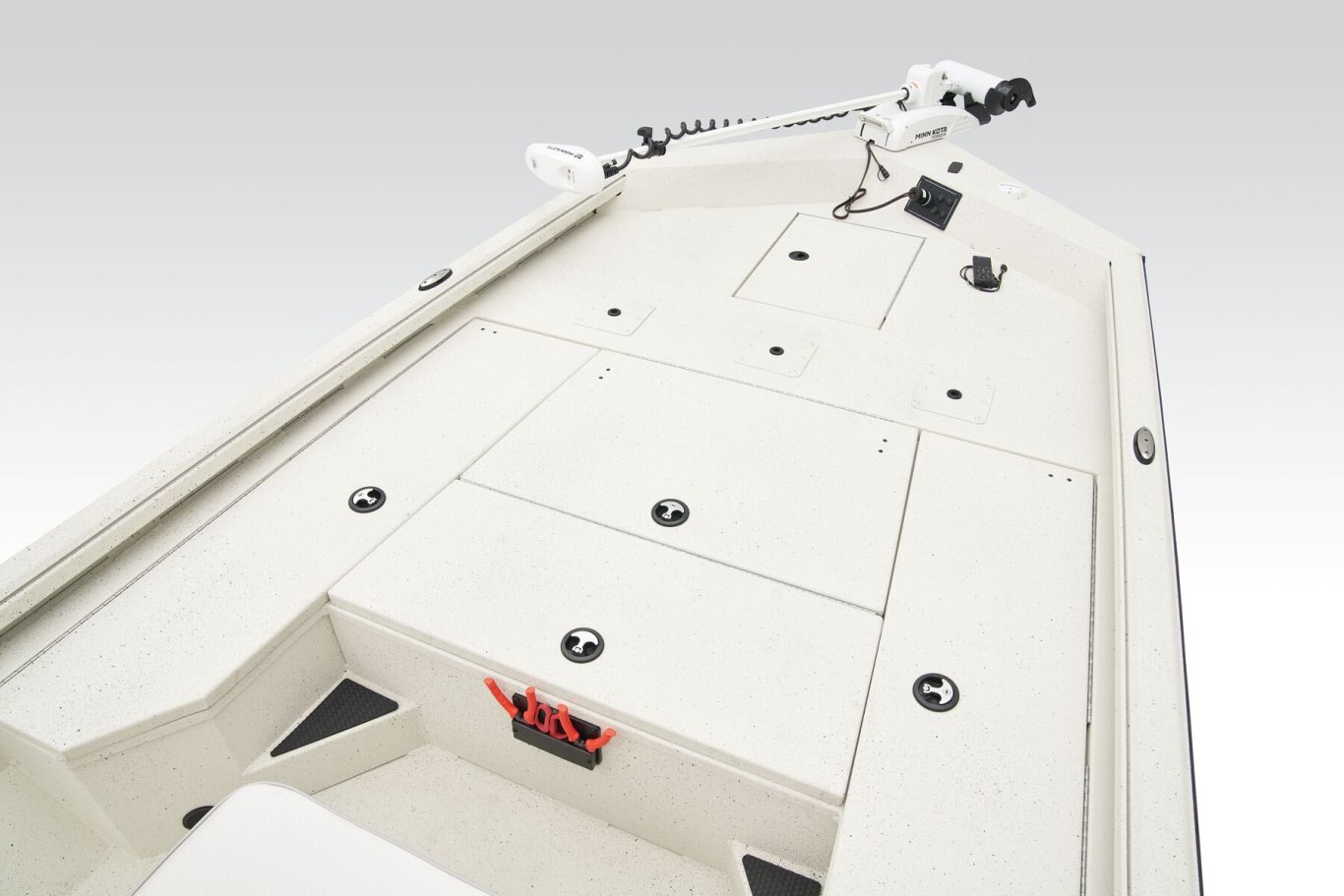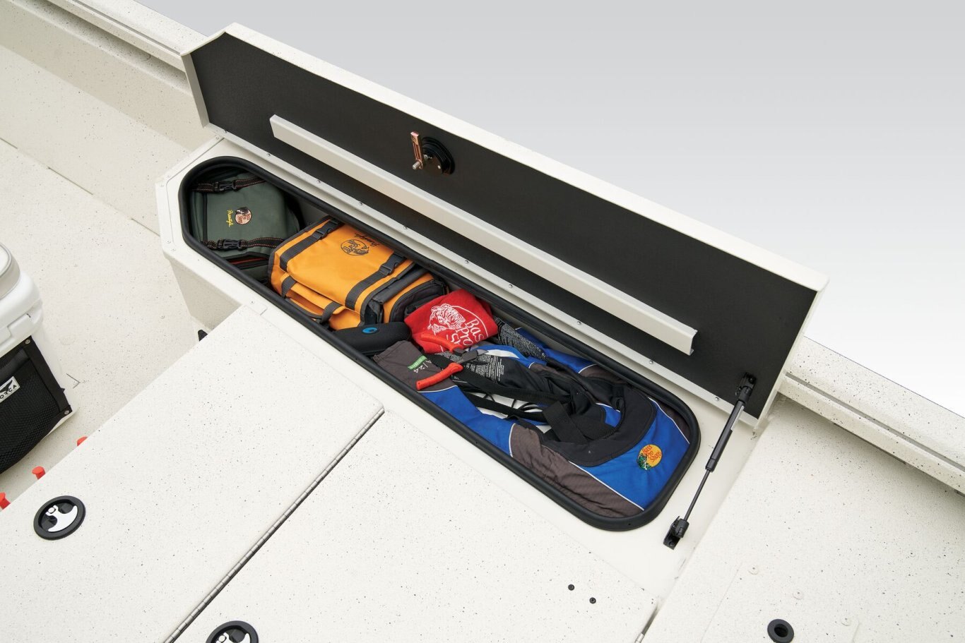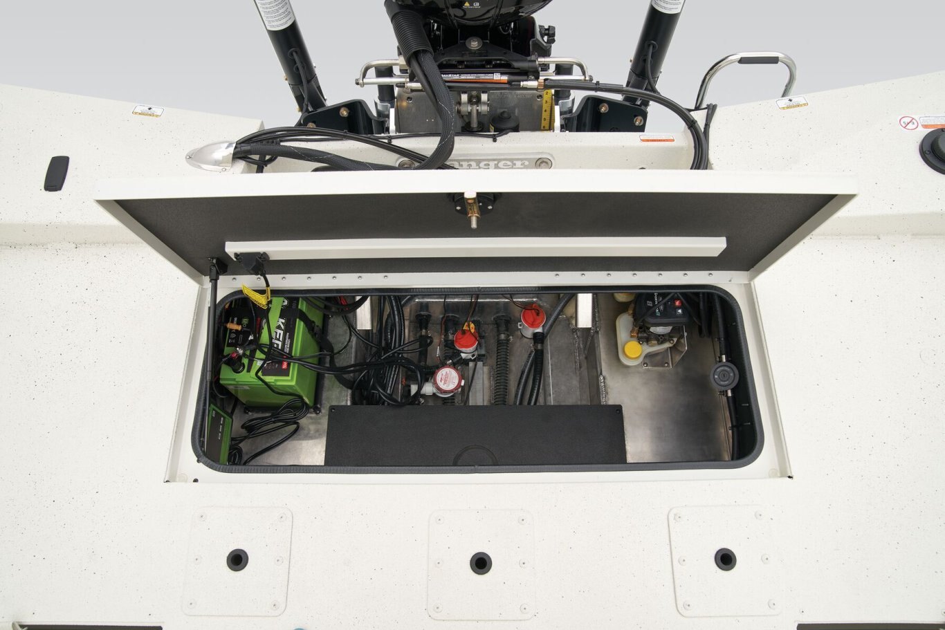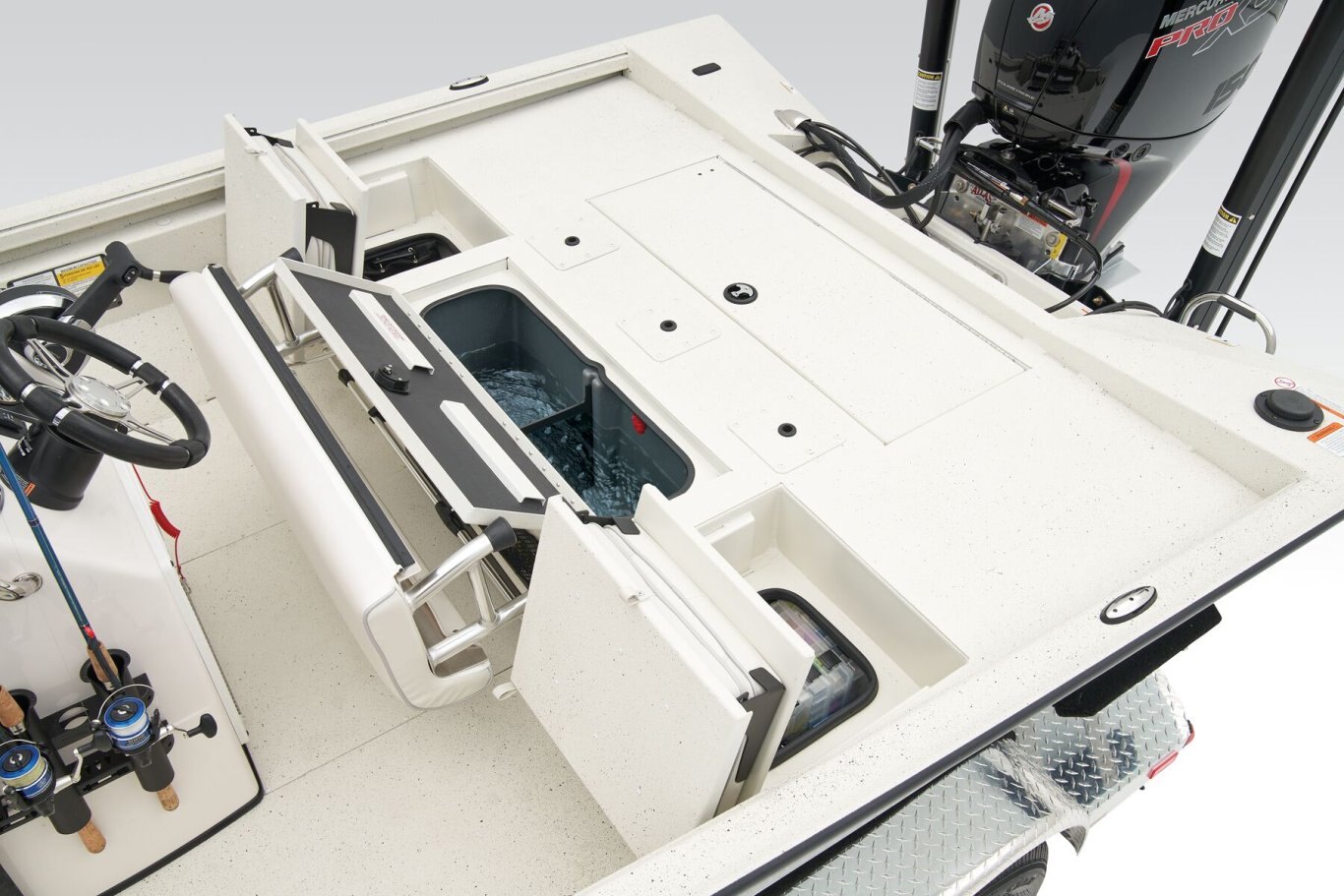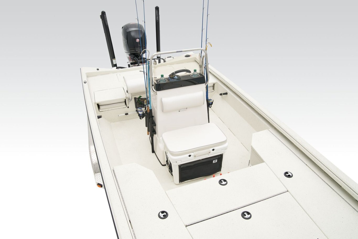 The RB200 packs more muscle in a bigger hull for greater performance, stability and capability to take you further—and deeper—than ever. The pad-bottom hull is designed for a dry ride that planes in a hurry, even in the shallows. The all-welded hull delivers strength in chop while precision steering and throttle control give you the ultimate in command. The wide, stable front casting deck delivers room for multiple anglers, and the interior is perfectly tailored for taking on inshore fisheries or a bass tournament with dual livewells and rod boxes, a huge lockable tackle stow, and extra storage under the rear jump seats. Inside the hull, the RB200 benefits from our patented pultruded fiberglass reinforcing in high-stress areas. This “superglass” is made by taking multiple types of fiberglasses, heating them and pulling them through a die to create a one-of-a-kind stronger-than-steel fiberglass that’s found only in Ranger boats.