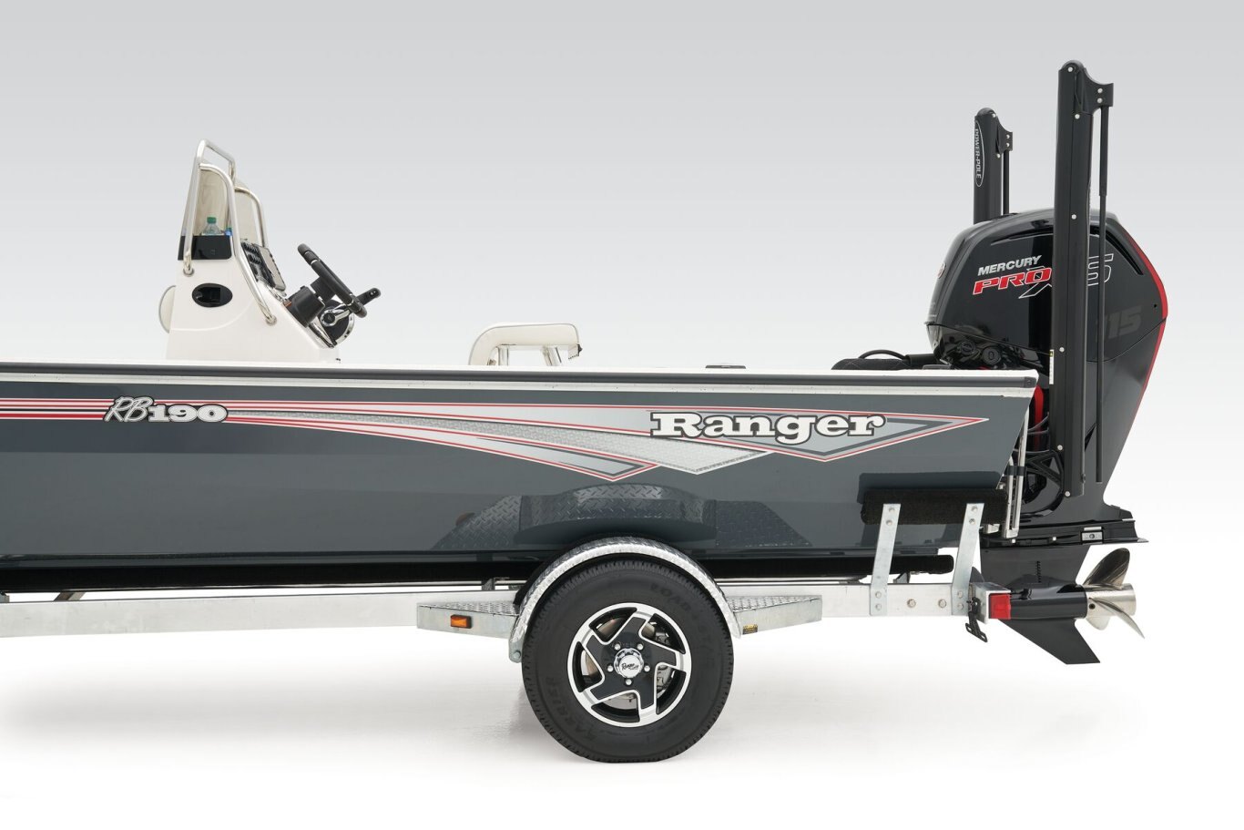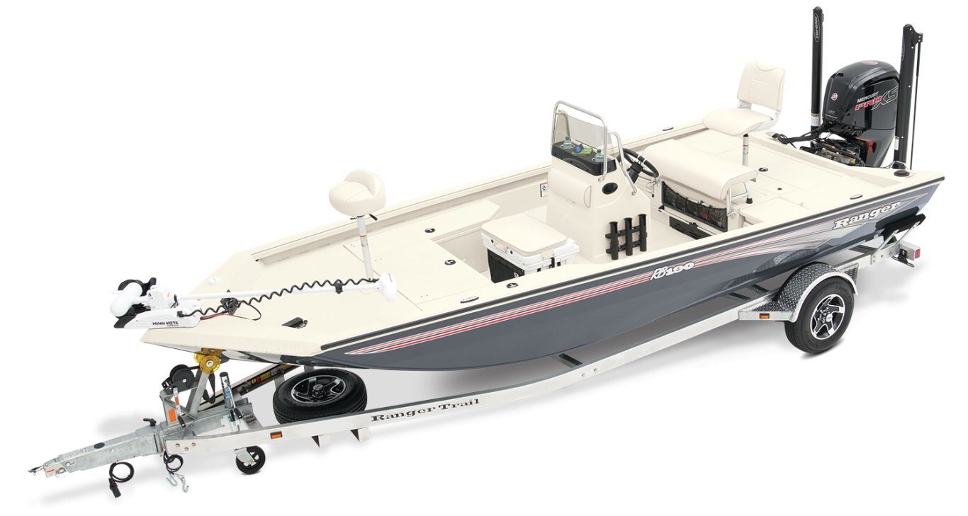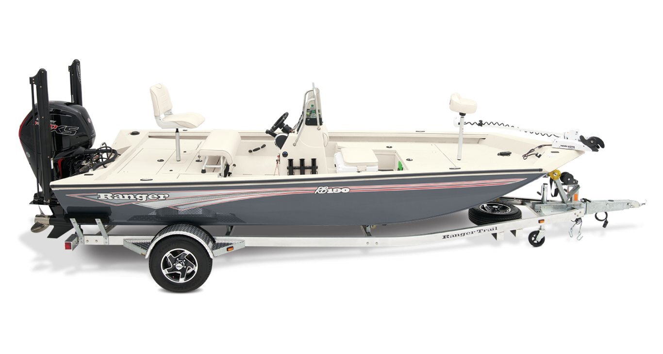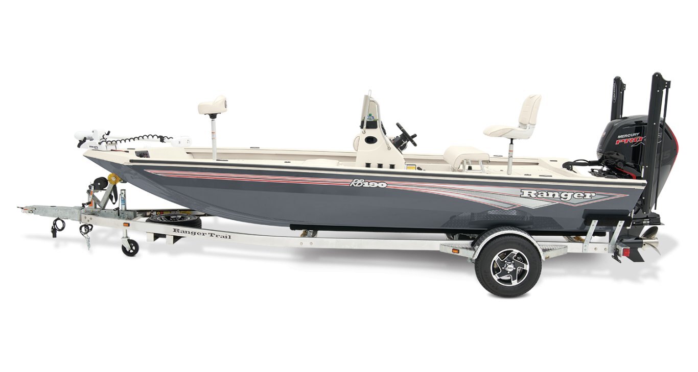 Built for bayous, bays and backwaters, the Ranger® RB190 is a shallow-drafting workhorse that’s ready to take on inshore species with saltwater-savvy touches from the all-aluminum trailer to the grippy, easy-to-clean Rawhide™ interior coating (or optional SeaDek®) and pad-bottom hull for a smooth ride and responsive handling. Dual rear jump seats add deck space when down or seating when up and a padded driver’s leaning post flips down to expose a livewell that’ll accommodate tournament-size reds or a mess of trout. The wide, stable, and shallow-drafting design complements the 115-horsepower rating and slices through chop with nimble and economical performance while BayStar® hydraulic steering keeps you confidently in command. The fiberglass console holds a full set of gauges, including the Ranger RIDE™ system that keeps critical outboard and boat functions and information at your fingertips. Inside, the RB190 features our signature foam flotation and proprietary pultruded fiberglass material in high-stress areas, delivering strength greater pound-for-pound strength than steel, and amazing screw retention. Huge gear storages, new color schemes, twin 8-foot rod boxes and integrated cup and tool holders accentuate the angler-friendly layout and make days on the water easy in this lake, bay and backwater master. |