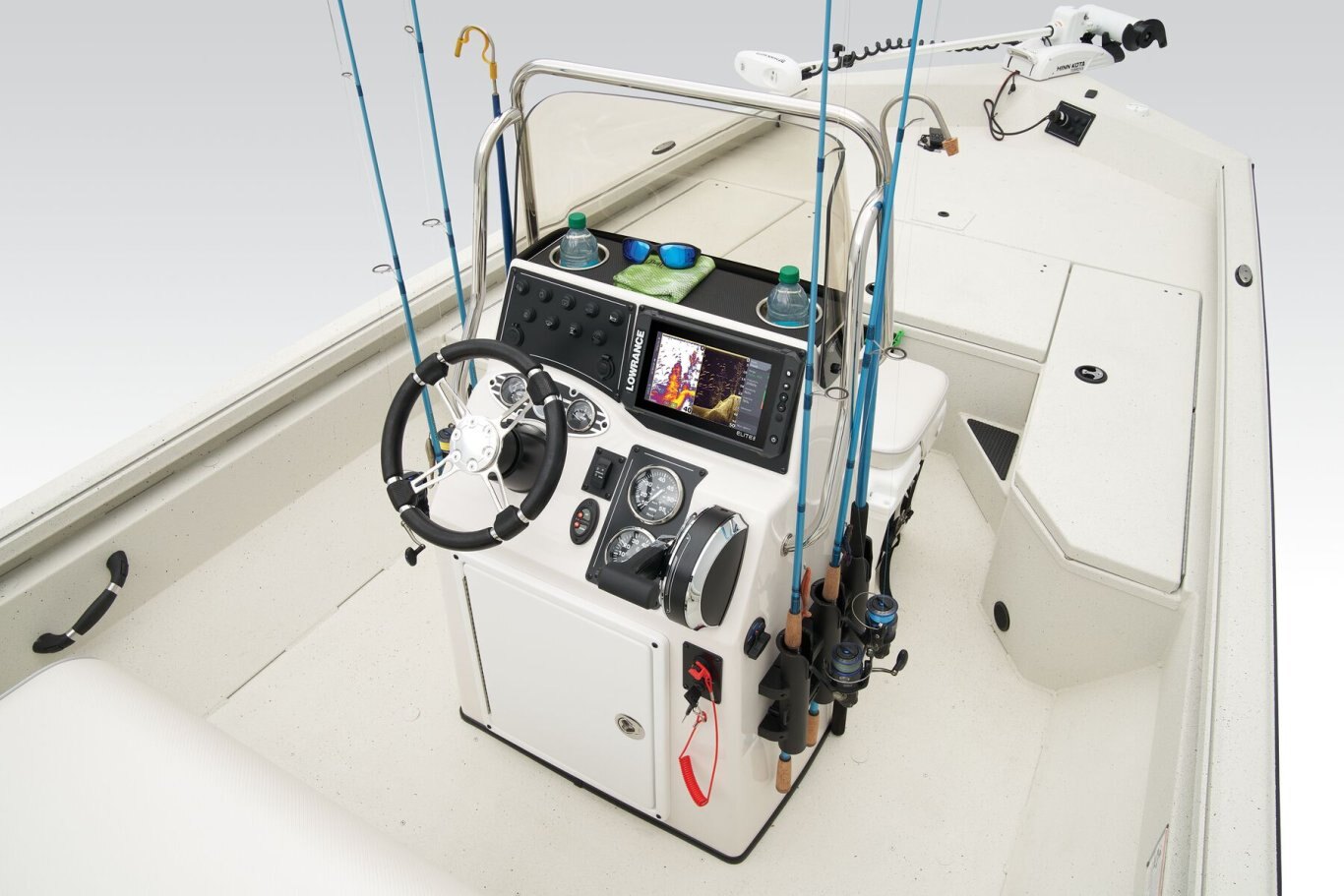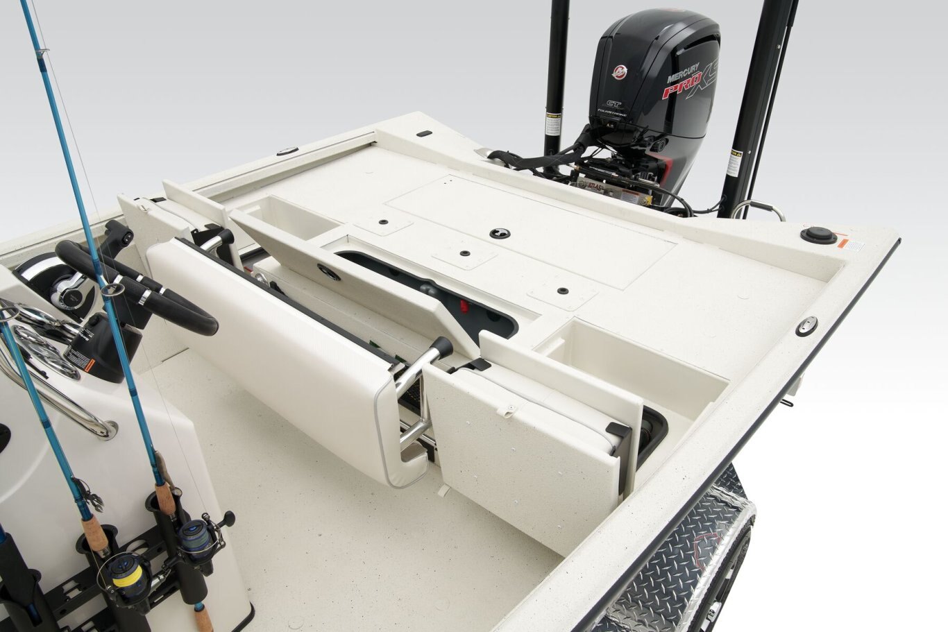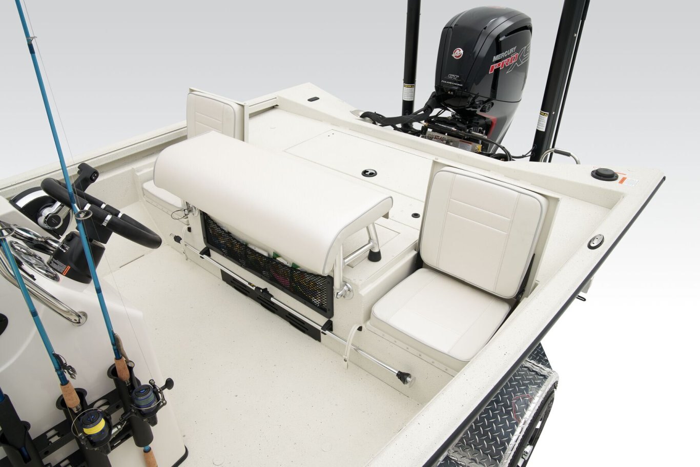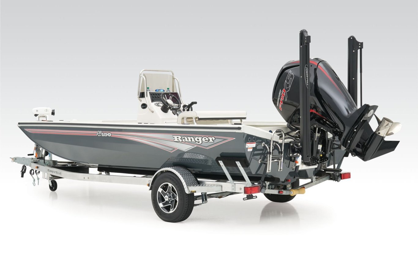 Built for bayous, bays and backwaters, the Ranger® RB190 is a shallow-drafting workhorse that’s ready to take on inshore species with saltwater-savvy touches from the all-aluminum trailer to the grippy, easy-to-clean Rawhide™ interior coating (or optional SeaDek®) and pad-bottom hull for a smooth ride and responsive handling. Dual rear jump seats add deck space when down or seating when up and a padded driver’s leaning post flips down to expose a livewell that’ll accommodate tournament-size reds or a mess of trout. The wide, stable, and shallow-drafting design complements the 115-horsepower rating and slices through chop with nimble and economical performance while BayStar® hydraulic steering keeps you confidently in command. The fiberglass console holds a full set of gauges, including the Ranger RIDE™ system that keeps critical outboard and boat functions and information at your fingertips. Inside, the RB190 features our signature foam flotation and proprietary pultruded fiberglass material in high-stress areas, delivering strength greater pound-for-pound strength than steel, and amazing screw retention. Huge gear storages, new color schemes, twin 8-foot rod boxes and integrated cup and tool holders accentuate the angler-friendly layout and make days on the water easy in this lake, bay and backwater master. |