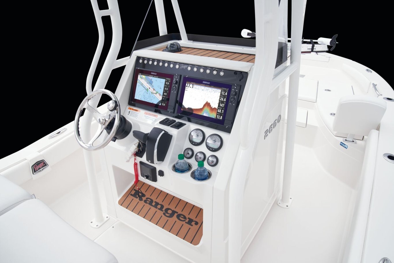 KEY FEATURES Twin jump seats in rear deck 97-gallon fuel capacity Flip-down bolstered cockpit seating for maximum versatility, visibility and comfort Ranger One-Piece Feel Interloc Construction® Fully foam-injected hull for buoyancy, insulation from vibration and rigidity