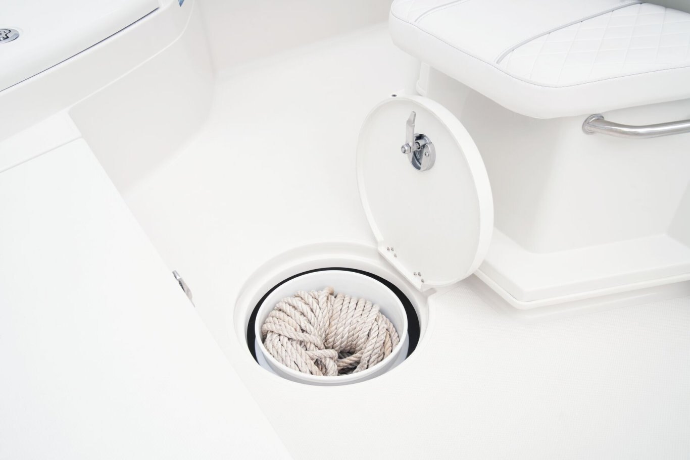 Custom Details Access hatch for quick pump and shut-off access Anchor locker w/ overboard drain Fully bolstered cockpit Gunnel and transom rod holders (10) In-floor bucket storage On demand fresh water wash down Patented Power Ventilation Rod Storage™ Rod storage & port rod tubes Storage under front & rear deck Gelcoated storage boxes Anchor locker w/ protective stainless steel plate for tie-off Stainless steel fittings Stainless steel gas spring lid assist Custom 320 quart fish box w/ large overboard drain Leaning post rod holders (4) Polished stainless steel pedestal base Built-in 120 quart cooler Trim tabs 12"x12" Fresh water and raw water washdowns Exhaust fan & light under console