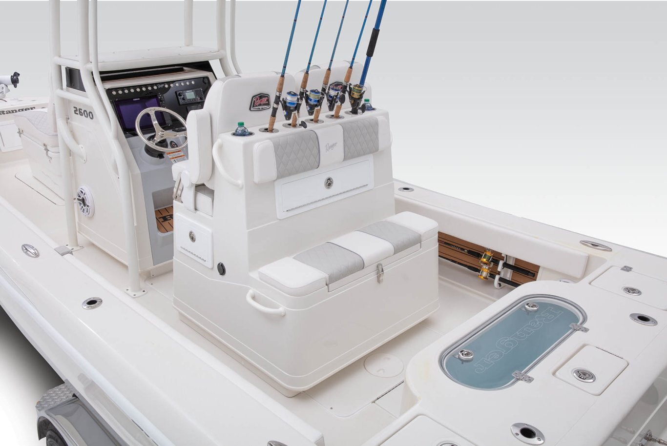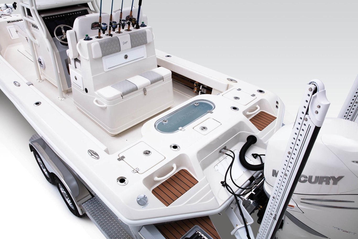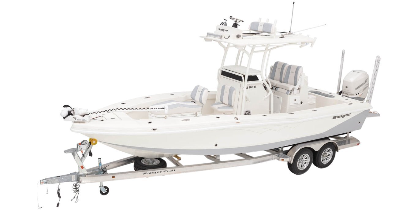 KEY FEATURES 25'10" hull and 400HP rating for commanding performance and confidence Open cockpit delivers room for a multitude of techniques Dedicated anchor stow Innovative console design Standard Ranger Trail® trailer