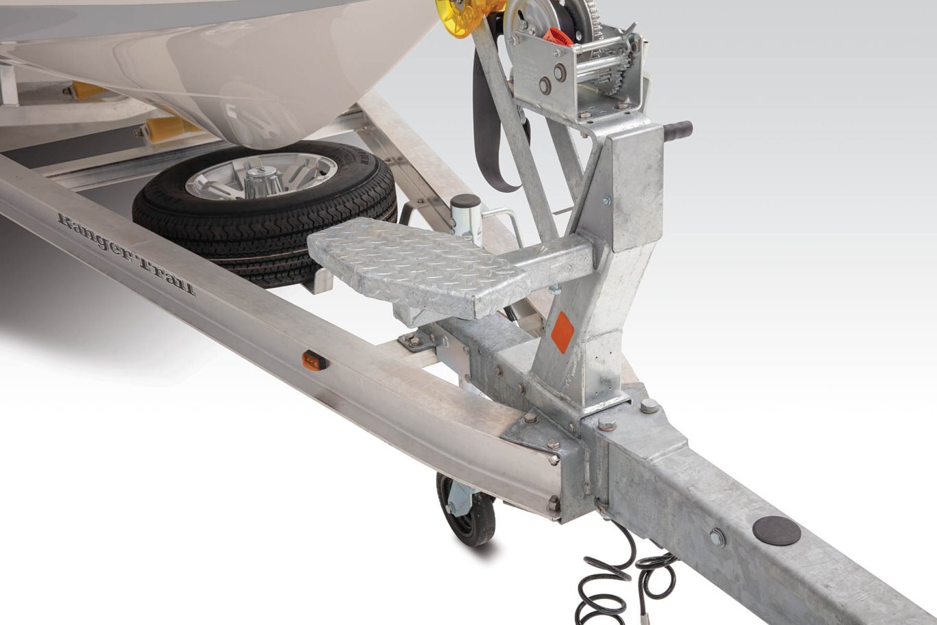 Trailer Features Aluminum Wheels w/matching spare tire & wheel Center swing jack Fenders (Stainless steel) Hydraulic surge disc brakes LED lighting Ranger Trail® Vault® Hub lubrication system Torsion axles NMMA®/NATM certified