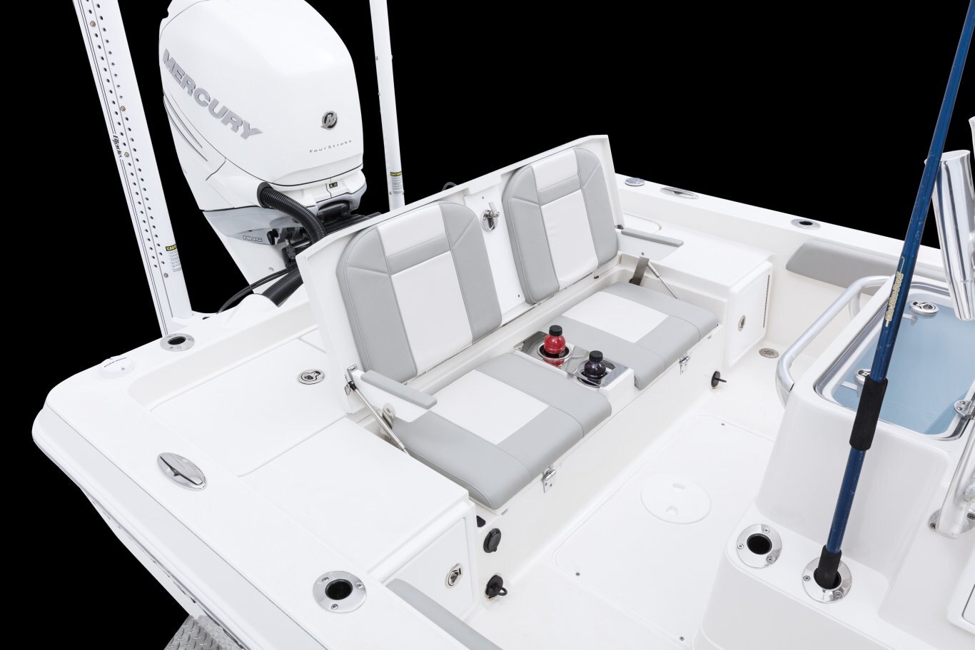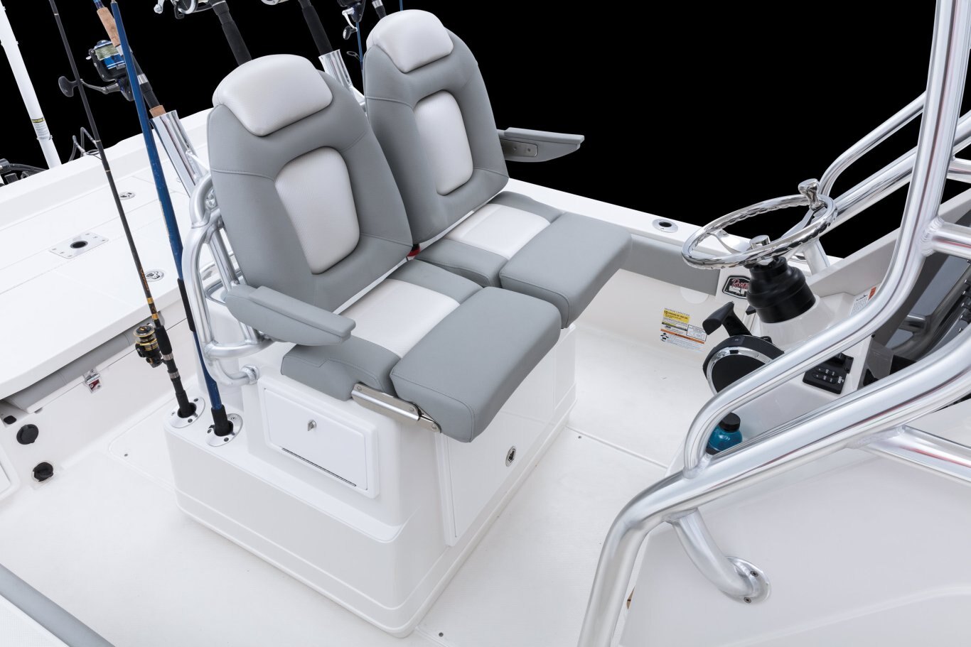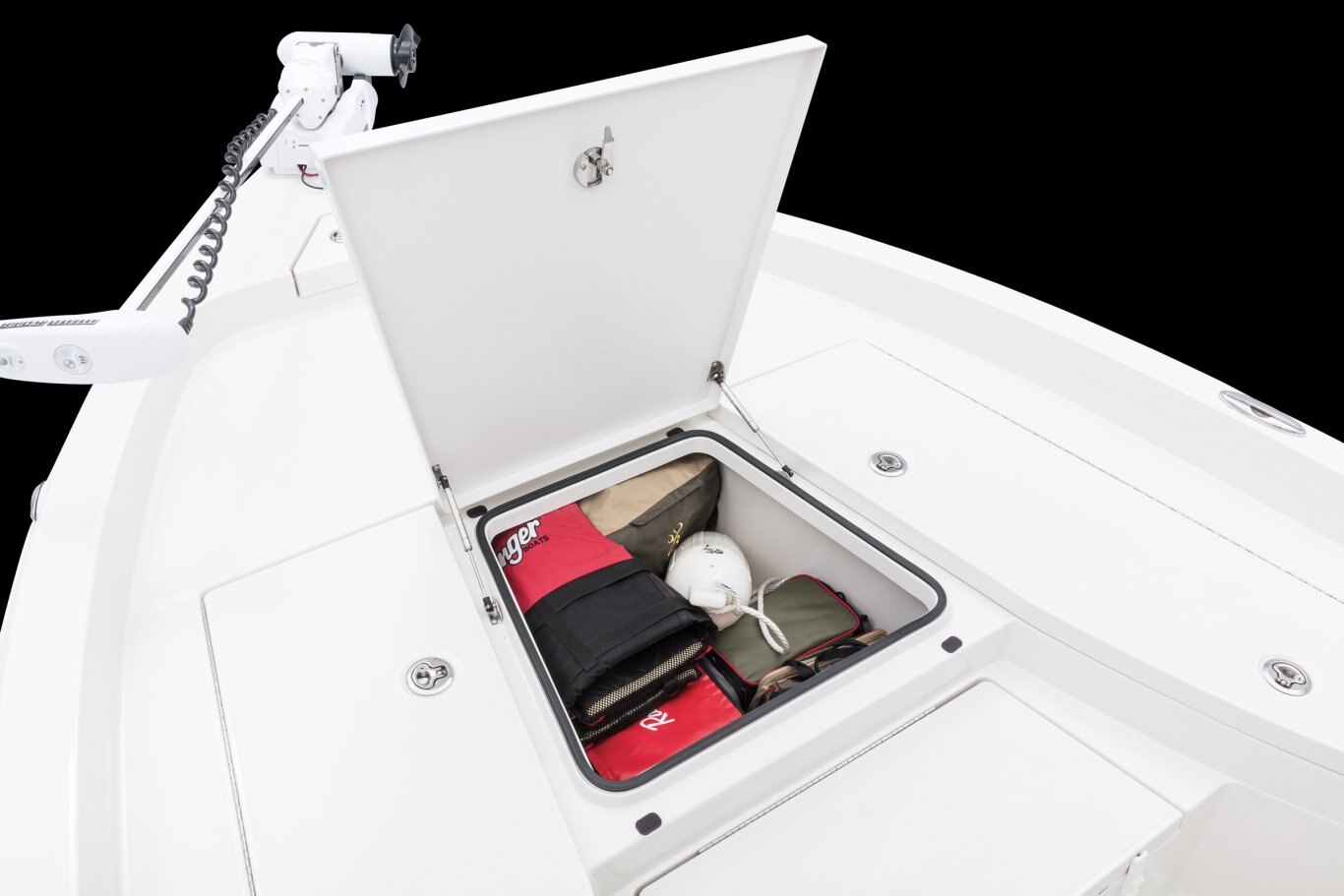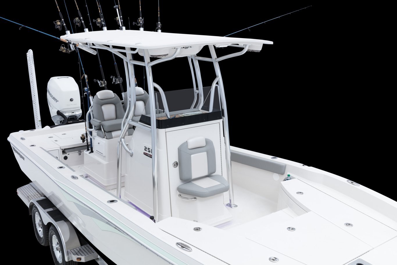Whether you’re towing teasers over the big blue or taming hero snook in the backcountry, this is your go-to hybrid rig. Famous for its soft ride and recognizable Carolina flare, this platform isn’t just good looks. The 2510 comes standard with a stand-up 40-gallon livewell with 2,200 GPH aeration, a large storage console suitable for a Porta Potti, easy access to pumps, strainers and valves as well as all the comforts the family demands. A big fuel tank and 400-horse rating mean you can go farther, faster with economical performance. A wide-open layout hides storage everywhere, while delivering maximum stability and fishabilty. Standard with every 2510 is a dual-axle, aluminum-framed Ranger Trail® trailer that boasts sealed LED lights, four disc brakes, and a center swing jack for the utmost in security and storage options. When you’re ready to step up your game in a big bay boat, the Ranger 2510 will take you to the next level. |