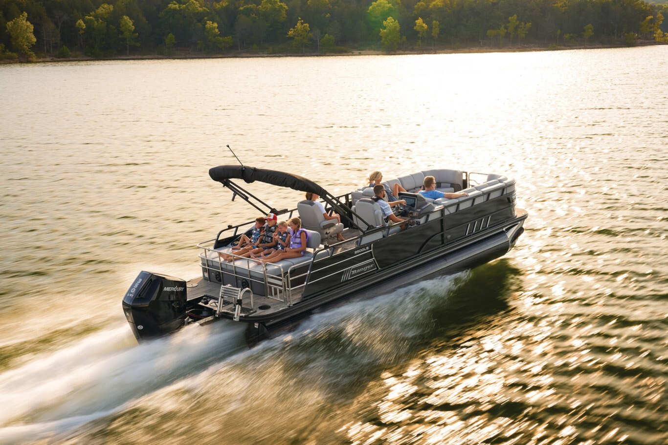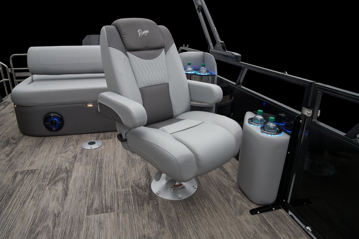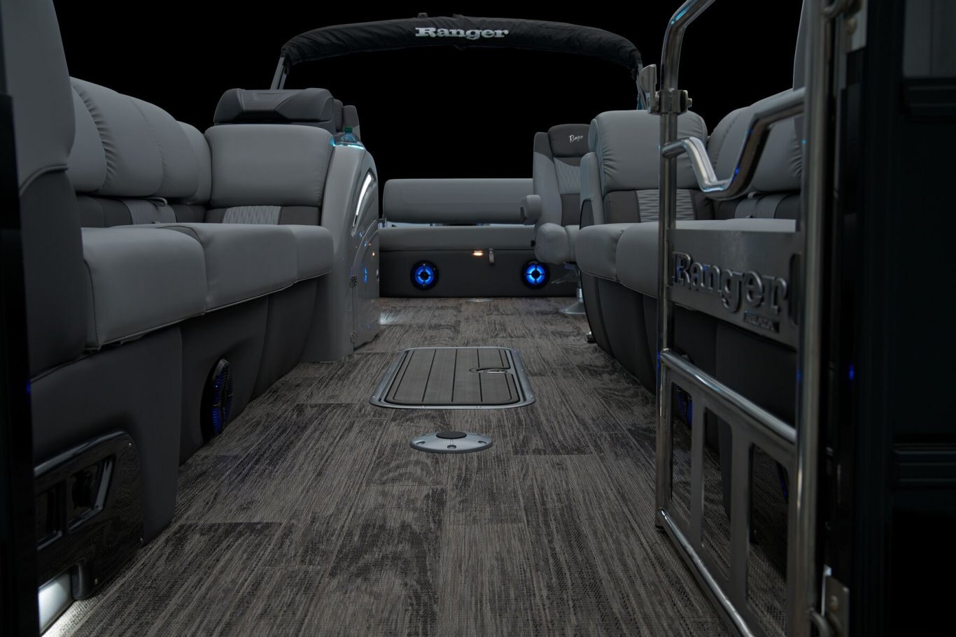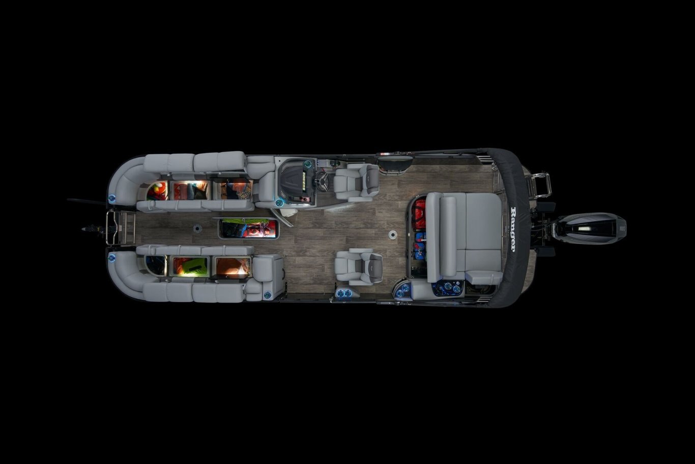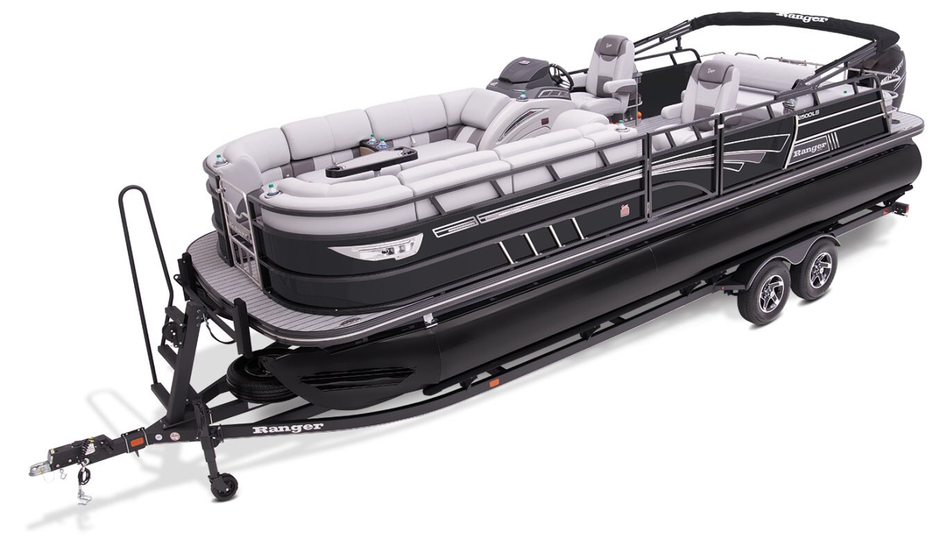 Supreme Luxury. Masterful Design.There are luxury pontoons, and then there is the 2025 Ranger® 2500LS Luxury Series tritoon boat. This is the best of the best in the Ranger® pontoon lineup, and a quick tour makes it obvious why. In front of the helm, you'll find dual plush lounges wrapping the walls. Their DoubleUP storage system stows adventuring gear under the seats and behind the seat backs. Stash more in the in-floor storage compartment. The removable table creates a cafe-style space for the forward lounges. Behind the dual midship deluxe captain's chairs lie the large flip/flop lounge that can be customized to face fore or aft. This is where you'll find a pop-up changing room, the 10' bimini top, the full-width swim deck with a fold-up ladder, and more. The pilot can guide this triple-log pontoon with confidence through the Medallion Viper III touch screen, which controls the boat's lighting, the 6-speaker Wet Sounds® stereo, and the aft-facing camera, to name a few features. This top-of-the-line Ranger® pontoon boat's list of amazing luxury features goes on and on. The 2025 Ranger® 2500LS comes standard with a 350hp Mercury® L Verado® V10 outboard motor and has a recommended maximum 350hp rating. |