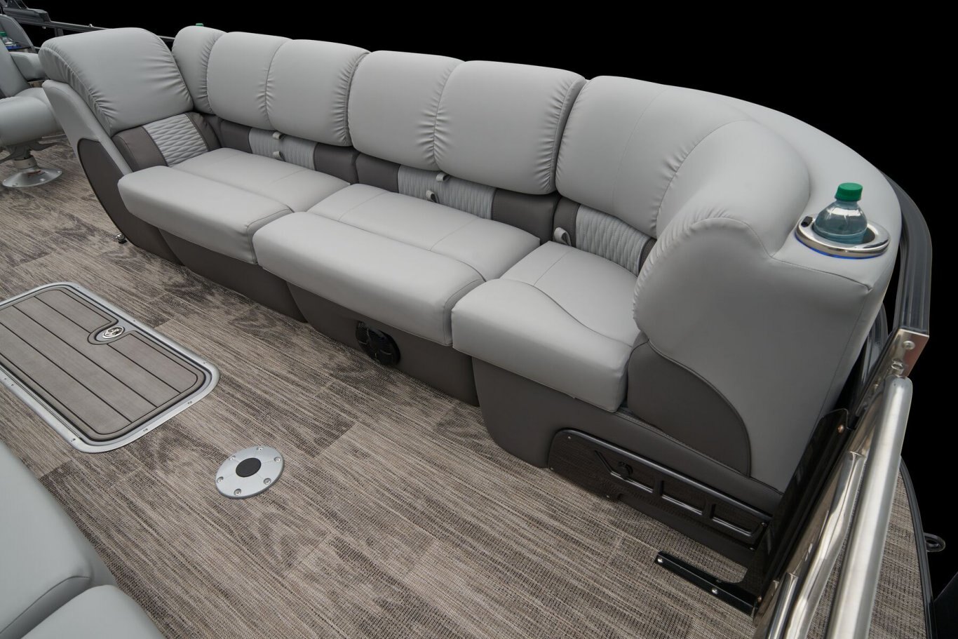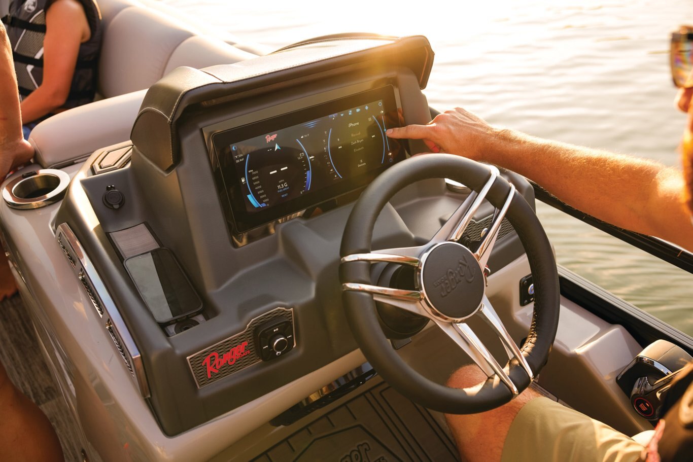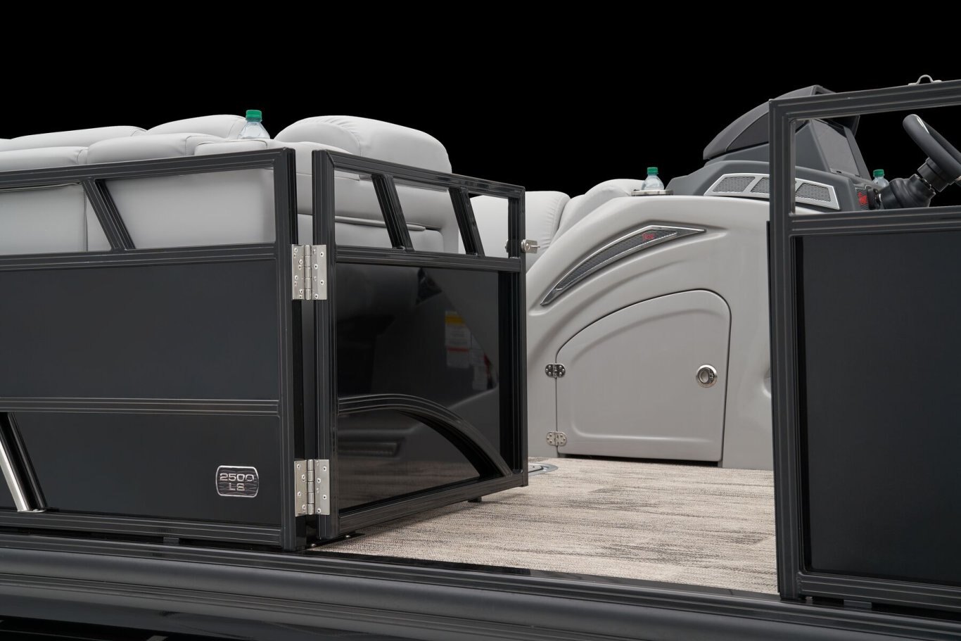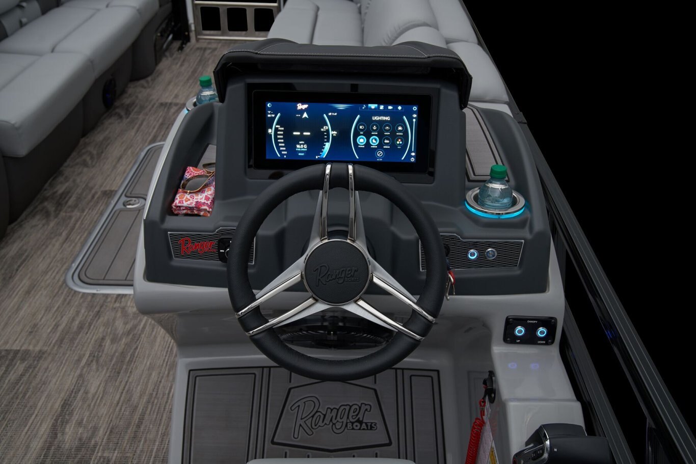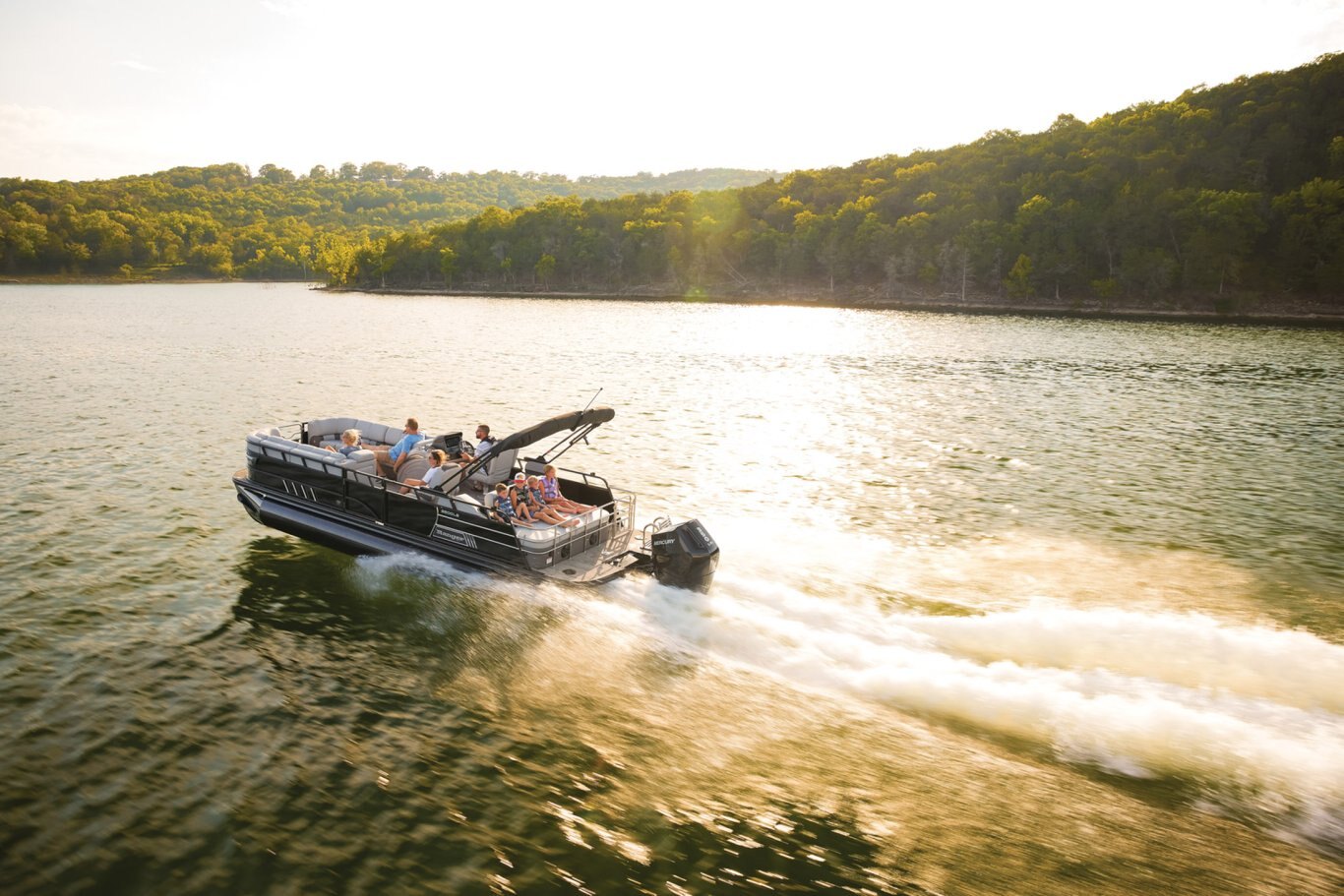 Supreme Luxury. Masterful Design.There are luxury pontoons, and then there is the 2025 Ranger® 2500LS Luxury Series tritoon boat. This is the best of the best in the Ranger® pontoon lineup, and a quick tour makes it obvious why. In front of the helm, you'll find dual plush lounges wrapping the walls. Their DoubleUP storage system stows adventuring gear under the seats and behind the seat backs. Stash more in the in-floor storage compartment. The removable table creates a cafe-style space for the forward lounges. Behind the dual midship deluxe captain's chairs lie the large flip/flop lounge that can be customized to face fore or aft. This is where you'll find a pop-up changing room, the 10' bimini top, the full-width swim deck with a fold-up ladder, and more. The pilot can guide this triple-log pontoon with confidence through the Medallion Viper III touch screen, which controls the boat's lighting, the 6-speaker Wet Sounds® stereo, and the aft-facing camera, to name a few features. This top-of-the-line Ranger® pontoon boat's list of amazing luxury features goes on and on. The 2025 Ranger® 2500LS comes standard with a 350hp Mercury® L Verado® V10 outboard motor and has a recommended maximum 350hp rating. |