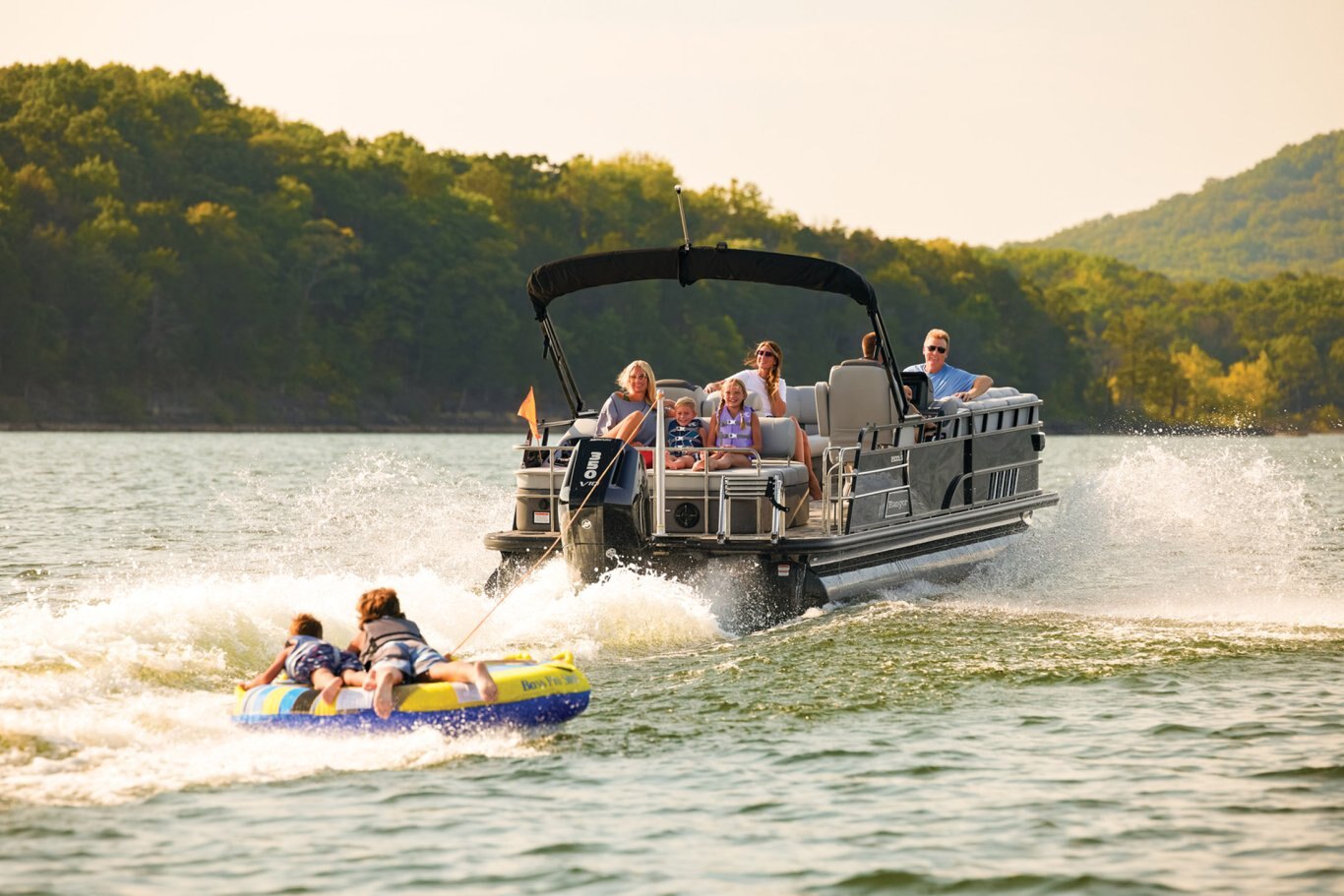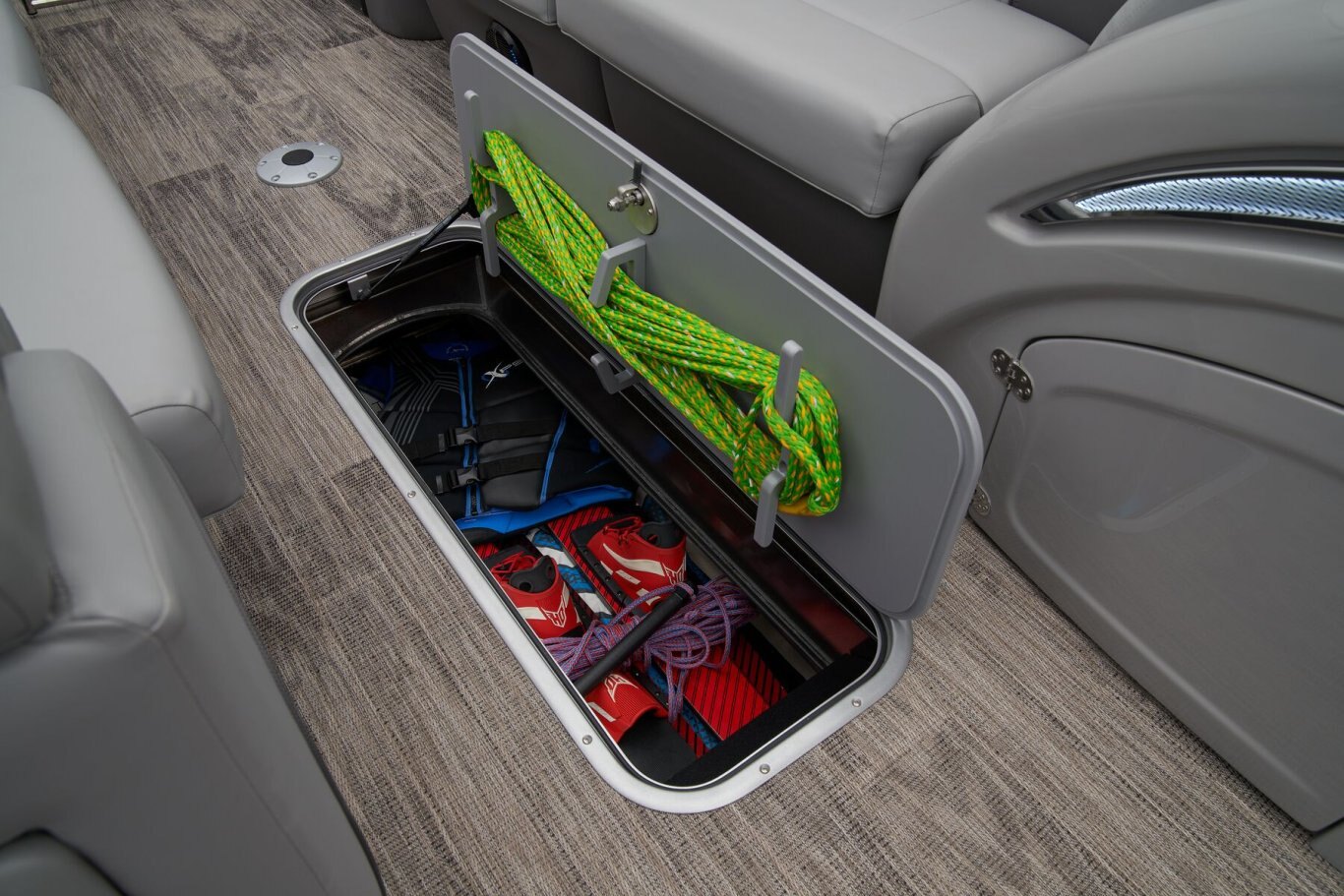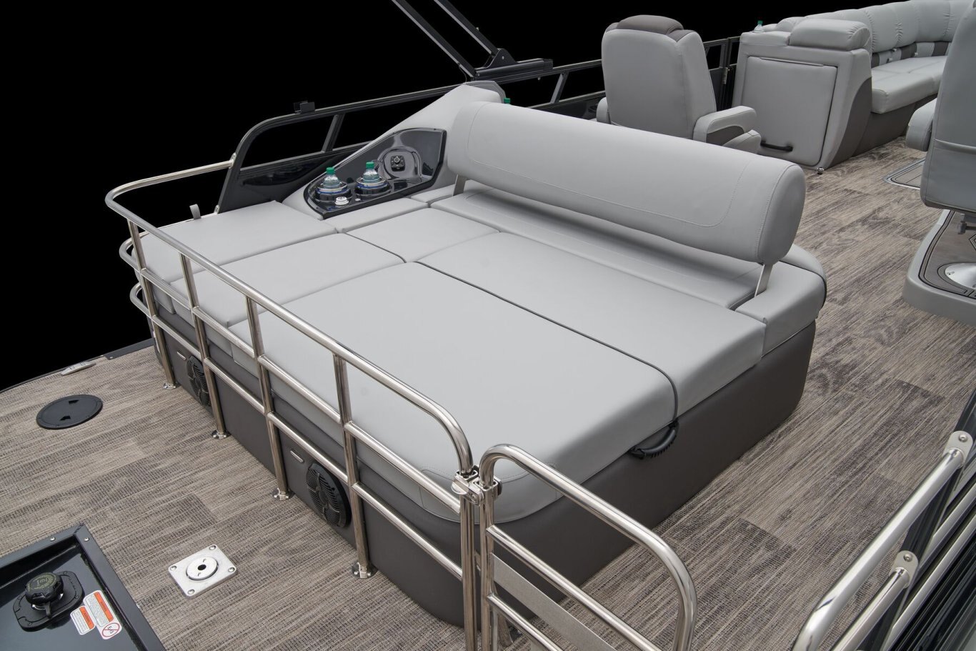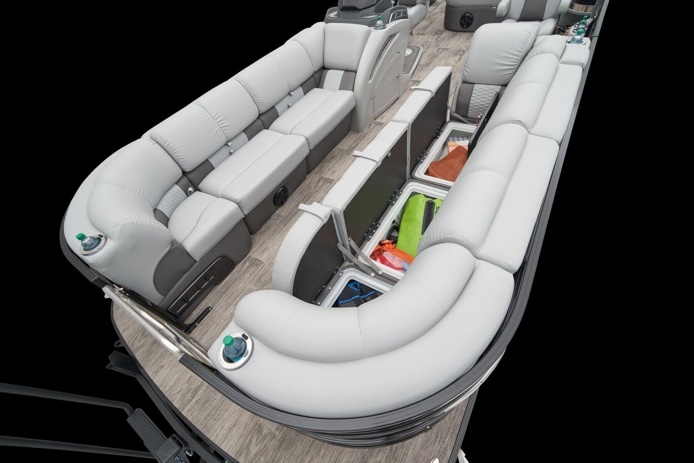 Supreme Luxury. Masterful Design.There are luxury pontoons, and then there is the 2025 Ranger® 2500LS Luxury Series tritoon boat. This is the best of the best in the Ranger® pontoon lineup, and a quick tour makes it obvious why. In front of the helm, you'll find dual plush lounges wrapping the walls. Their DoubleUP storage system stows adventuring gear under the seats and behind the seat backs. Stash more in the in-floor storage compartment. The removable table creates a cafe-style space for the forward lounges. Behind the dual midship deluxe captain's chairs lie the large flip/flop lounge that can be customized to face fore or aft. This is where you'll find a pop-up changing room, the 10' bimini top, the full-width swim deck with a fold-up ladder, and more. The pilot can guide this triple-log pontoon with confidence through the Medallion Viper III touch screen, which controls the boat's lighting, the 6-speaker Wet Sounds® stereo, and the aft-facing camera, to name a few features. This top-of-the-line Ranger® pontoon boat's list of amazing luxury features goes on and on. The 2025 Ranger® 2500LS comes standard with a 350hp Mercury® L Verado® V10 outboard motor and has a recommended maximum 350hp rating. |