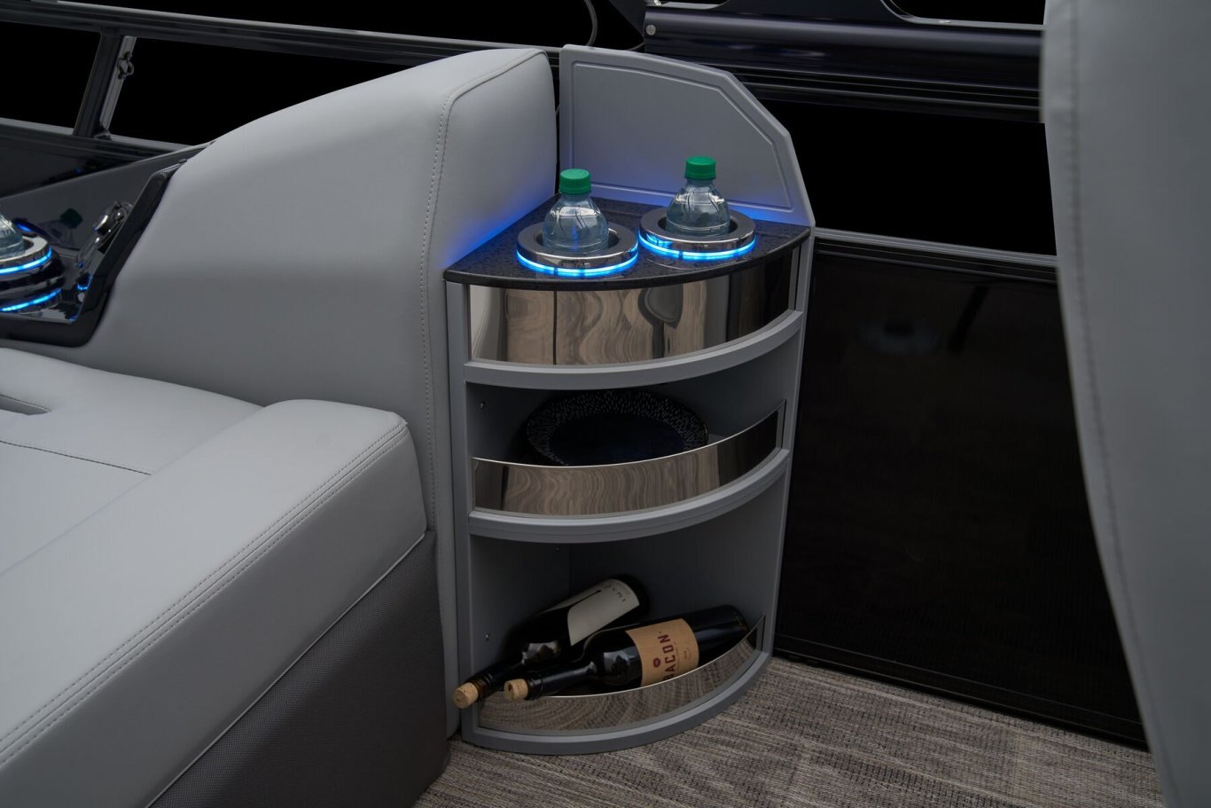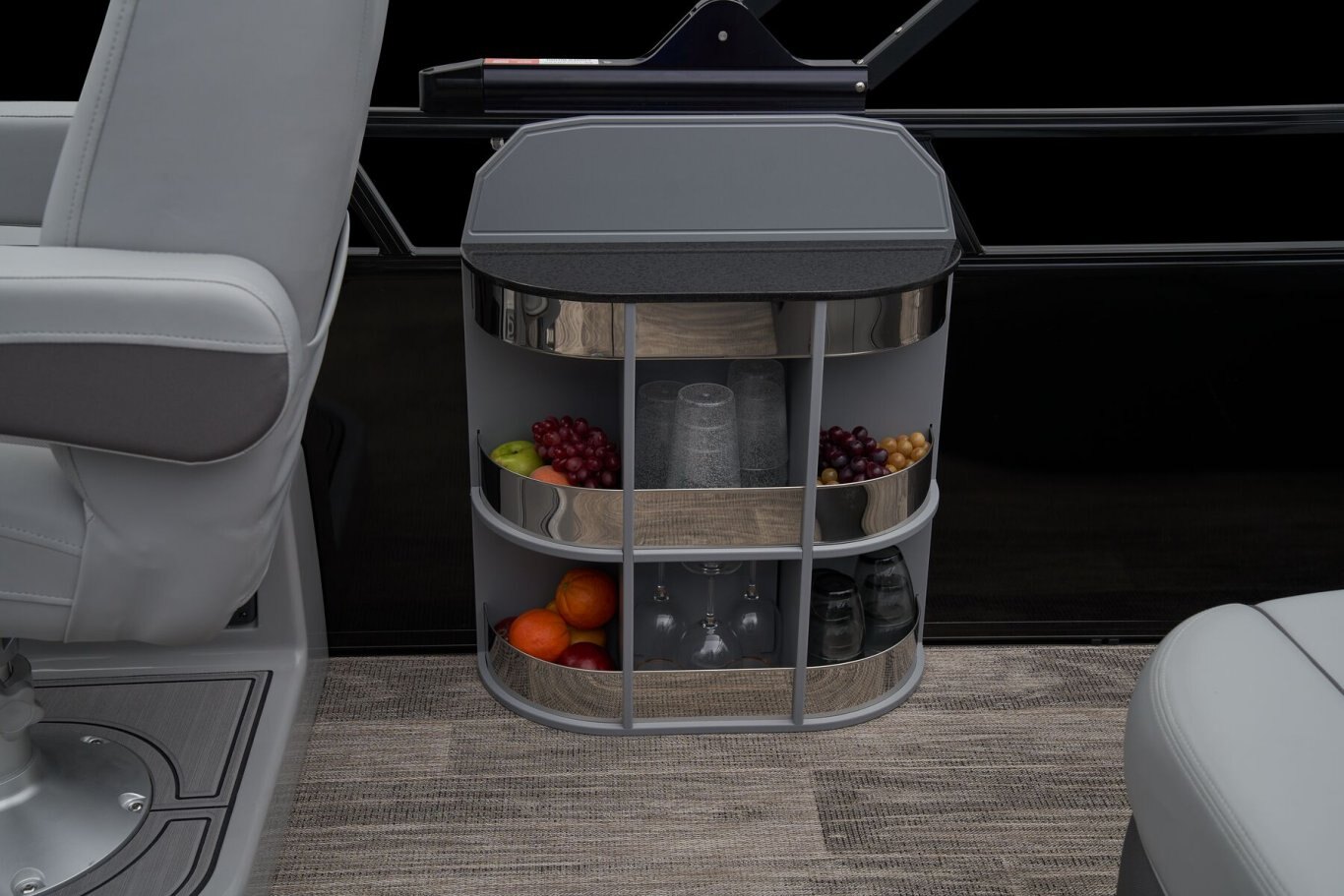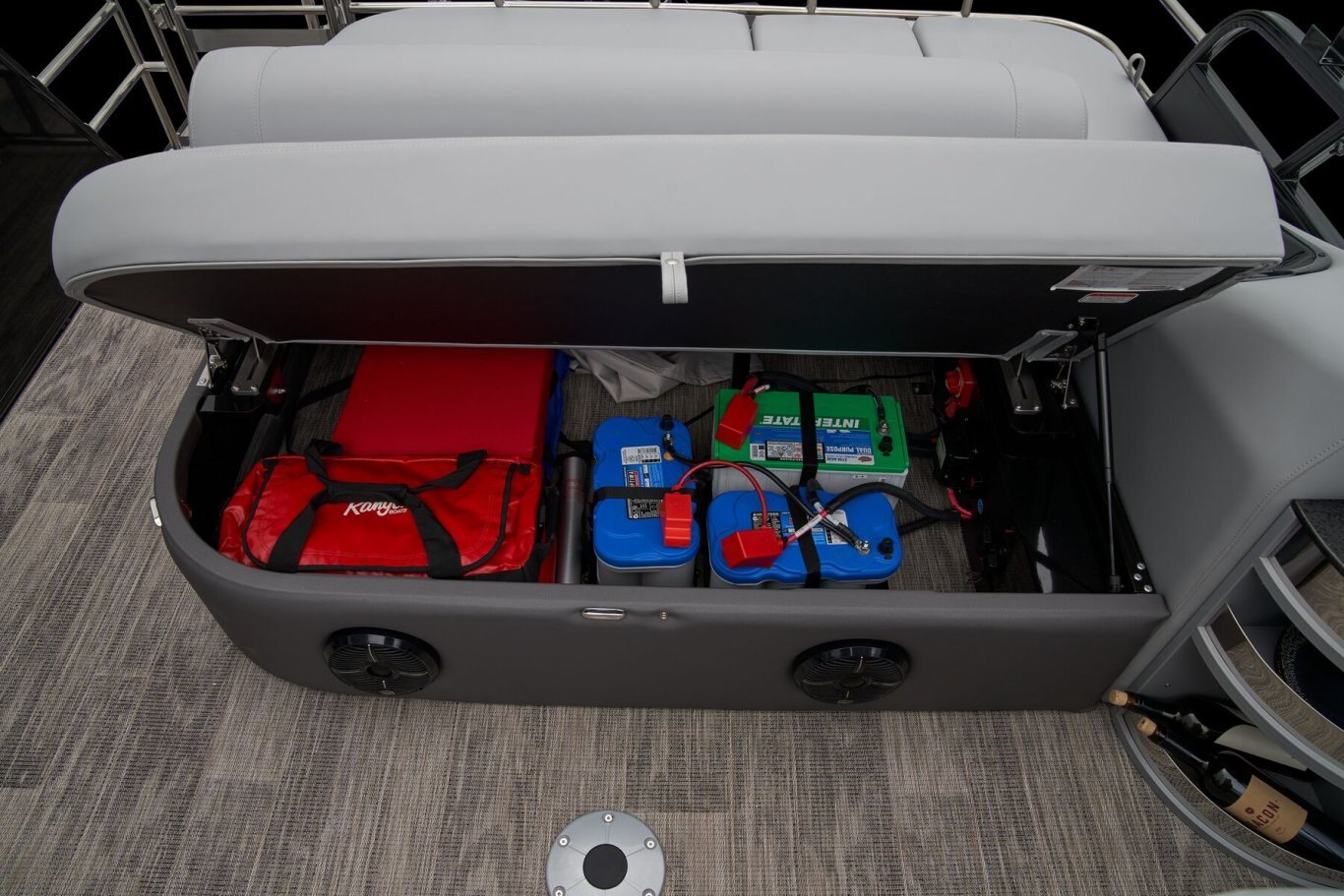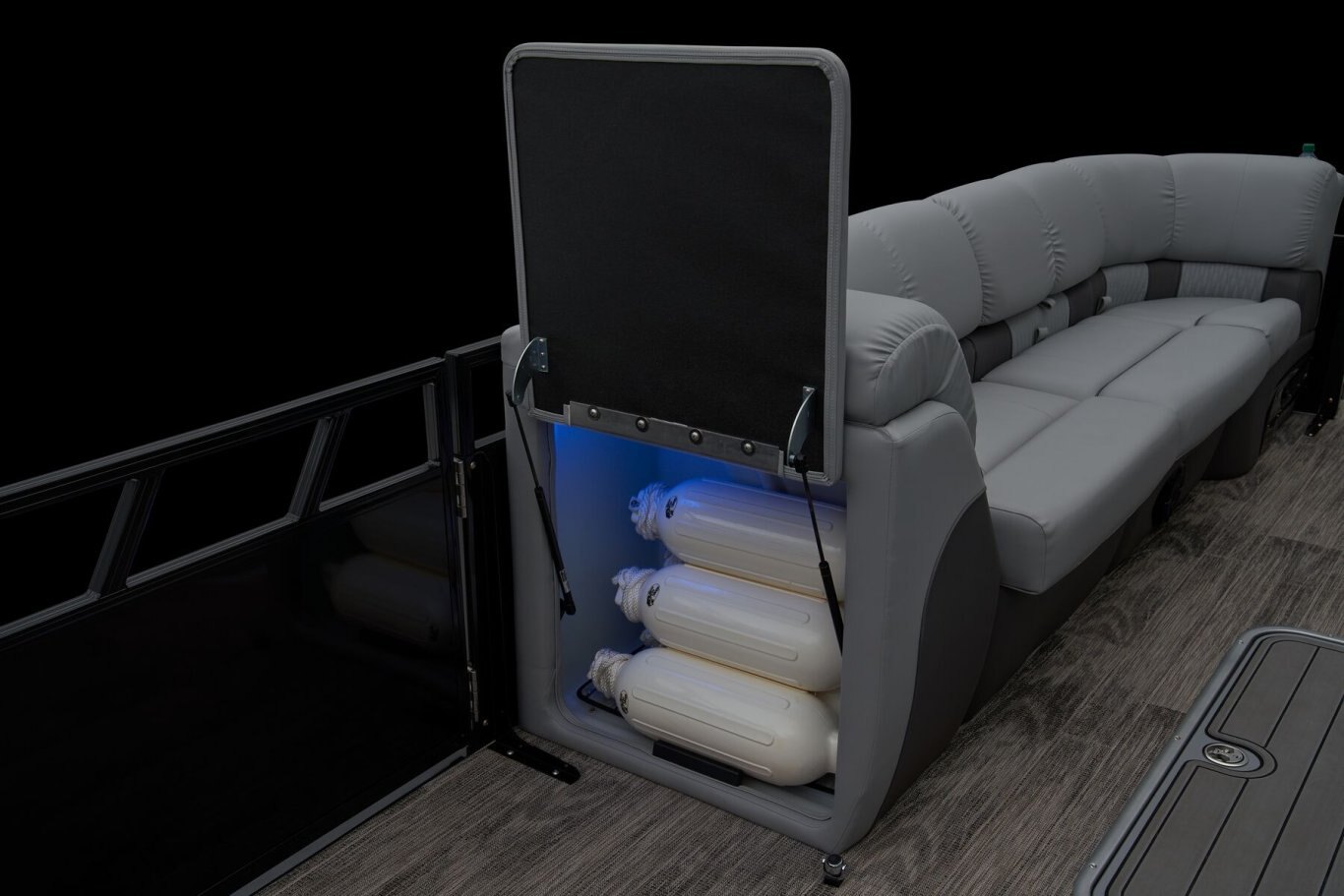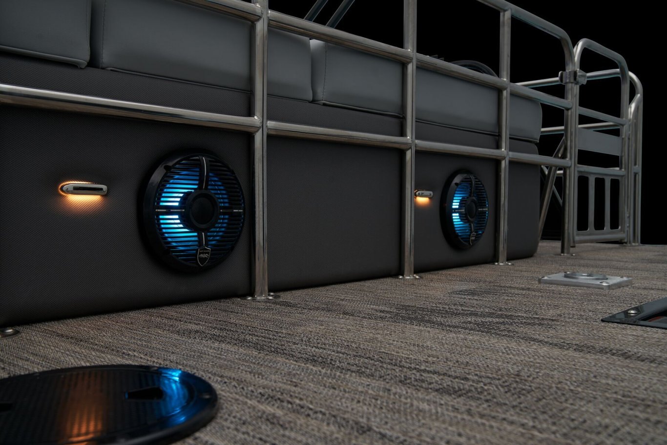 Supreme Luxury. Masterful Design.There are luxury pontoons, and then there is the 2025 Ranger® 2500LS Luxury Series tritoon boat. This is the best of the best in the Ranger® pontoon lineup, and a quick tour makes it obvious why. In front of the helm, you'll find dual plush lounges wrapping the walls. Their DoubleUP storage system stows adventuring gear under the seats and behind the seat backs. Stash more in the in-floor storage compartment. The removable table creates a cafe-style space for the forward lounges. Behind the dual midship deluxe captain's chairs lie the large flip/flop lounge that can be customized to face fore or aft. This is where you'll find a pop-up changing room, the 10' bimini top, the full-width swim deck with a fold-up ladder, and more. The pilot can guide this triple-log pontoon with confidence through the Medallion Viper III touch screen, which controls the boat's lighting, the 6-speaker Wet Sounds® stereo, and the aft-facing camera, to name a few features. This top-of-the-line Ranger® pontoon boat's list of amazing luxury features goes on and on. The 2025 Ranger® 2500LS comes standard with a 350hp Mercury® L Verado® V10 outboard motor and has a recommended maximum 350hp rating. |